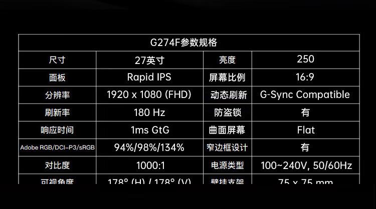 Pantalla LCD G274F de 27 pulgadas, 180 Hz, IPS, 1 ms, para juegos de ordenador y deportes electrónicos