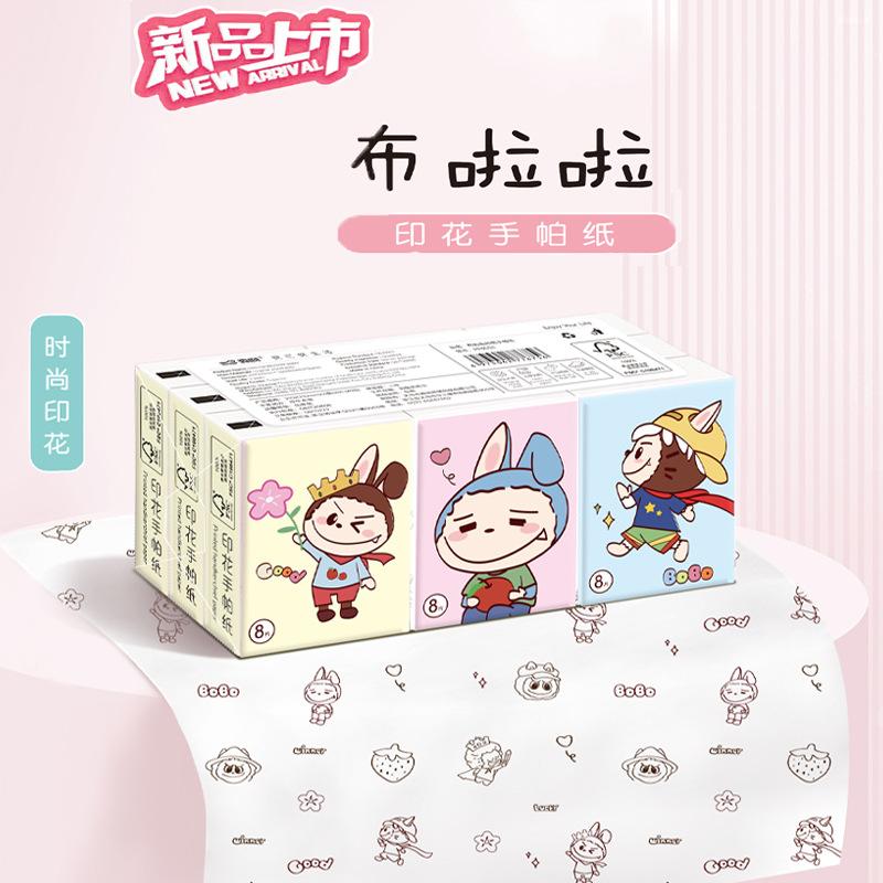 9 packs of 8 pieces of 3-layer happy valley printed handkerchief paper