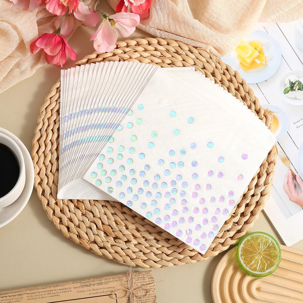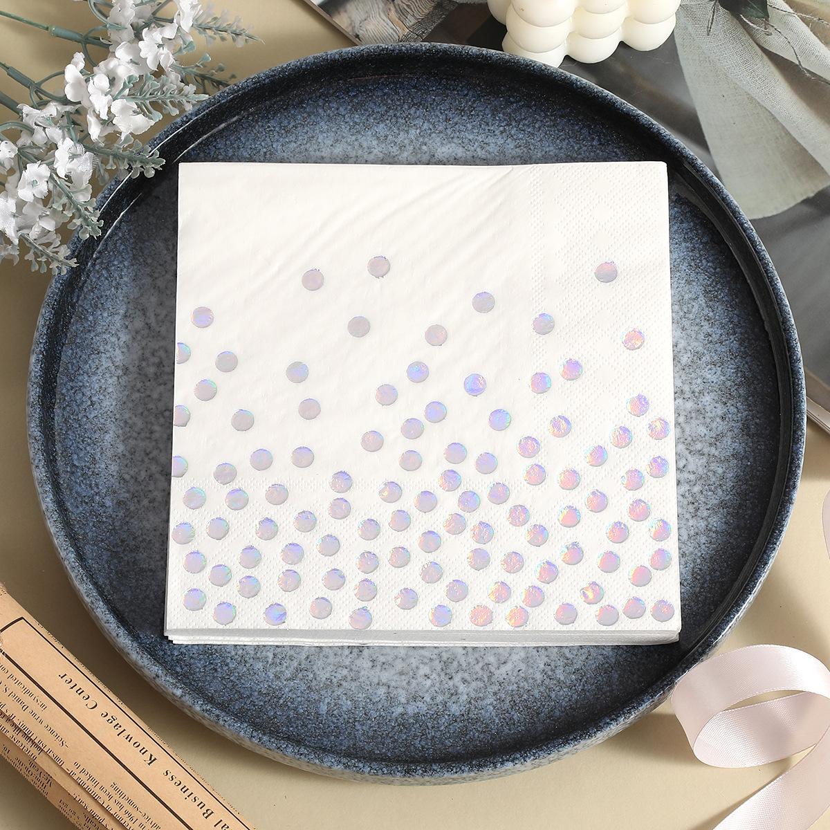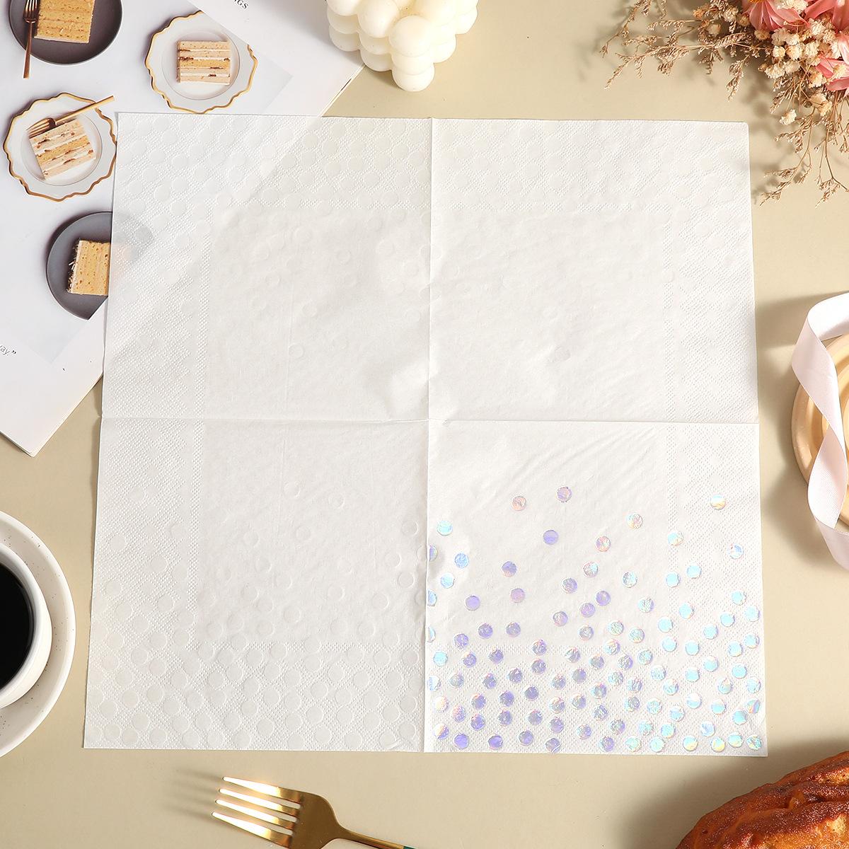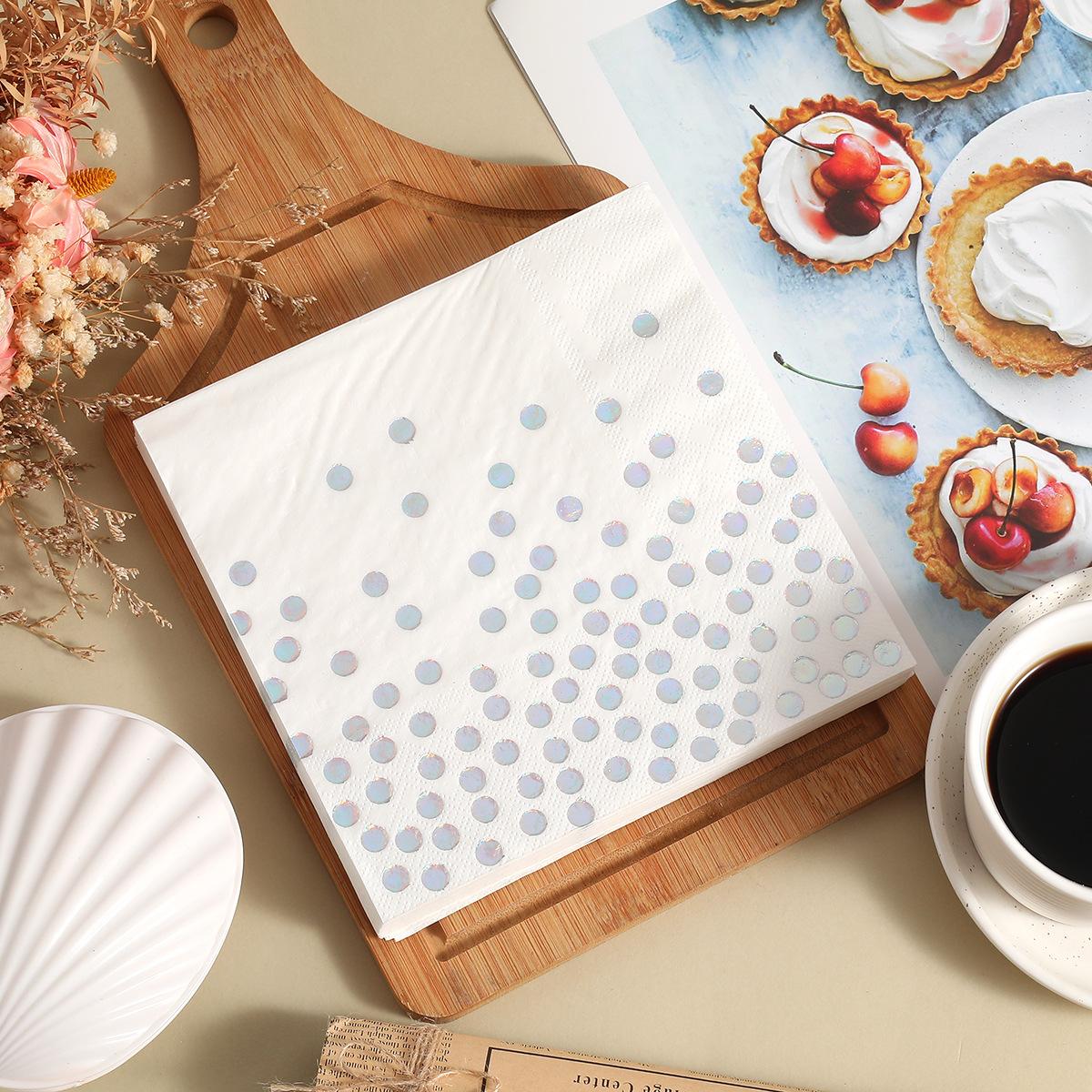 Servilleta bronceadora de color blanco con lunares grandes, ideal para decoración de fiestas de hotel, cumpleaños y fiestas, papel desechable especial.