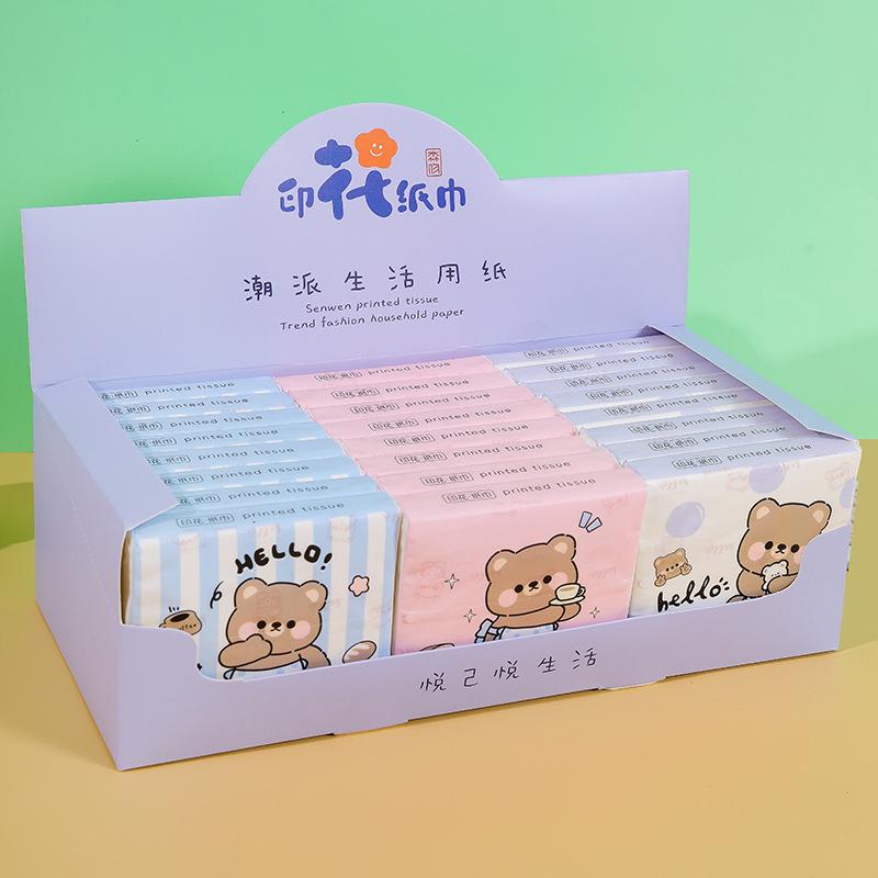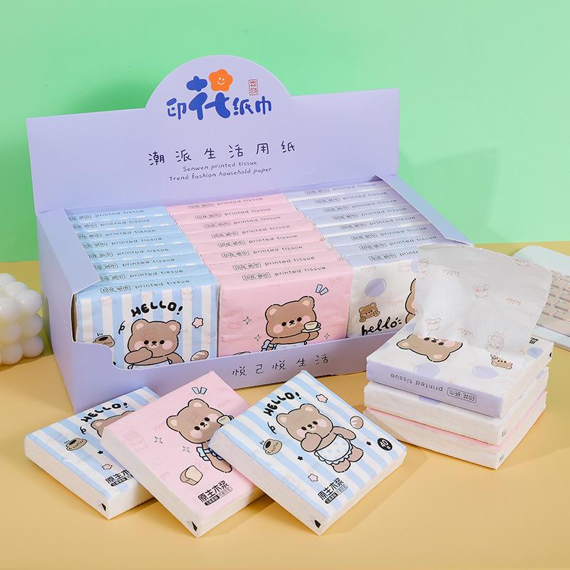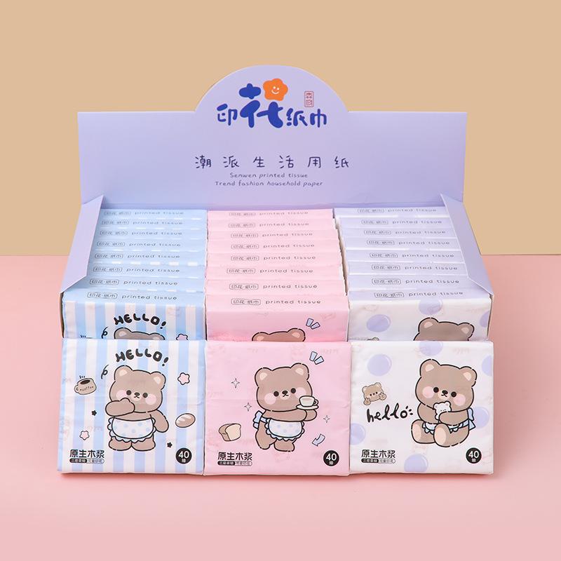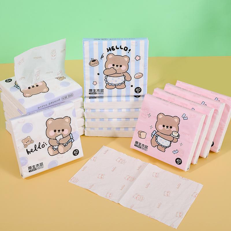 Toallas de papel con estampado de oso de dibujos animados, 40 unidades, para el bolsillo, para el rostro