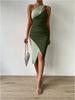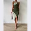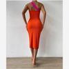 Vestido largo sexy de verano 2024 con tirantes y costuras de colores, elegante, irregular, de algodón, de cintura alta para mujer