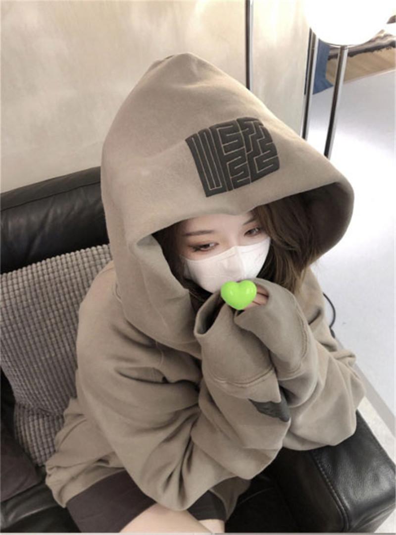 8007# Suéter retro americano con capucha de doble capa 6535 de escamas de pescado, abrigo fino y suelto para primavera y otoño