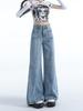 Pantalones vaqueros holgados Joker de pierna ancha con diseño de costura azul claro, otoño e invierno 2024, para mujer