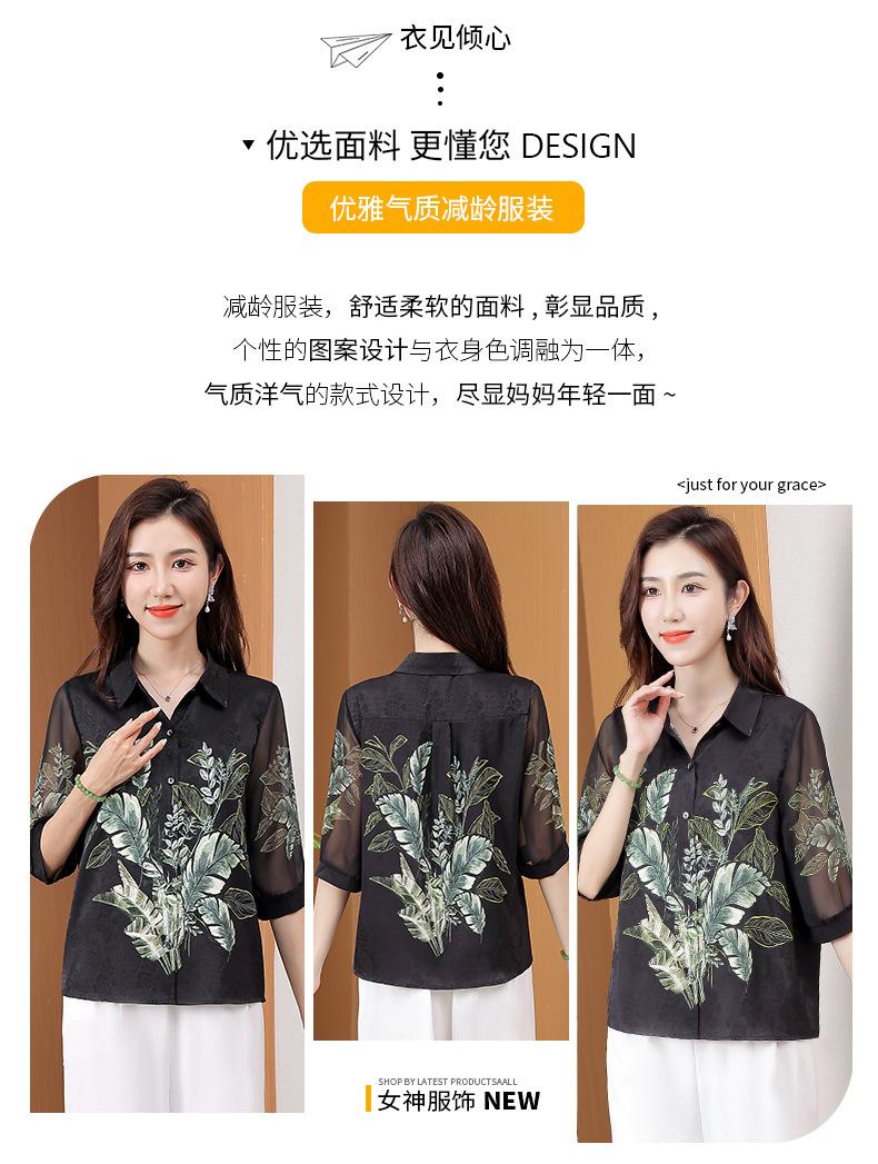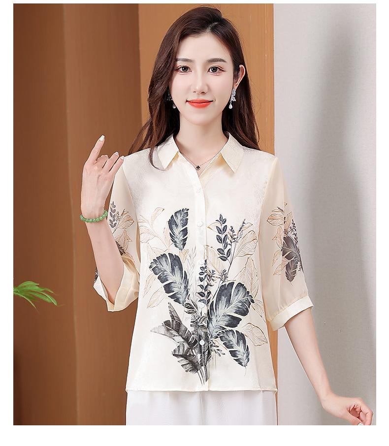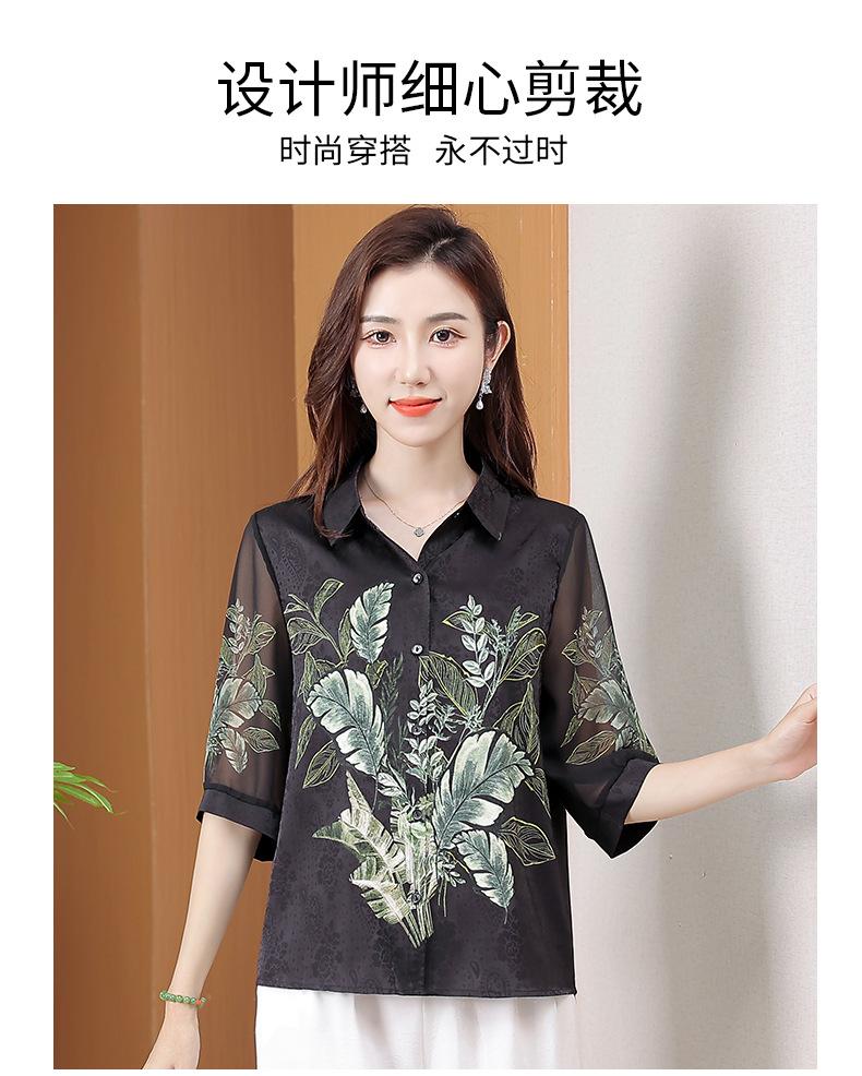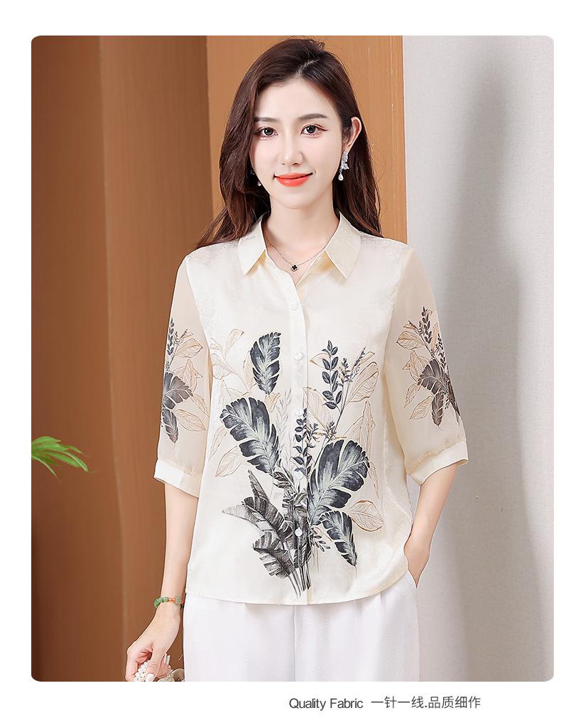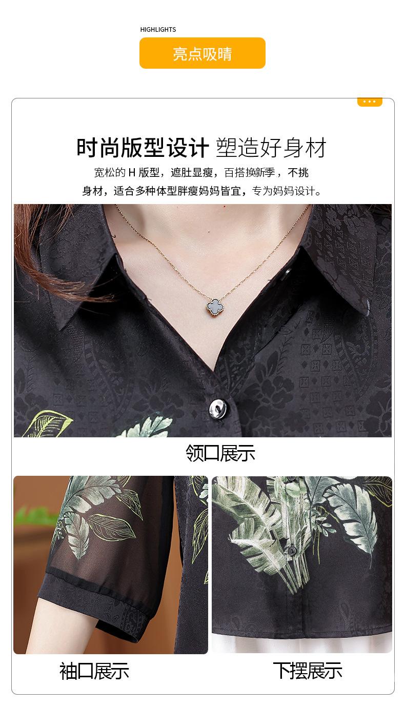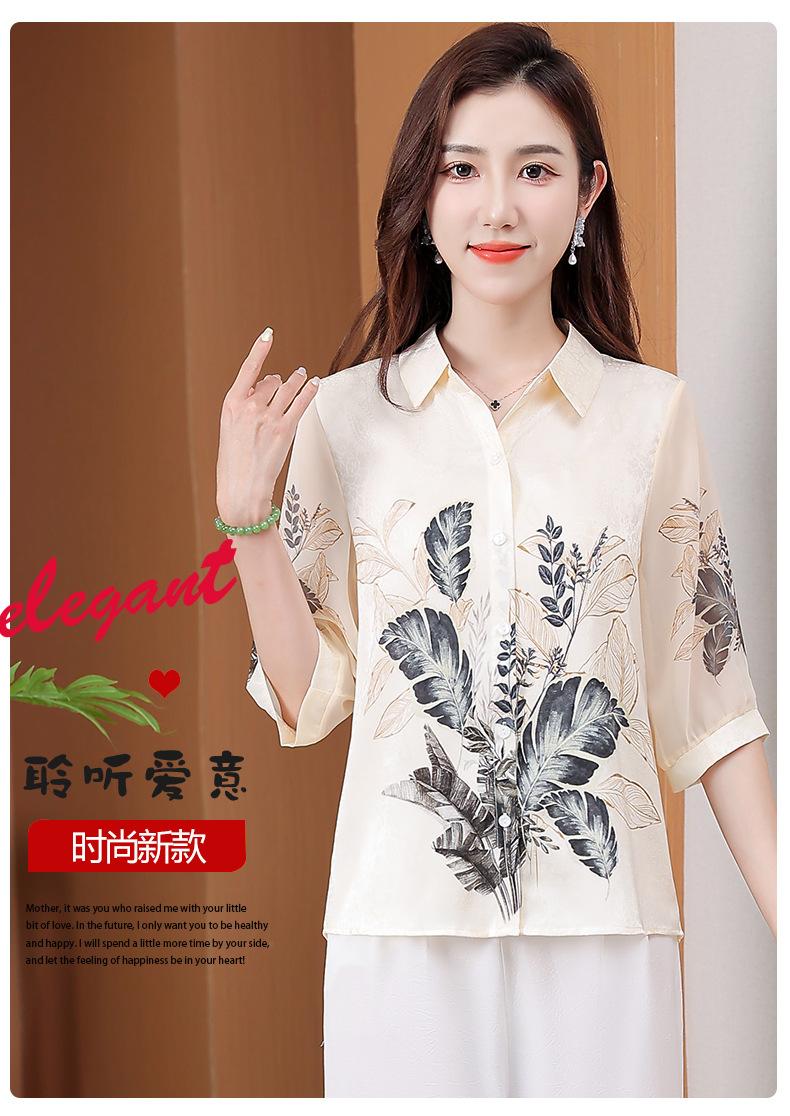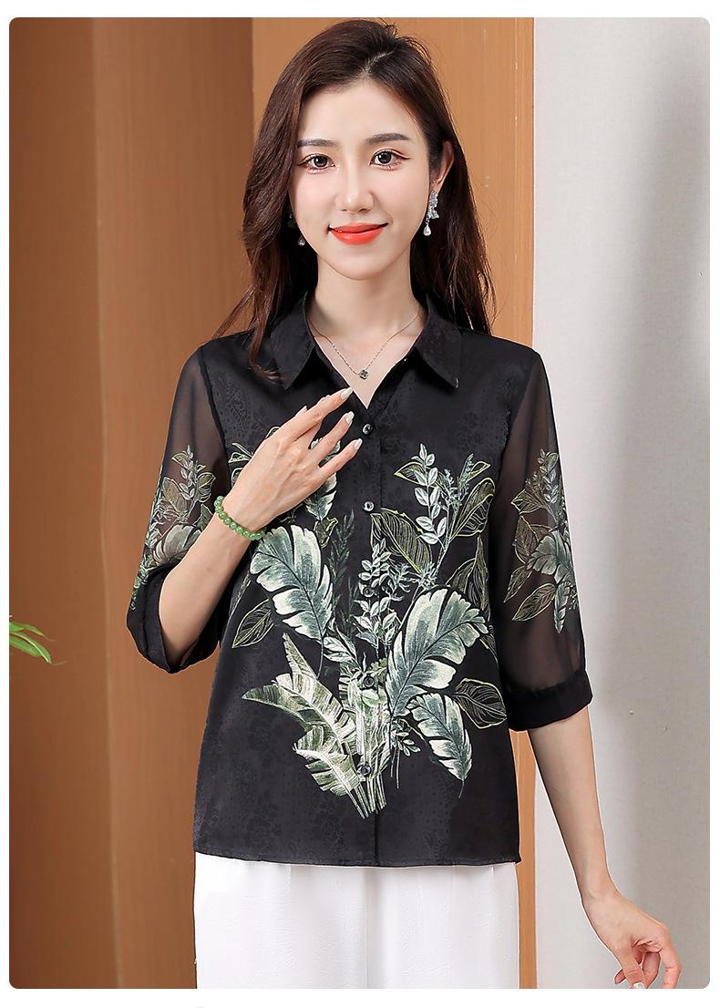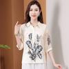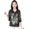 Moda Verano Nuevo Estilo Chino Estilo Nacional Blusa de Seda Camisa de Seda de Morera Top Estampado Camisa para Madre de Mediana Edad y Anciana