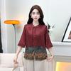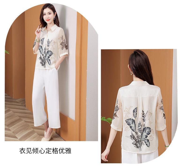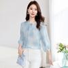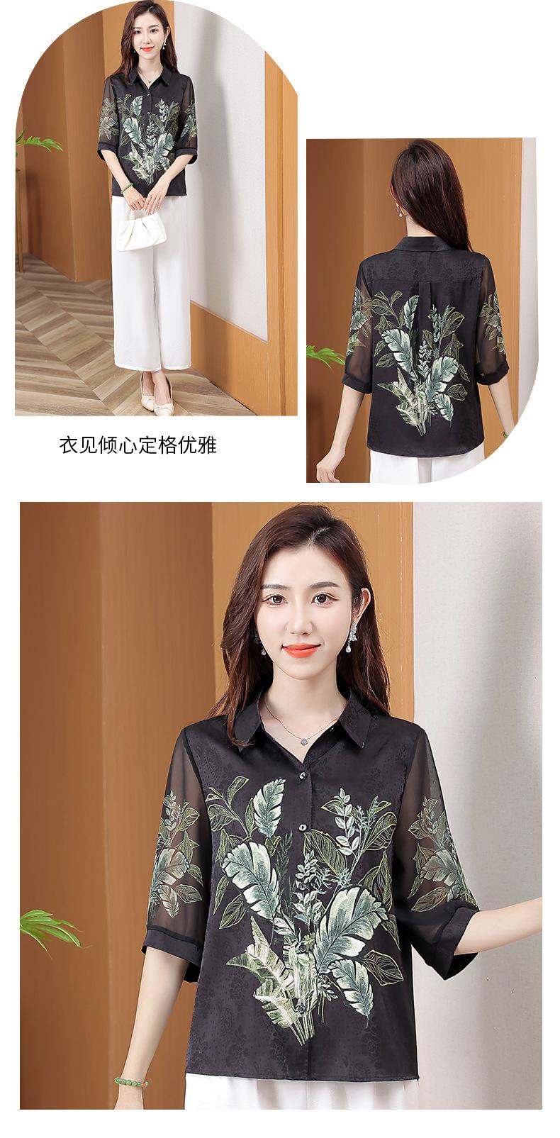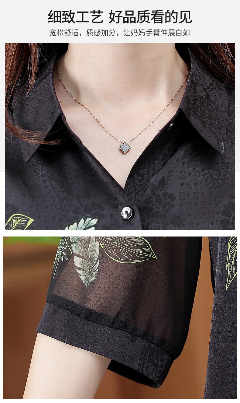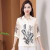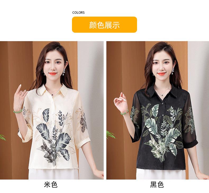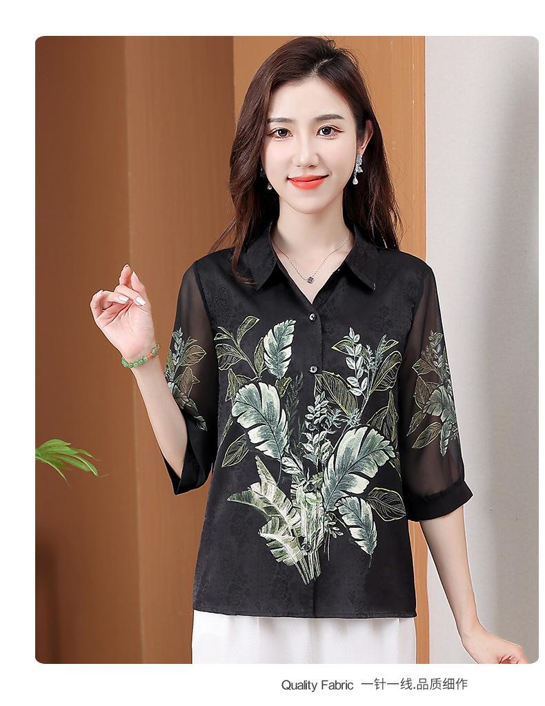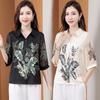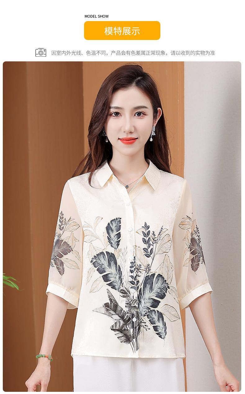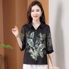 Moda Verano Nuevo Estilo Chino Estilo Nacional Blusa de Seda Camisa de Seda de Morera Top Estampado Camisa para Madre de Mediana Edad y Anciana