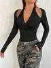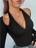 Mono sexy ajustado con hombros descubiertos para mujer, estilo nicho, de corte bajo, ajustado, con cuello halter y escote en V, con manga larga