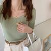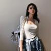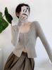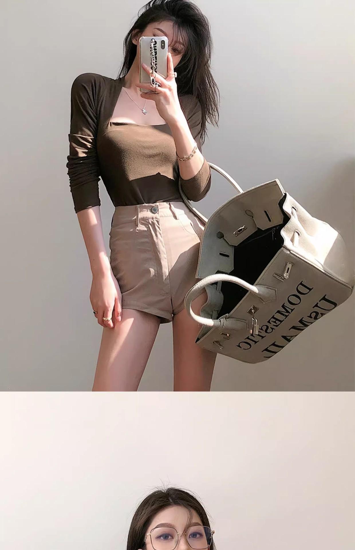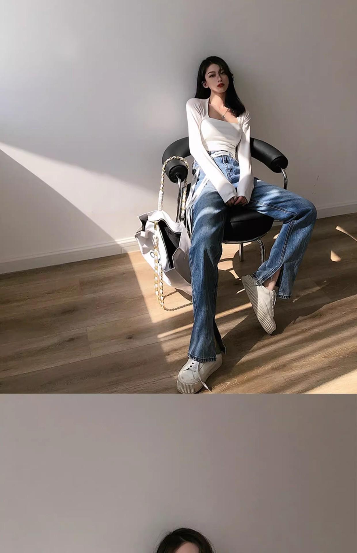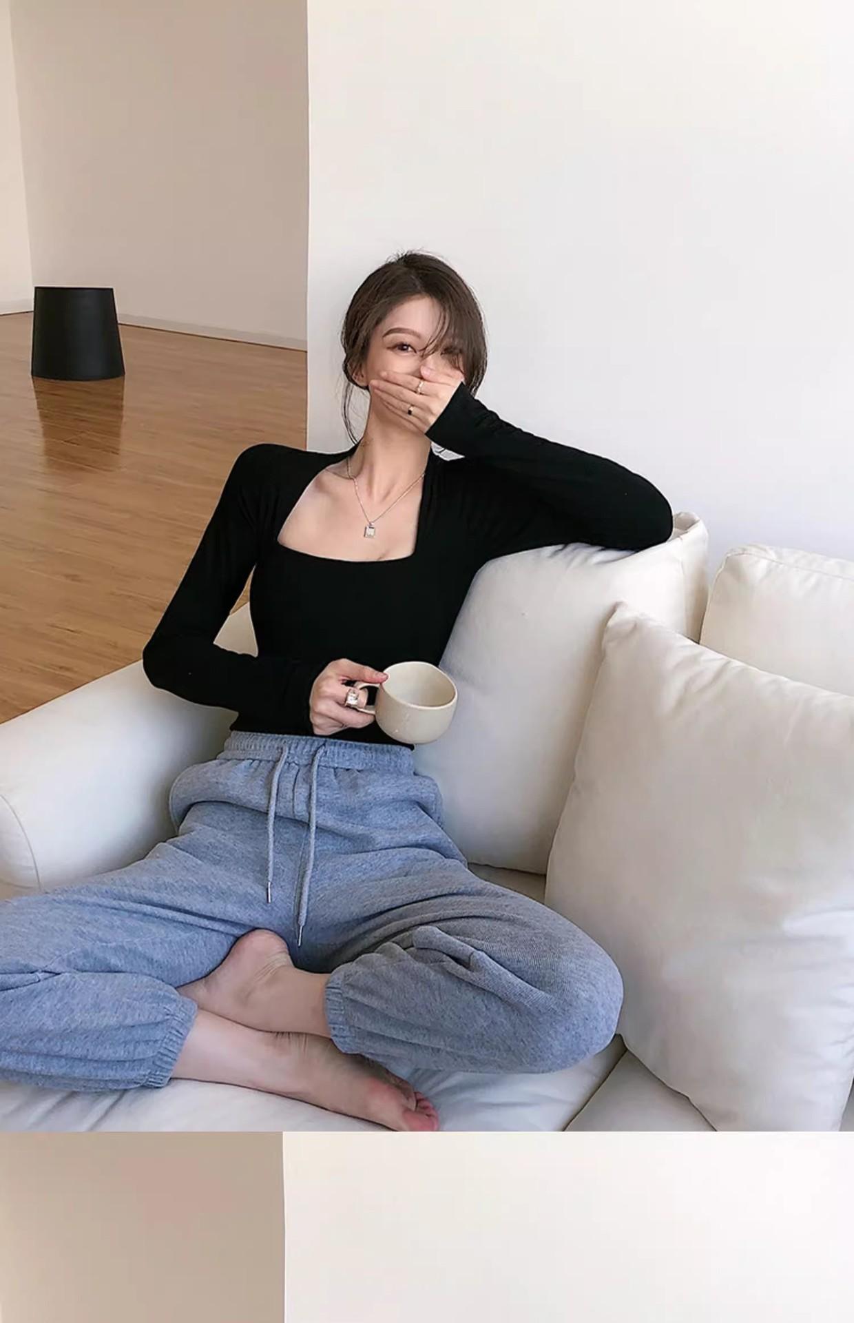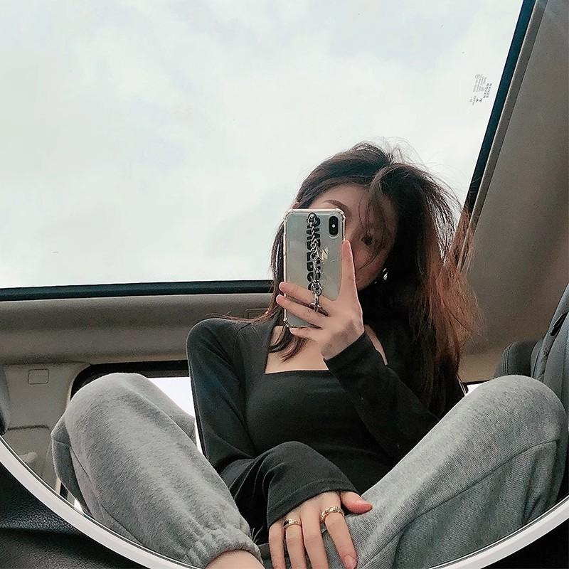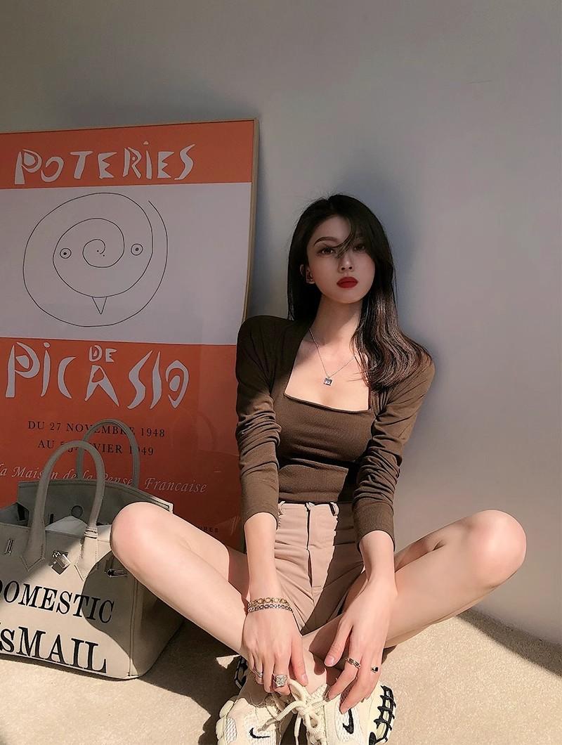 Camiseta básica de manga larga con cuello cuadrado francés de terciopelo acanalado de alta elasticidad, diseño adelgazante Spice Girls Niche Ins Top