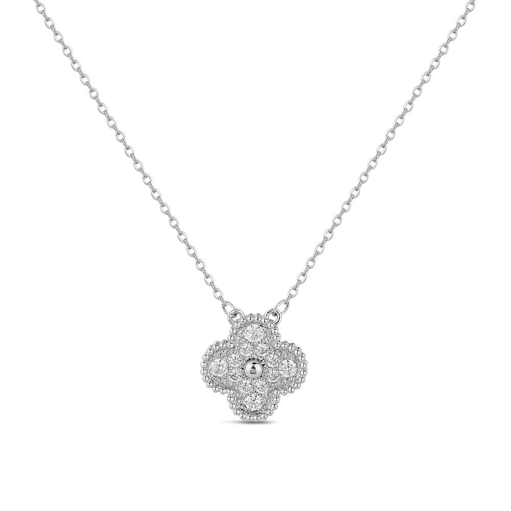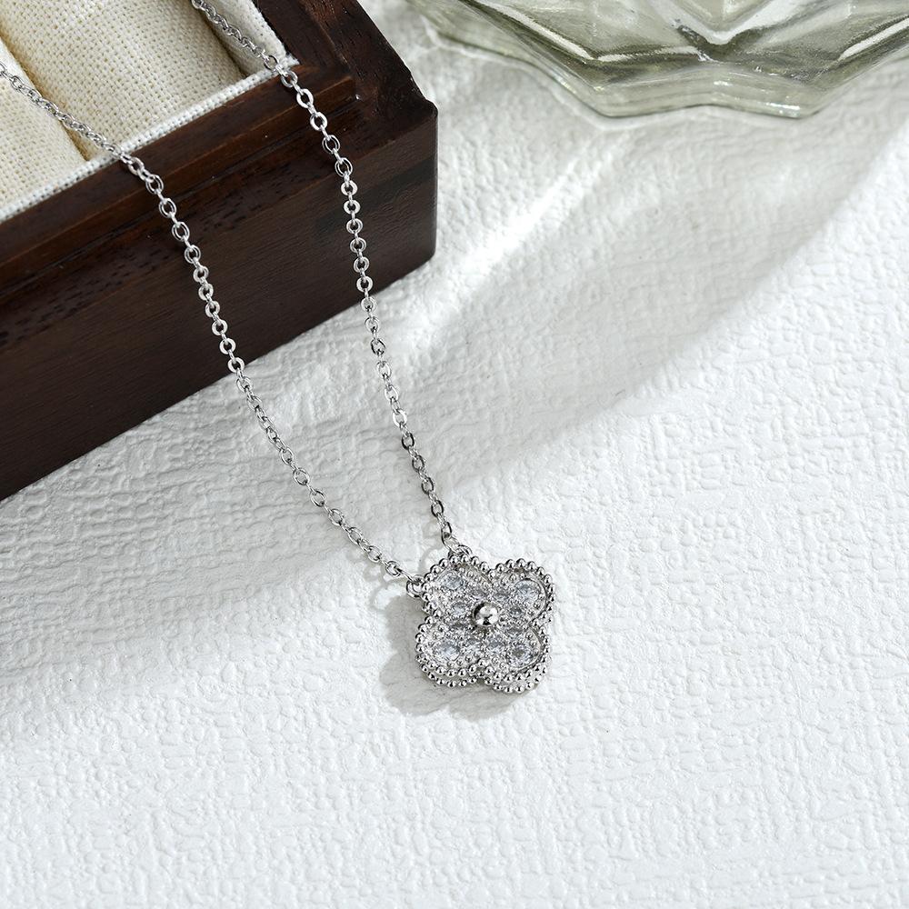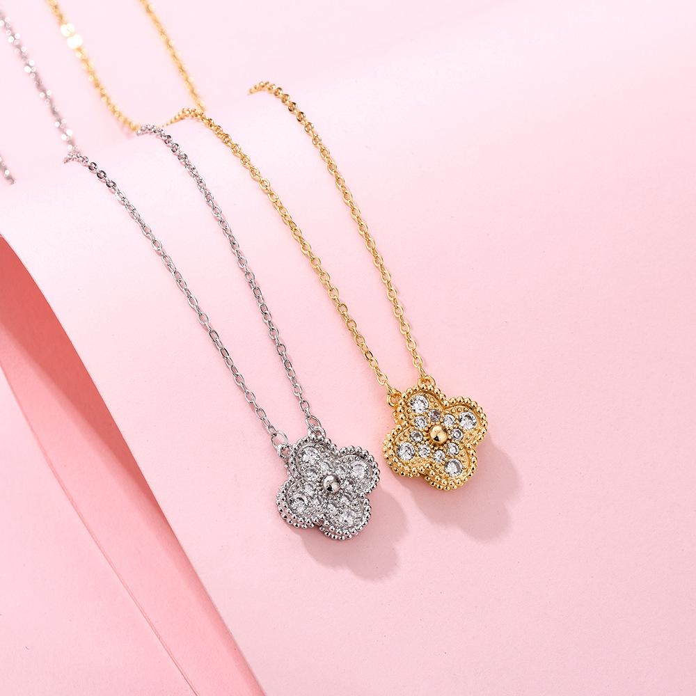 Collar Transfronterizo Seiko Trébol de Cuatro Hojas con Diamantes Completos, Femenino, de Alta Gama, Moderno y Versátil, Cadena de Clavícula con Flor de la Suerte Personalizada