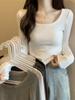 Camisa feminina de veludo quente e justa com gola redonda, manga longa pura, outono e inverno, top com fundo