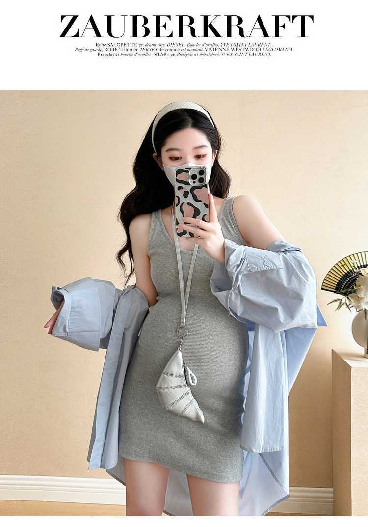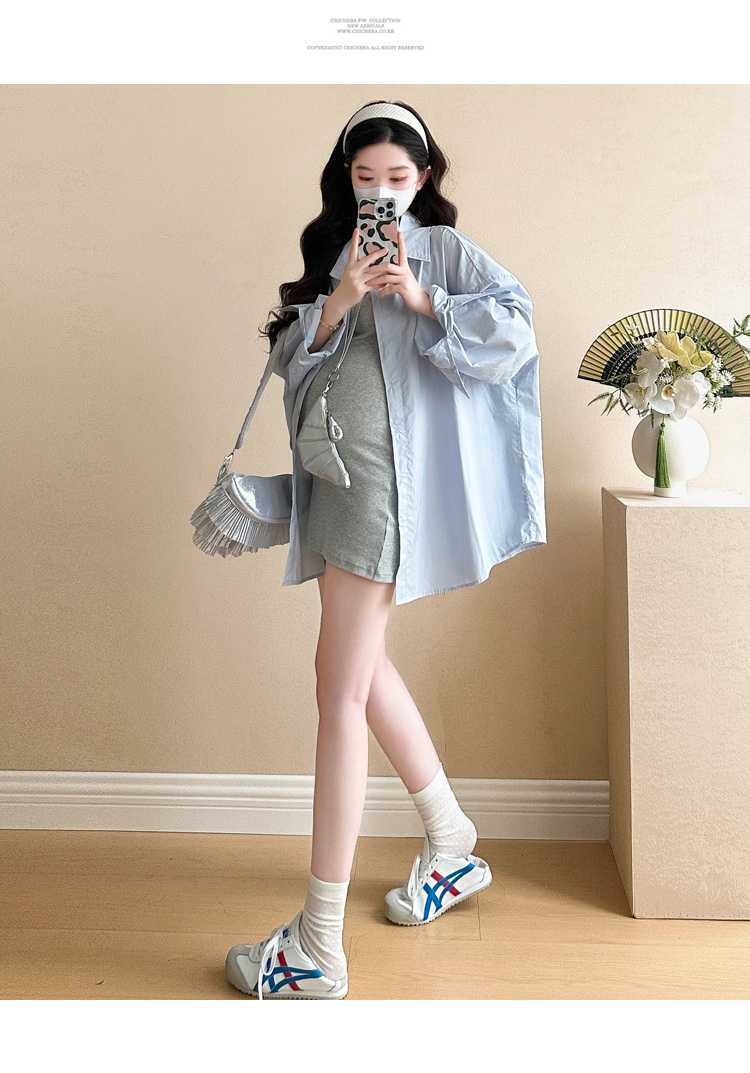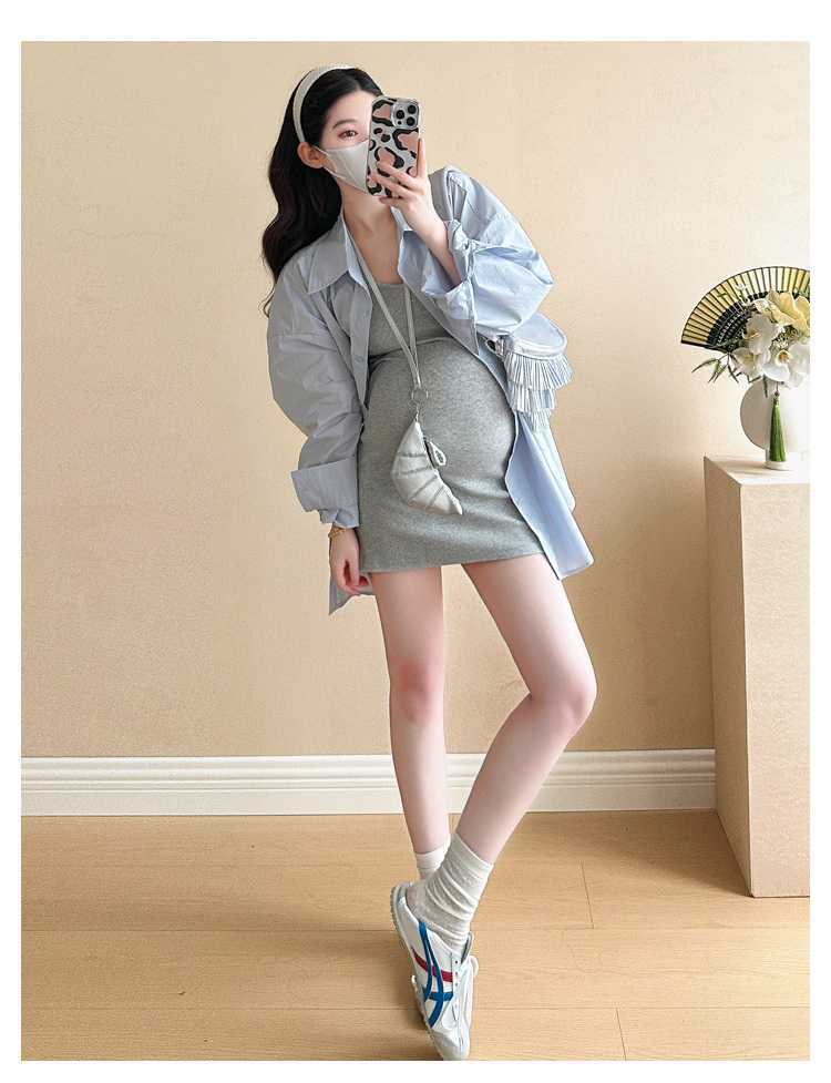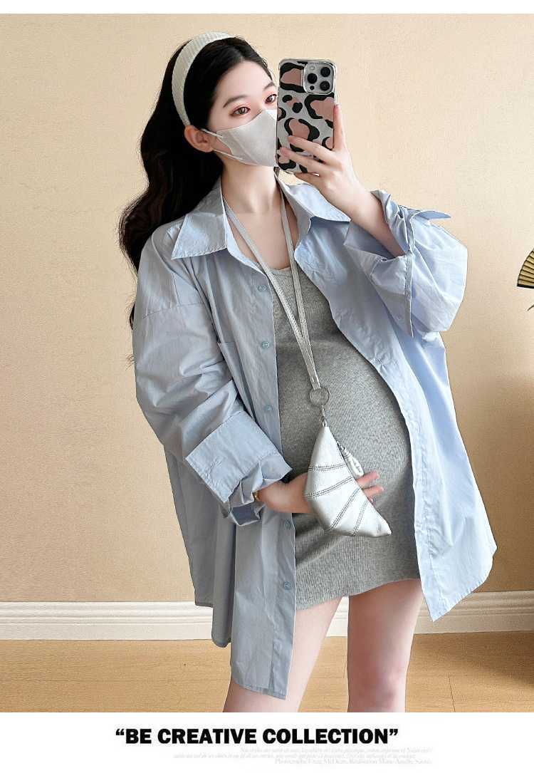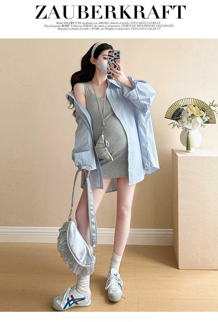 Camiseta holgada de dos piezas de estilo relajado para embarazadas, de punto elástico, para primavera de 2025