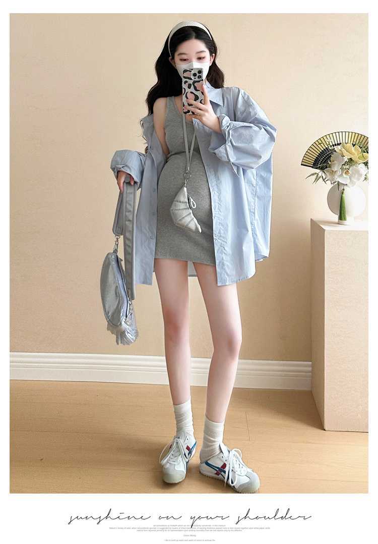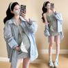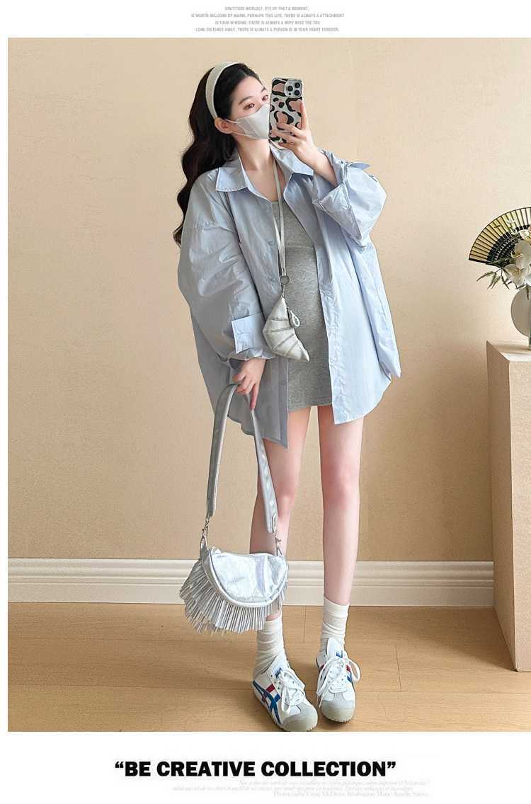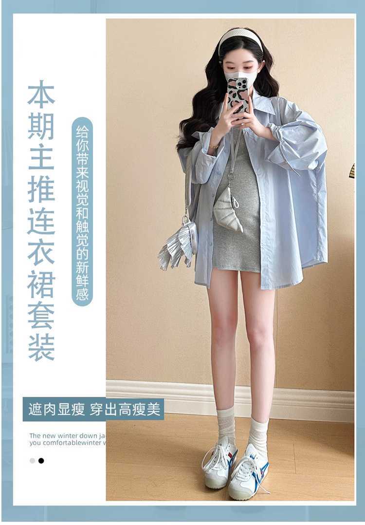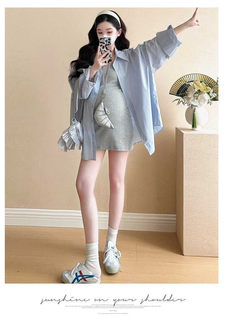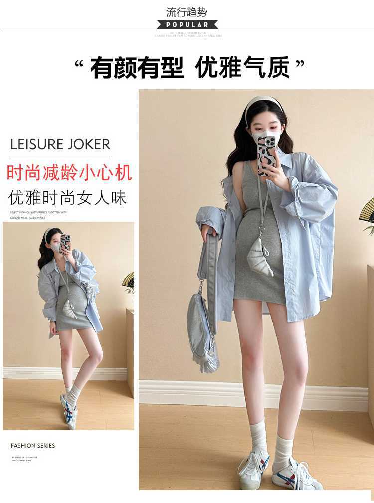 Camiseta holgada de dos piezas de estilo relajado para embarazadas, de punto elástico, para primavera de 2025