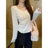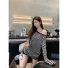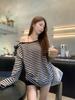 Camiseta de manga larga para mujer, estilo coreano, estilo americano, otoño e invierno 2025, con cuello redondo y rayas holgadas, diseño raglán