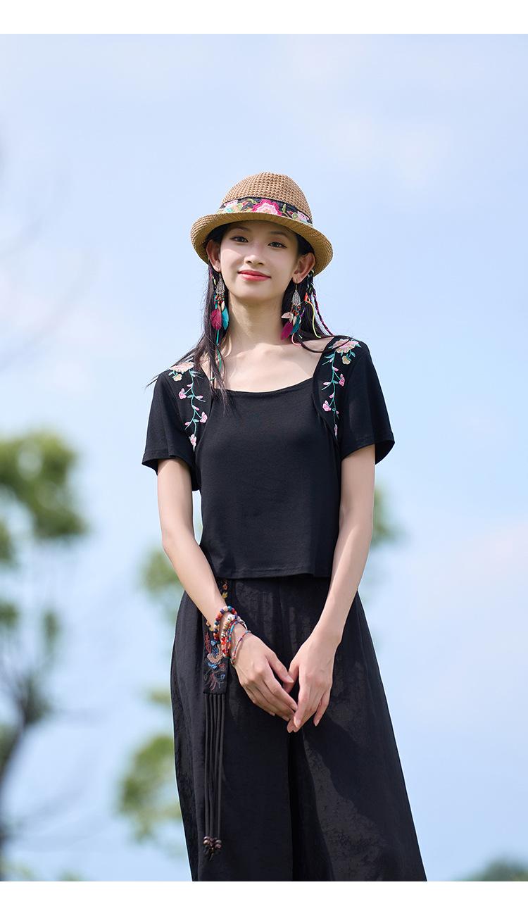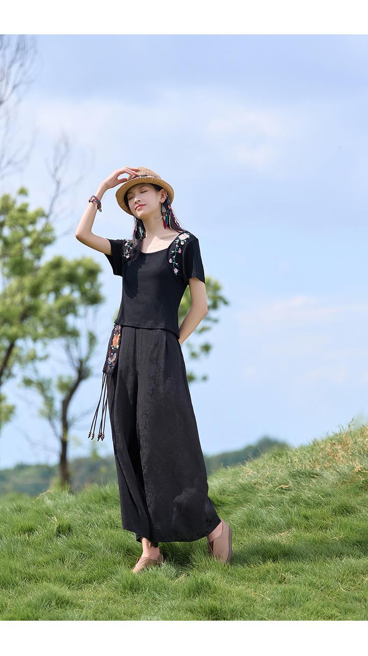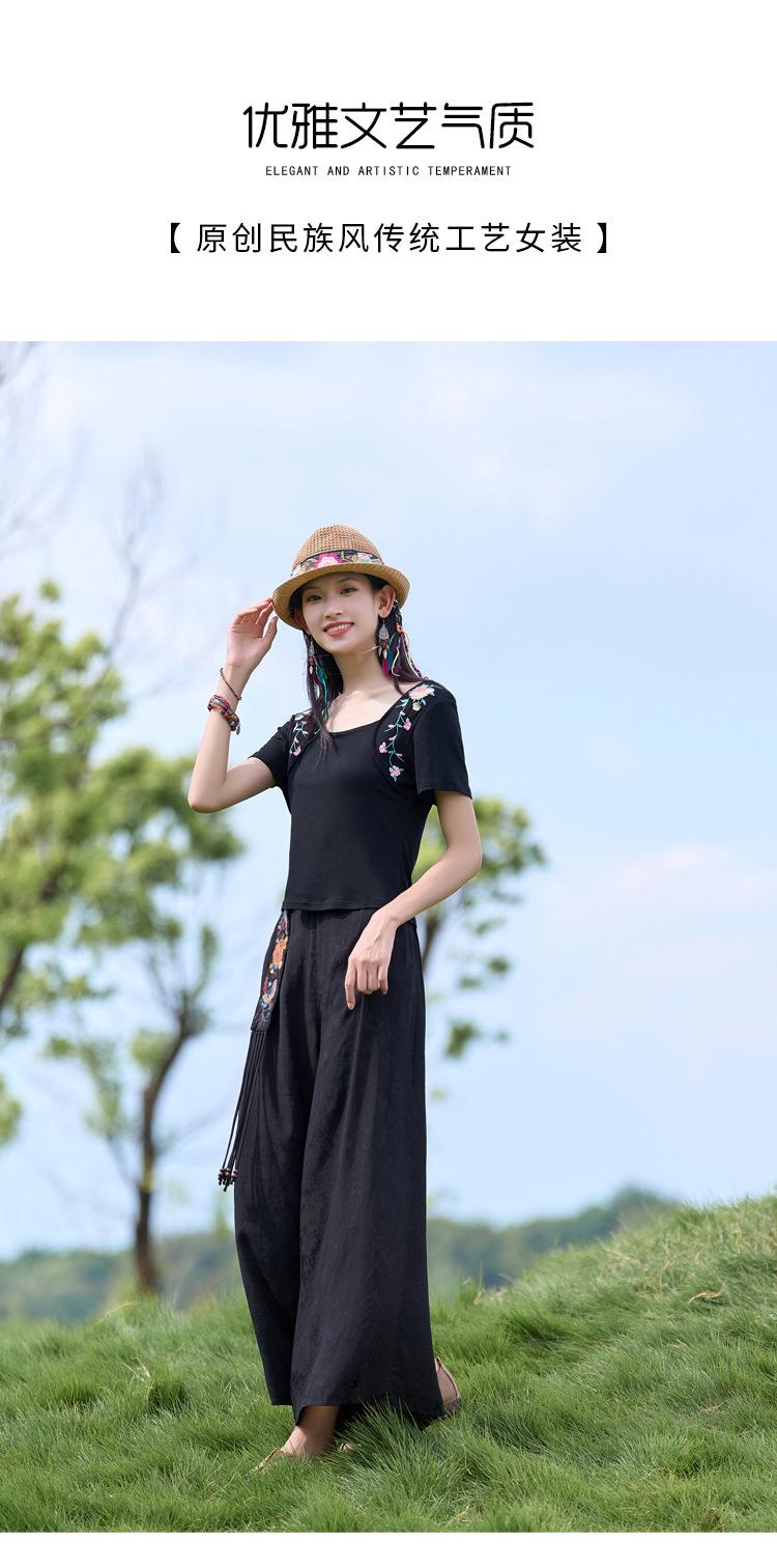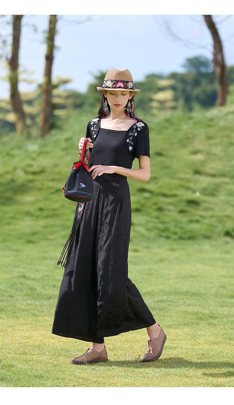 2024 estilo étnico bordado cinta borla pantalones de pierna ancha holgados adelgazantes rectos pantalones pantalones falda negra combinable