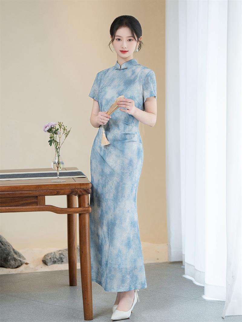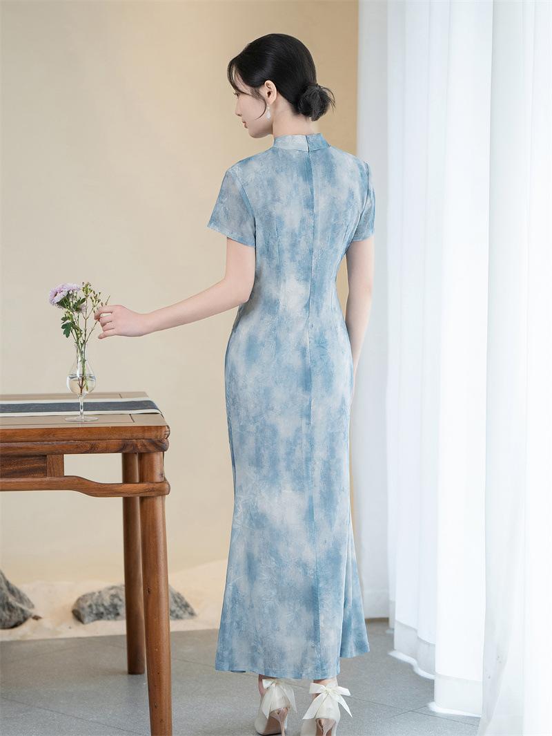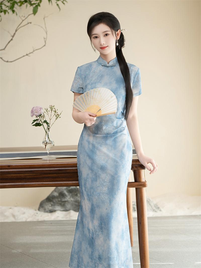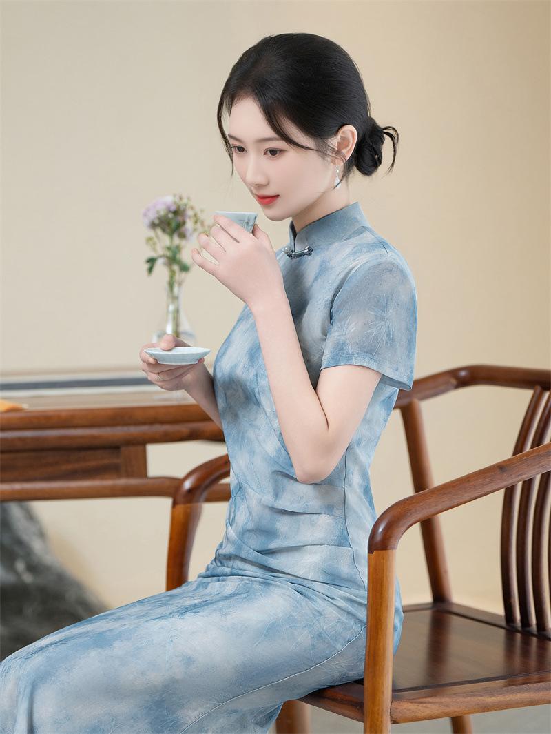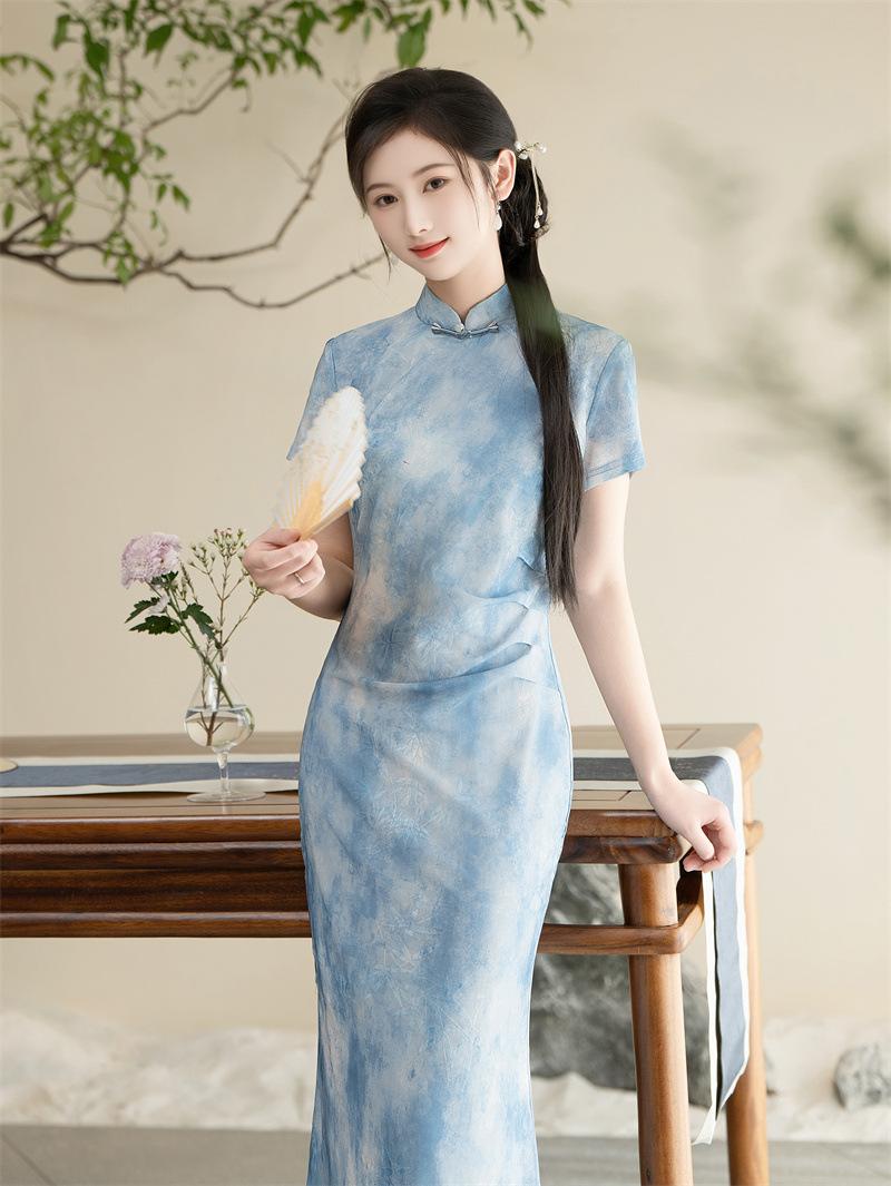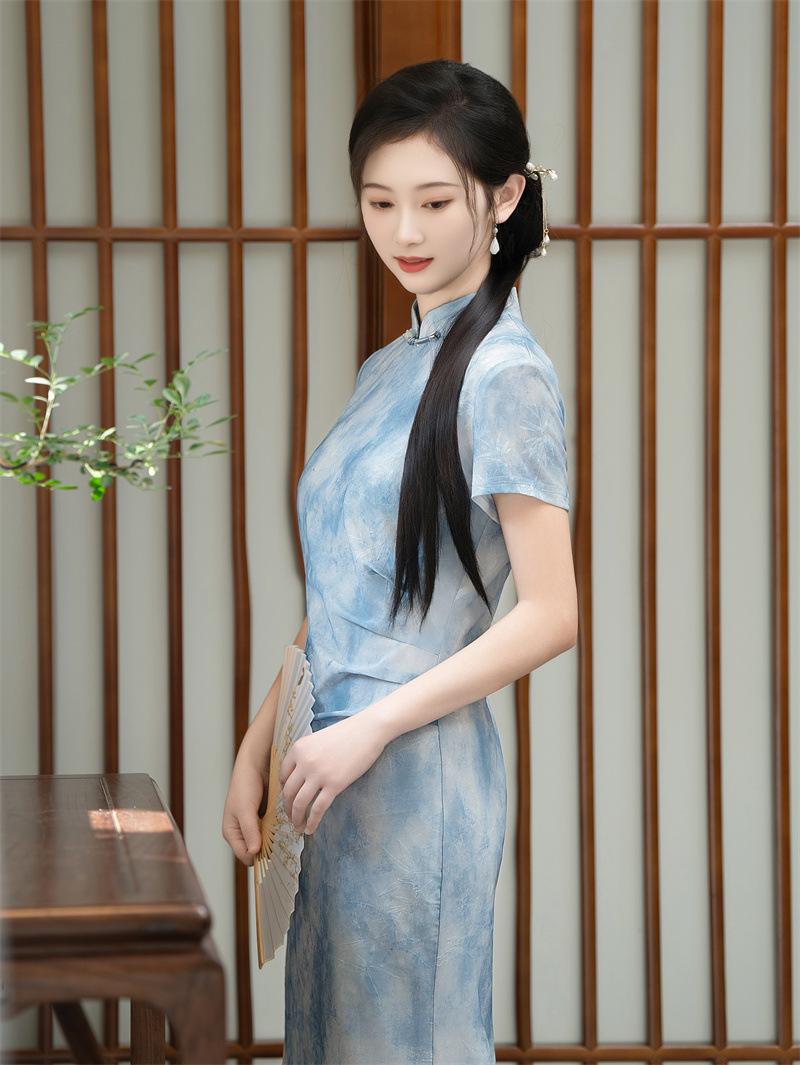 Características:Cheongsam nuevo, tela, textura suave, buena caída, no se encoge, no se decolora, no hace bolitas, ligera elasticidad, más característico de la nación china, bienvenido a comprar,