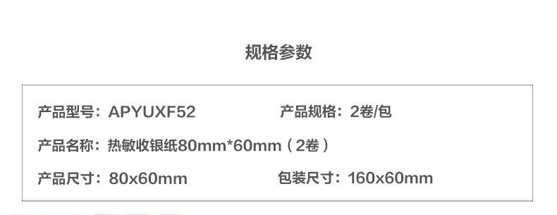 80mm*80mm (2 rolls), 57mm*50mm (4 rolls), 80mm*60mm (2 rolls)
