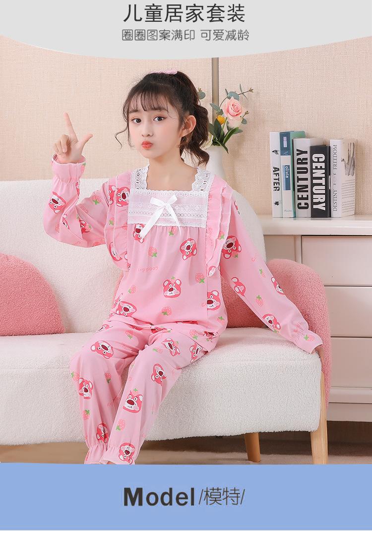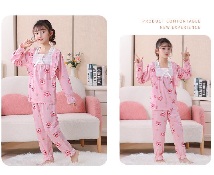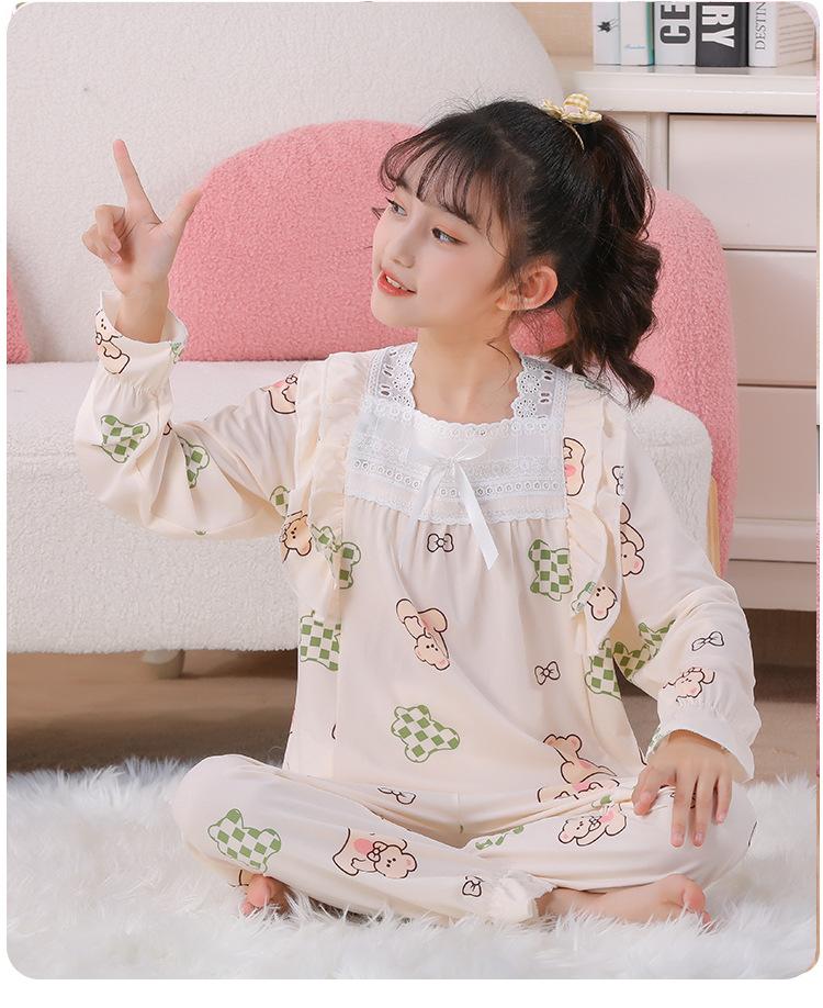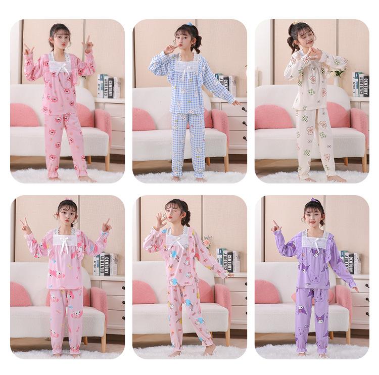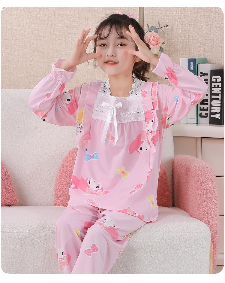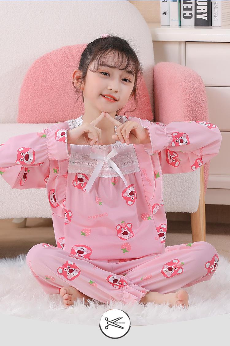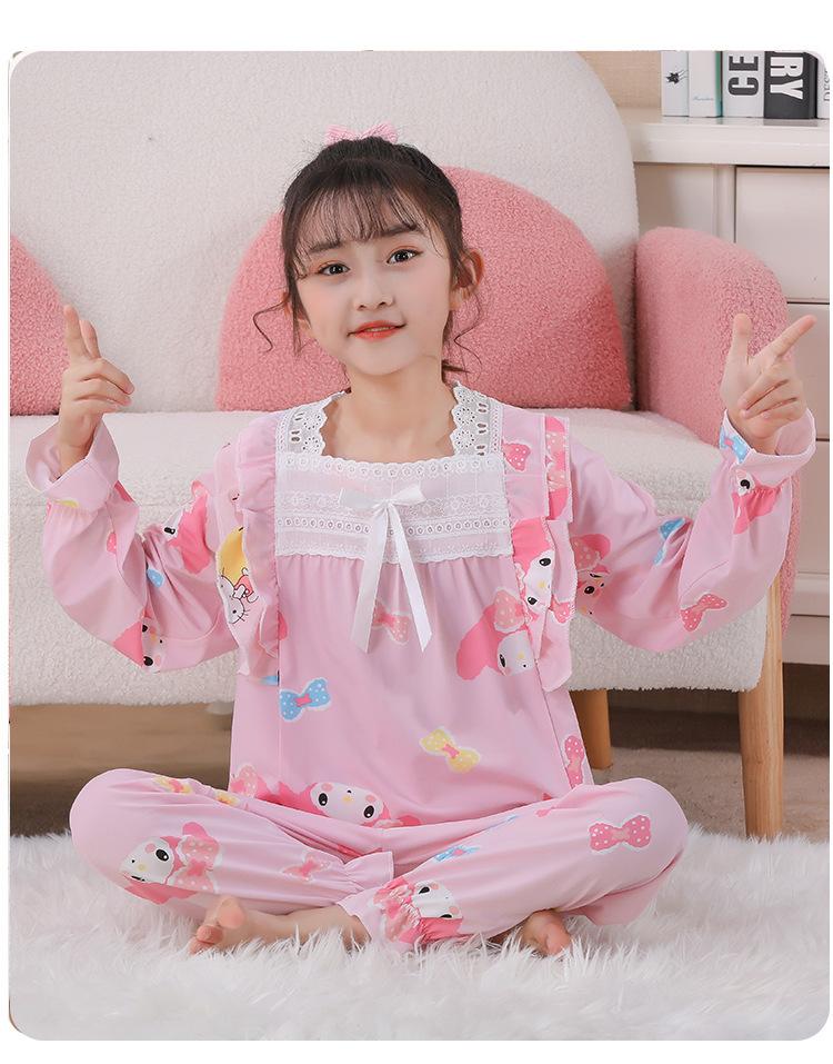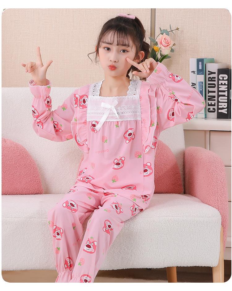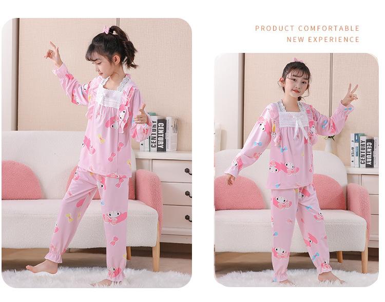 Pijamas de otoño para niños, traje de manga larga con encaje de seda de leche para niñas, bonito traje de ropa de casa de dibujos animados, exportación al por mayor