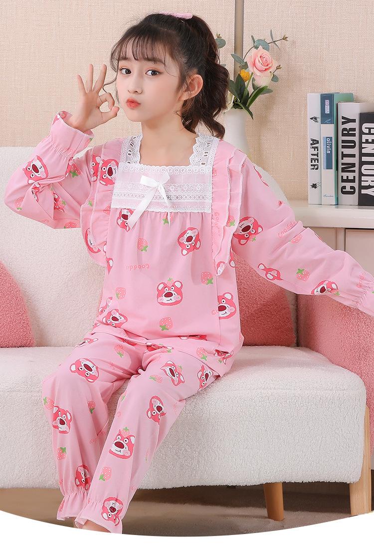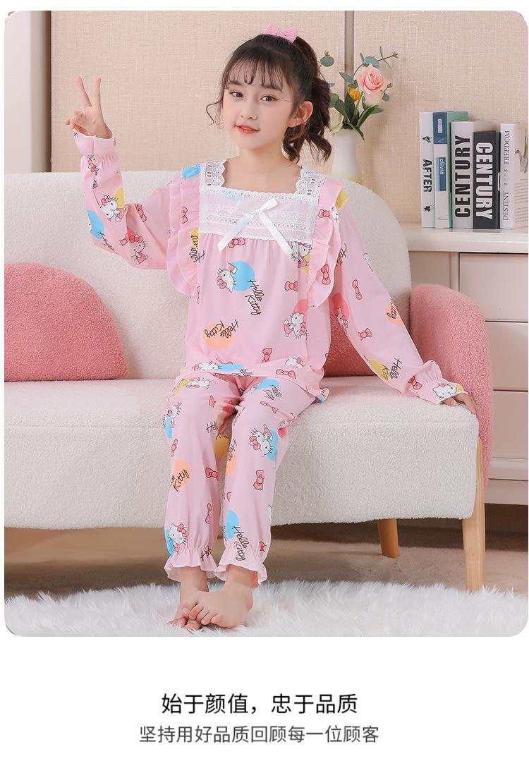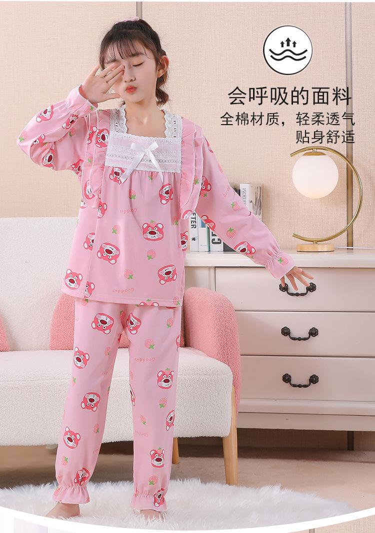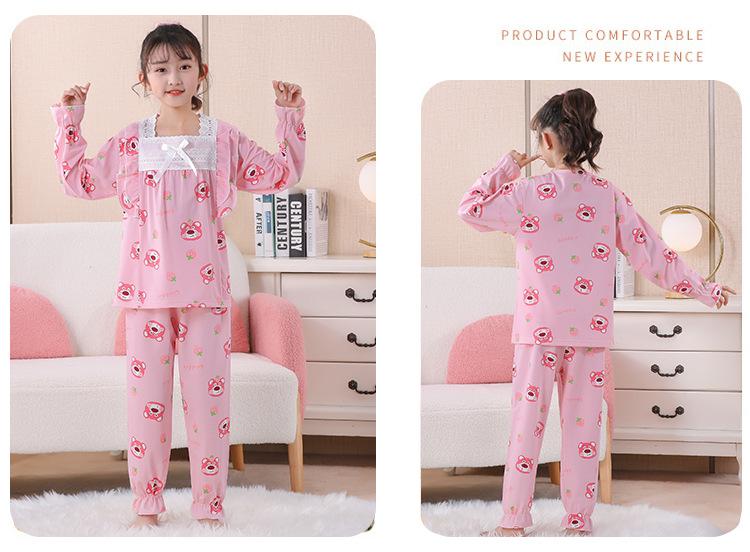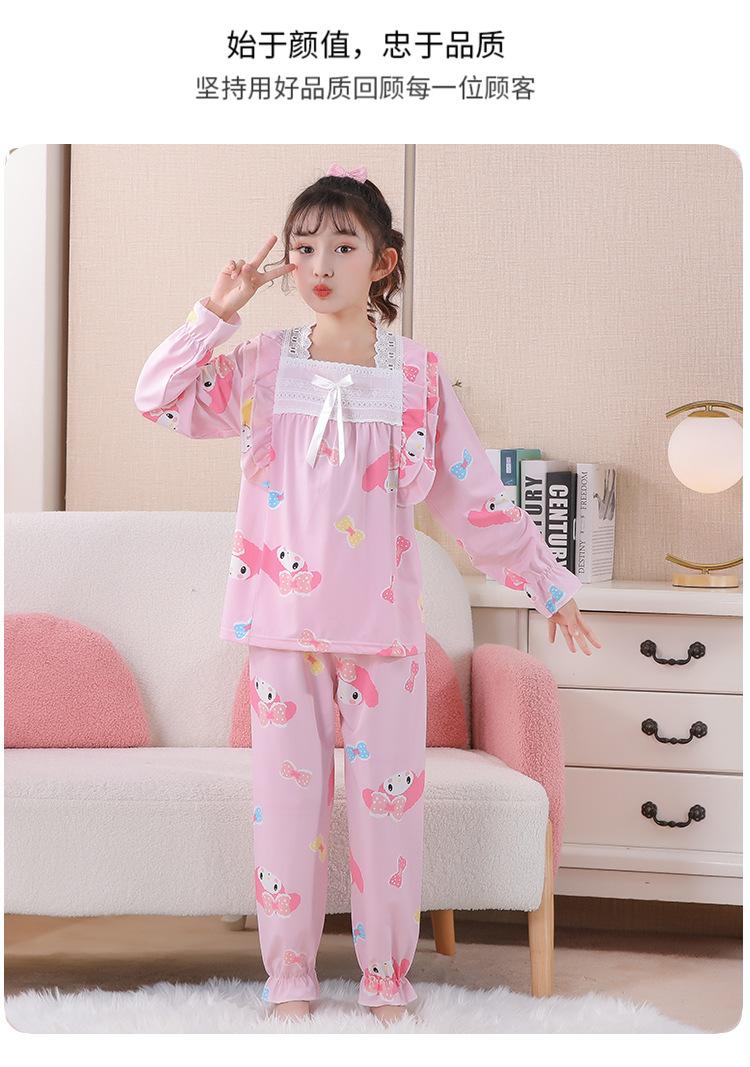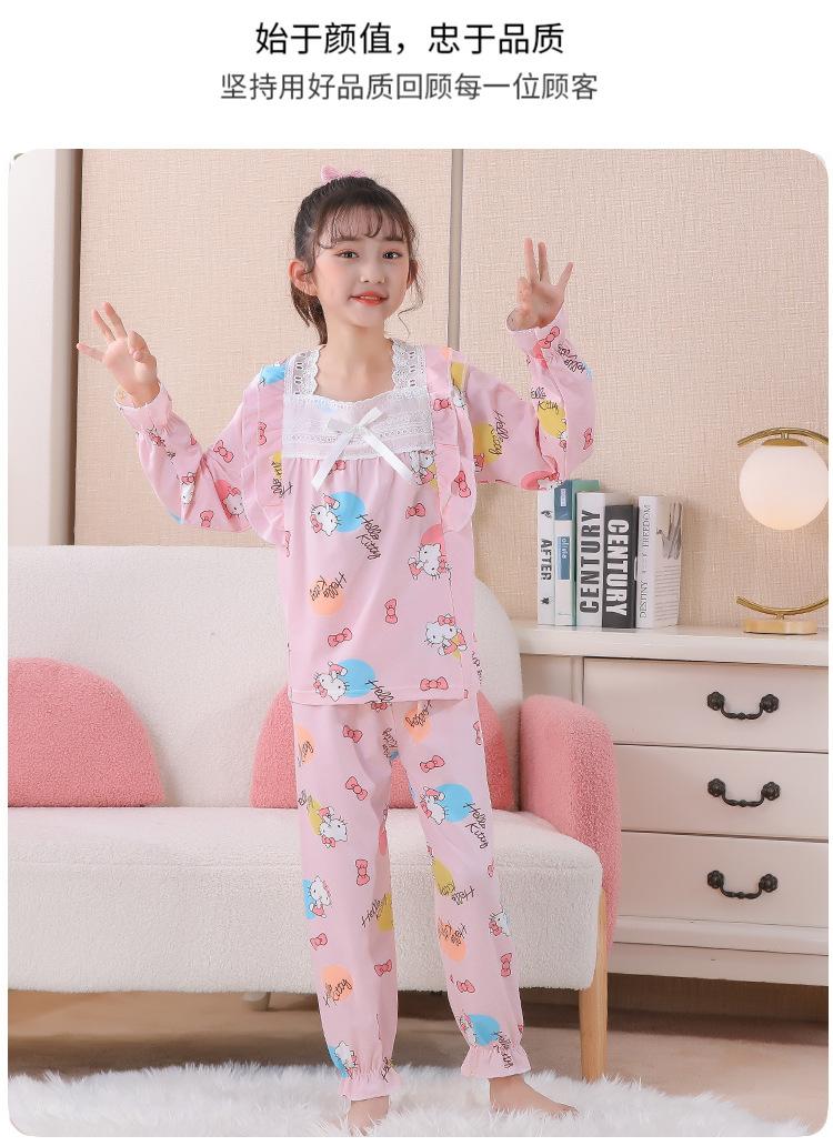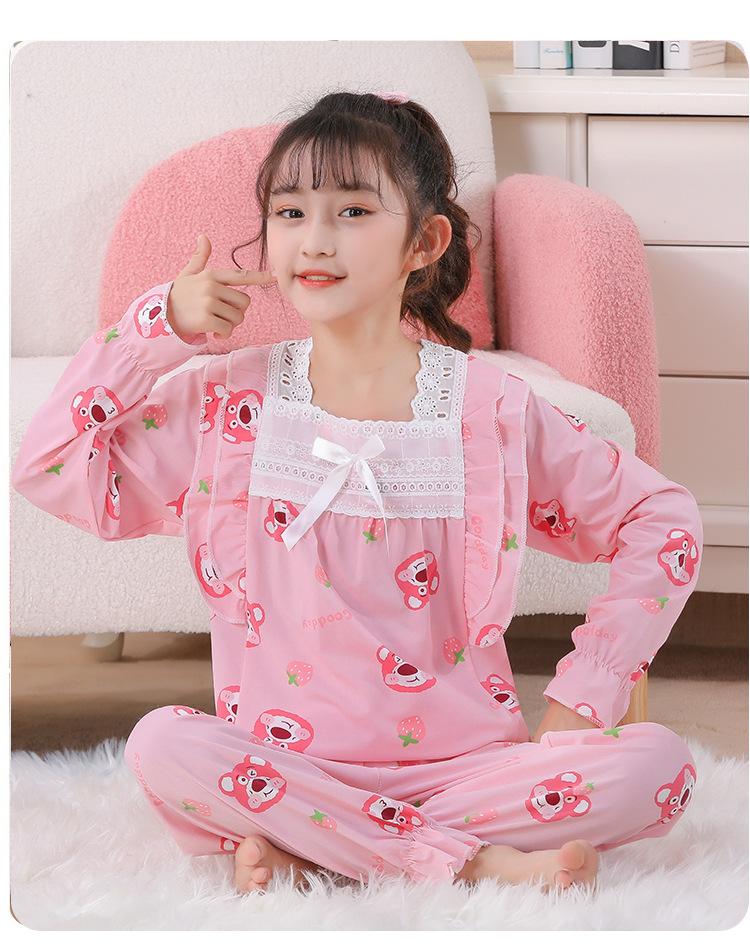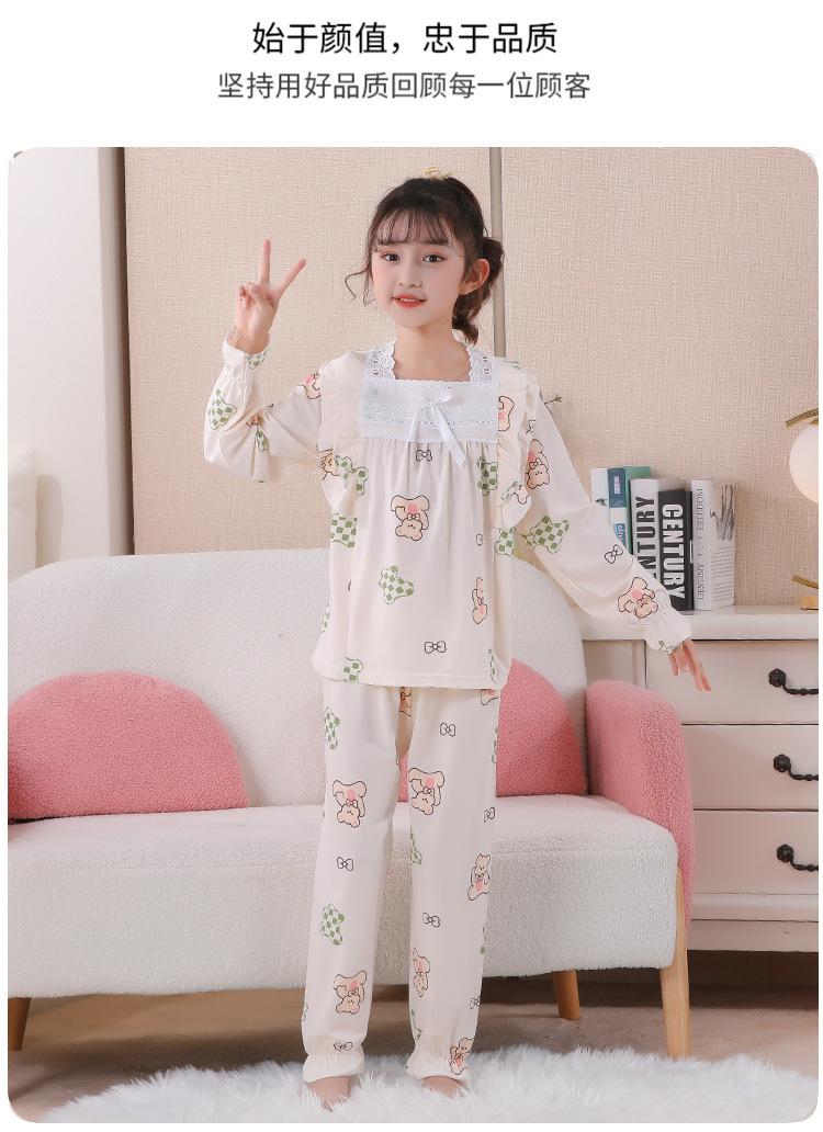 Pijamas de otoño para niños, traje de manga larga con encaje de seda de leche para niñas, bonito traje de ropa de casa de dibujos animados, exportación al por mayor