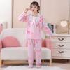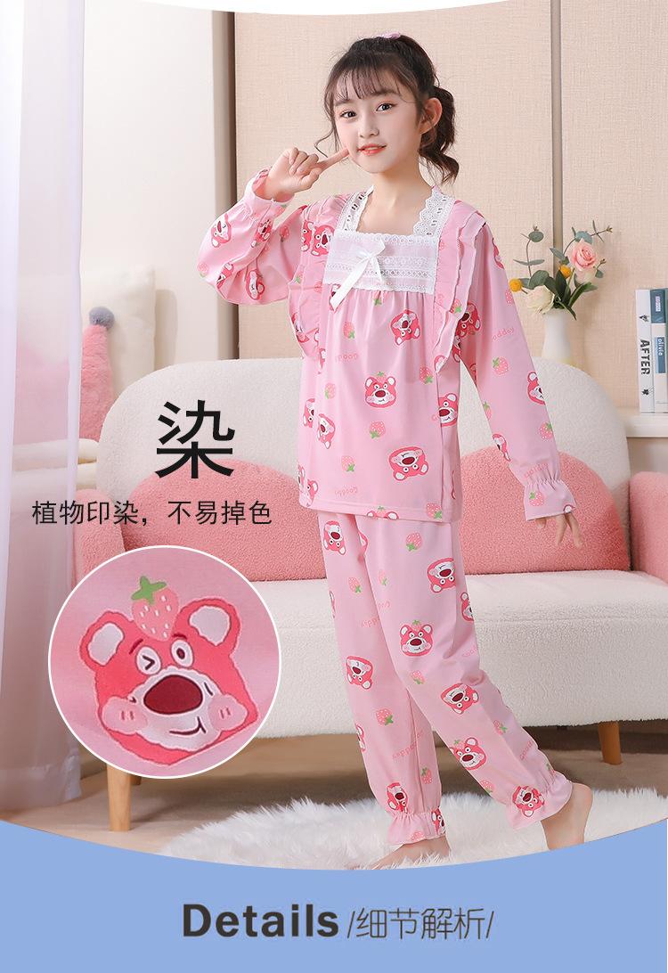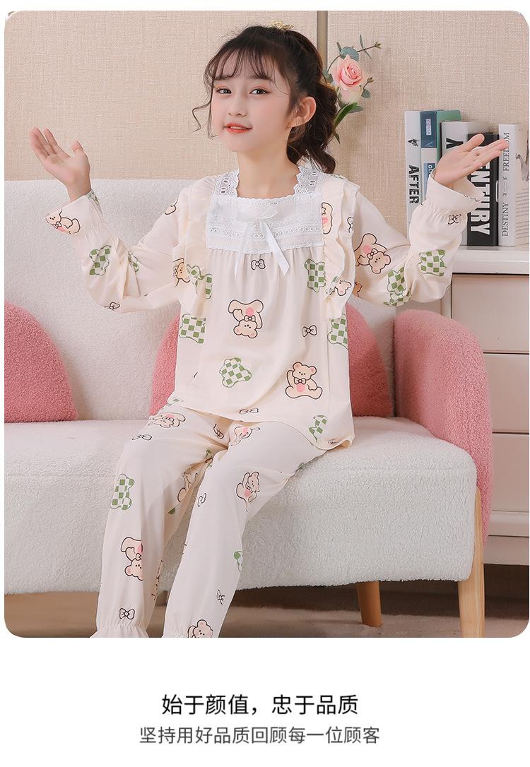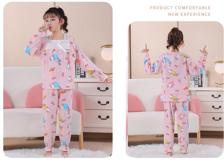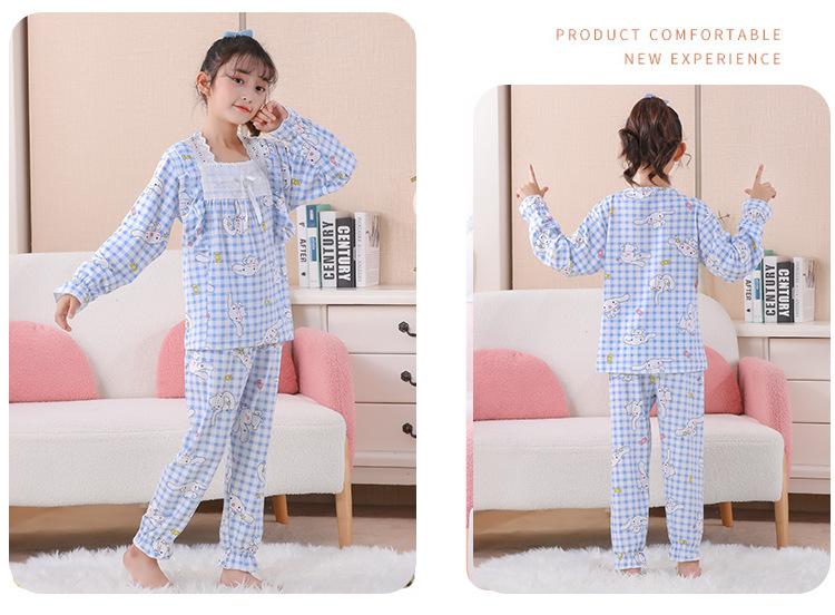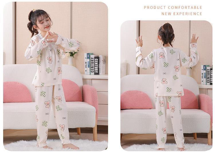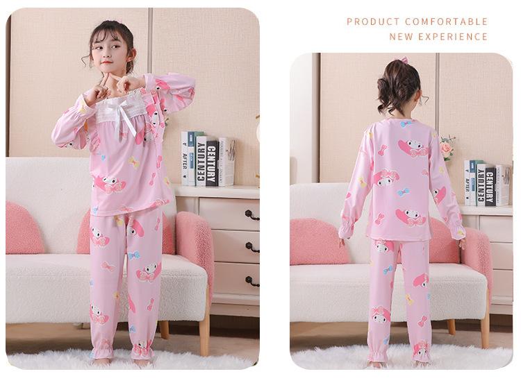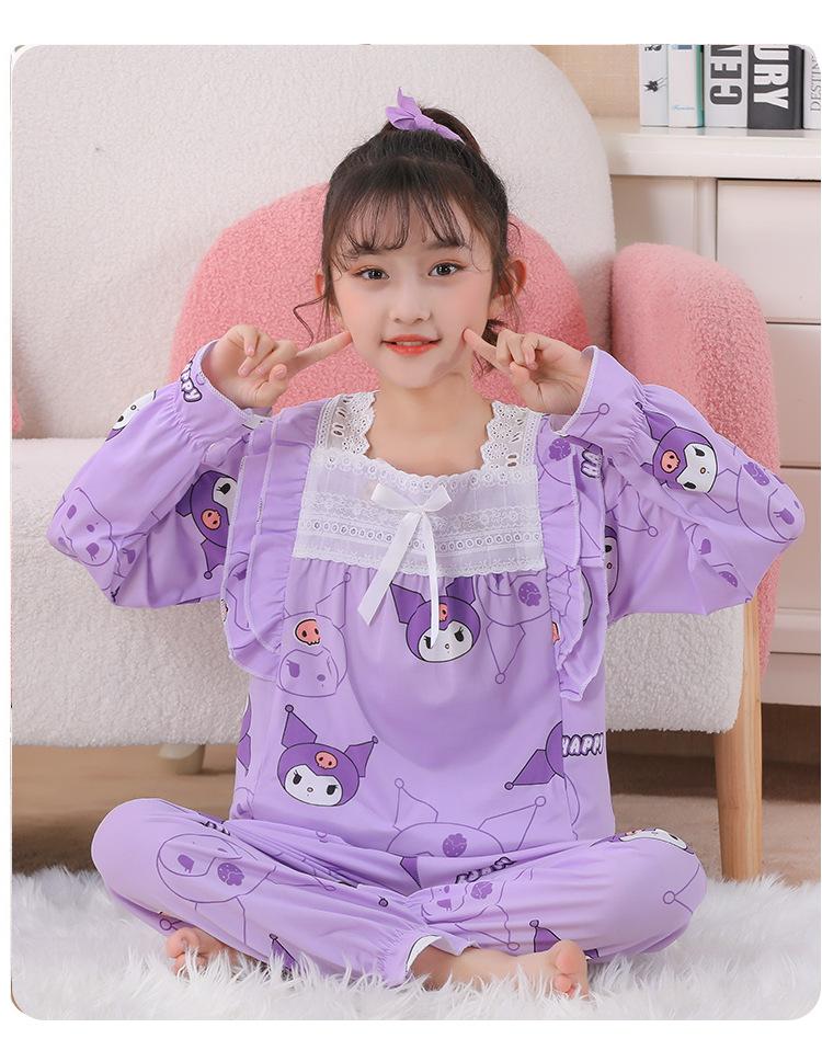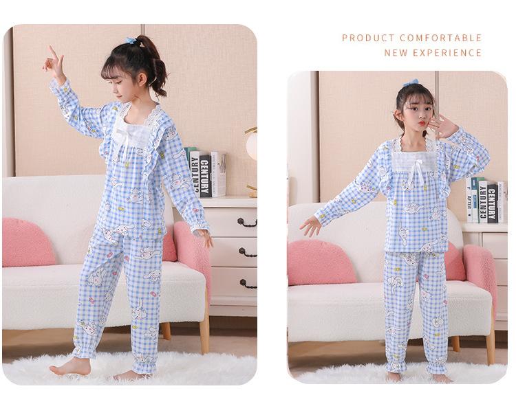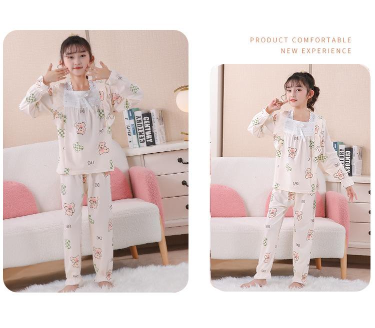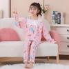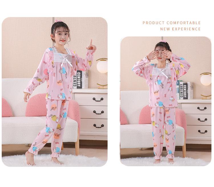Pijamas de otoño para niños, traje de manga larga con encaje de seda de leche para niñas, bonito traje de ropa de casa de dibujos animados, exportación al por mayor