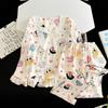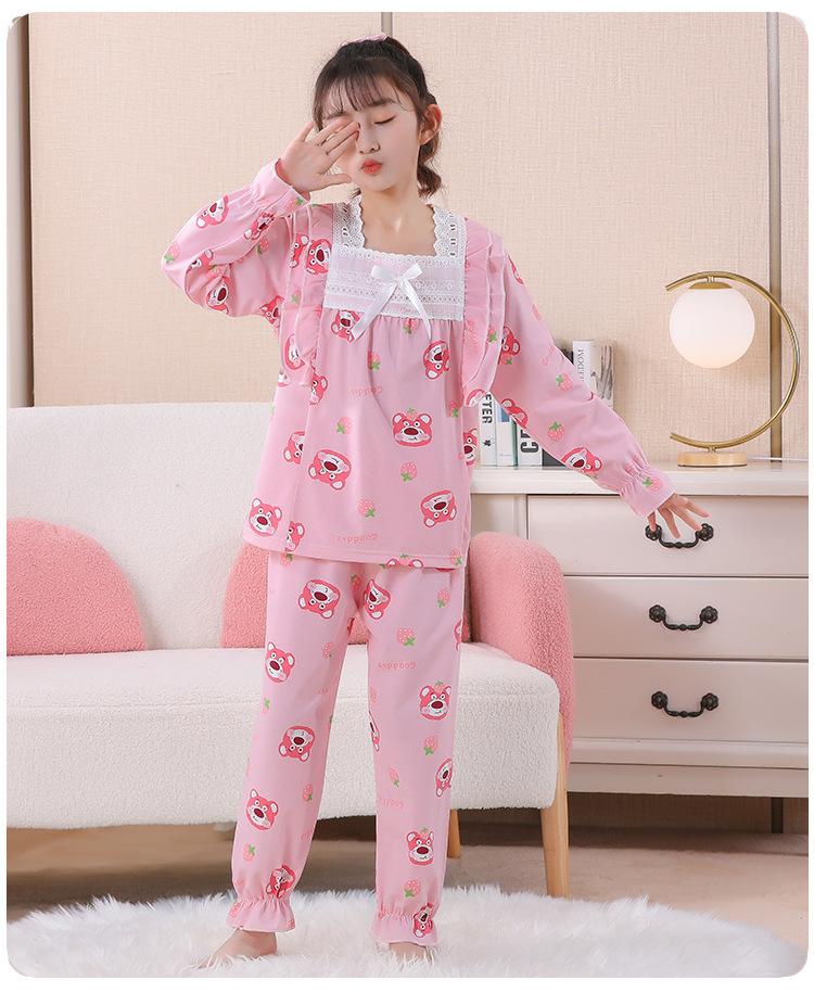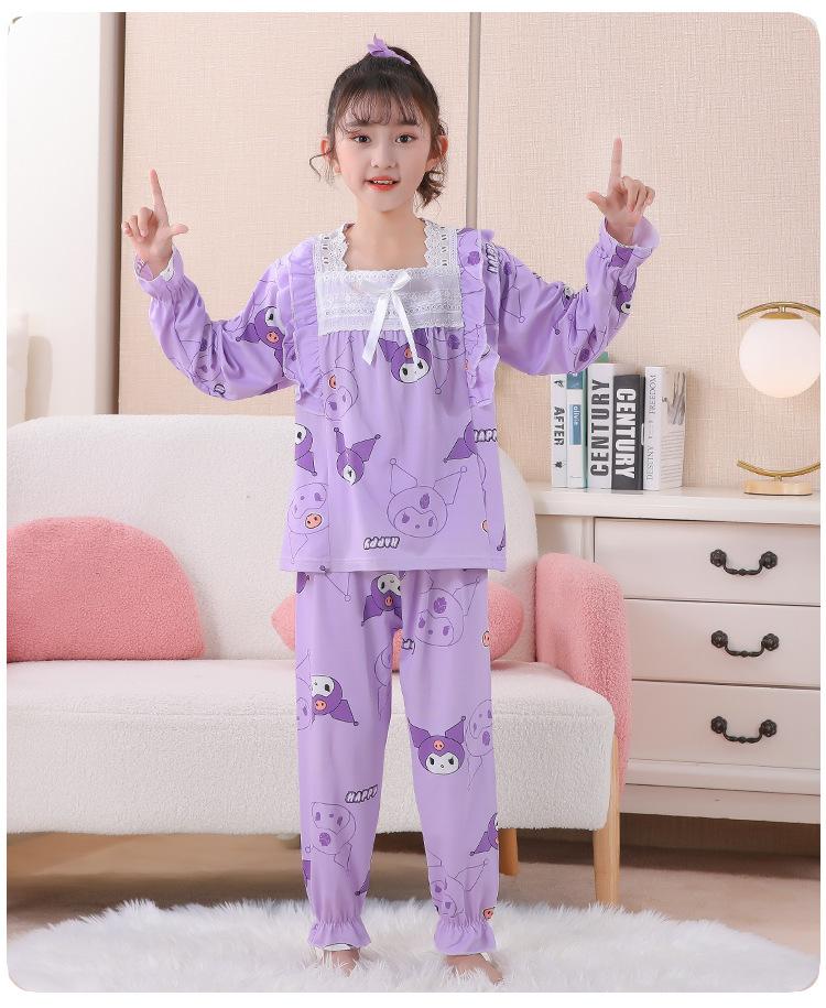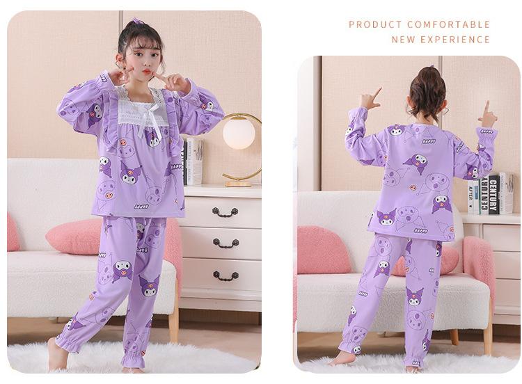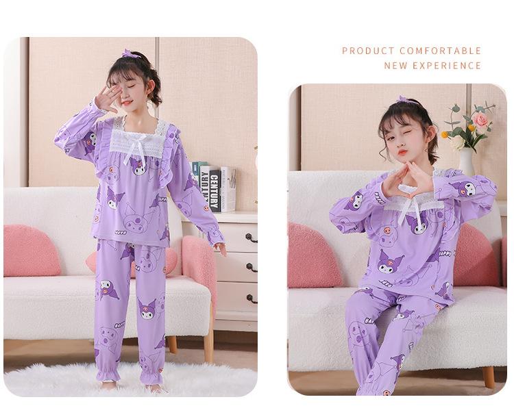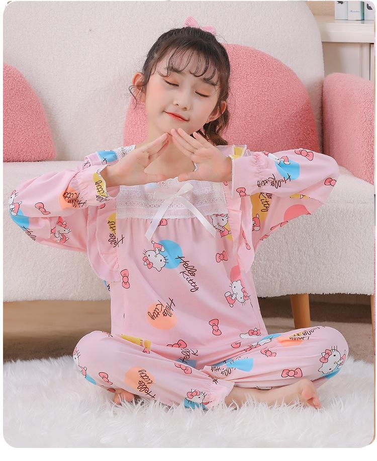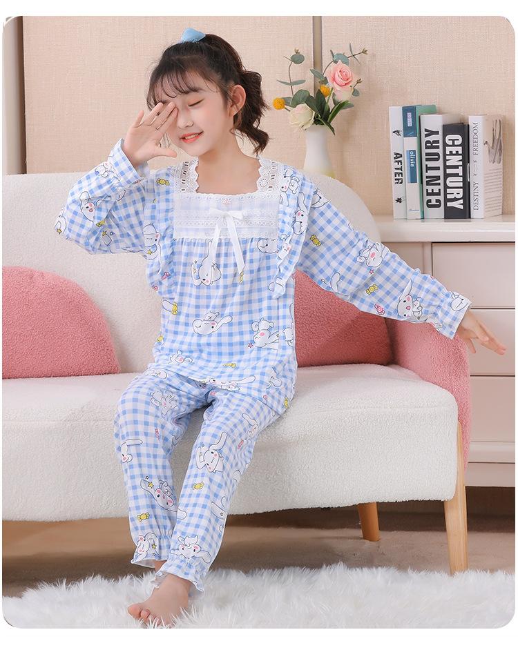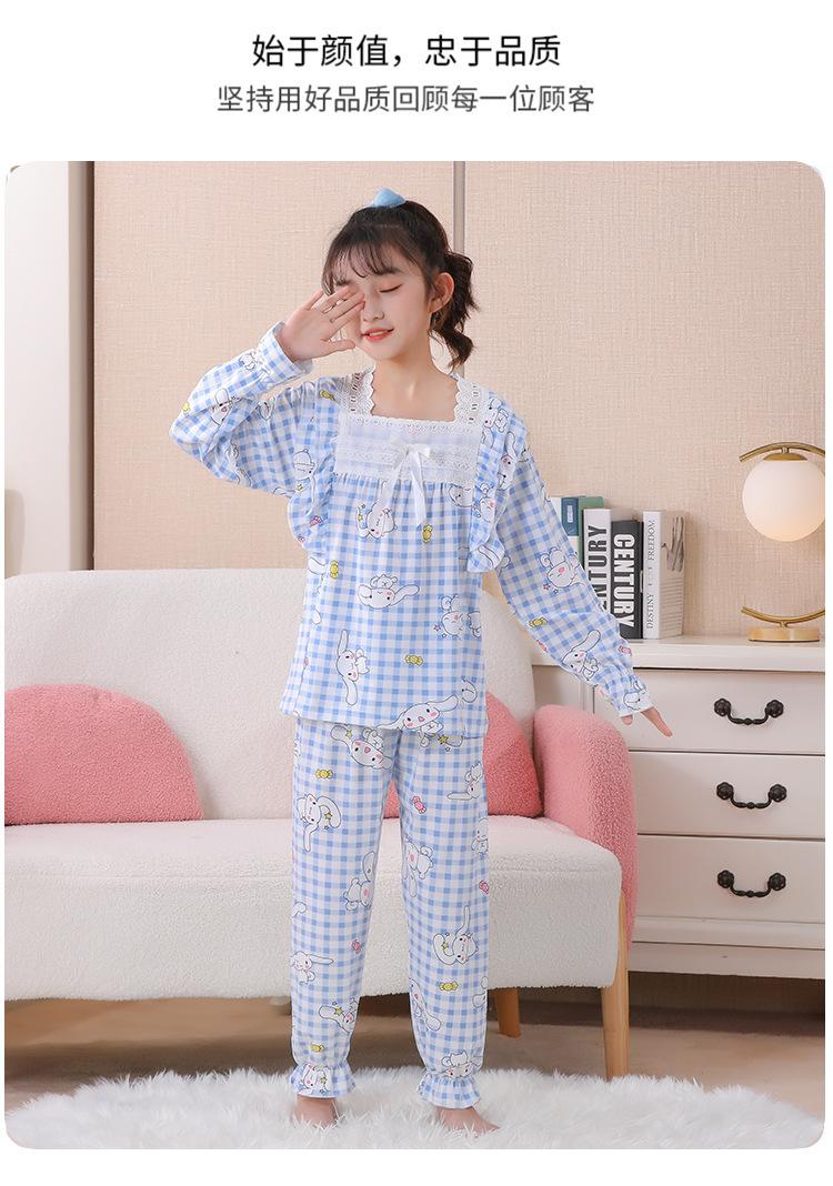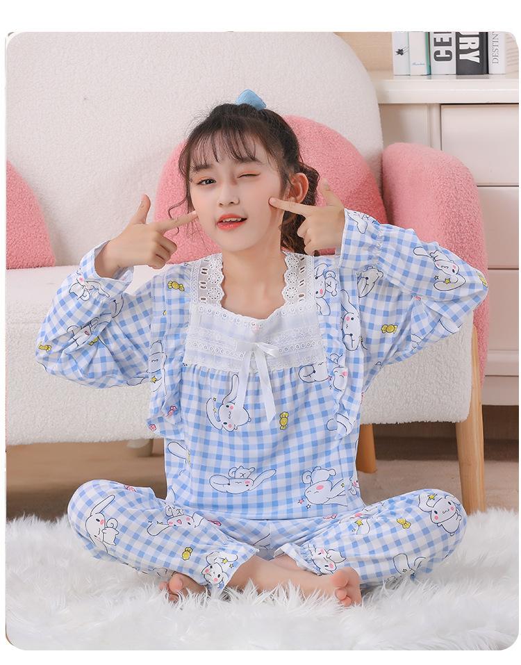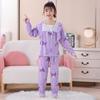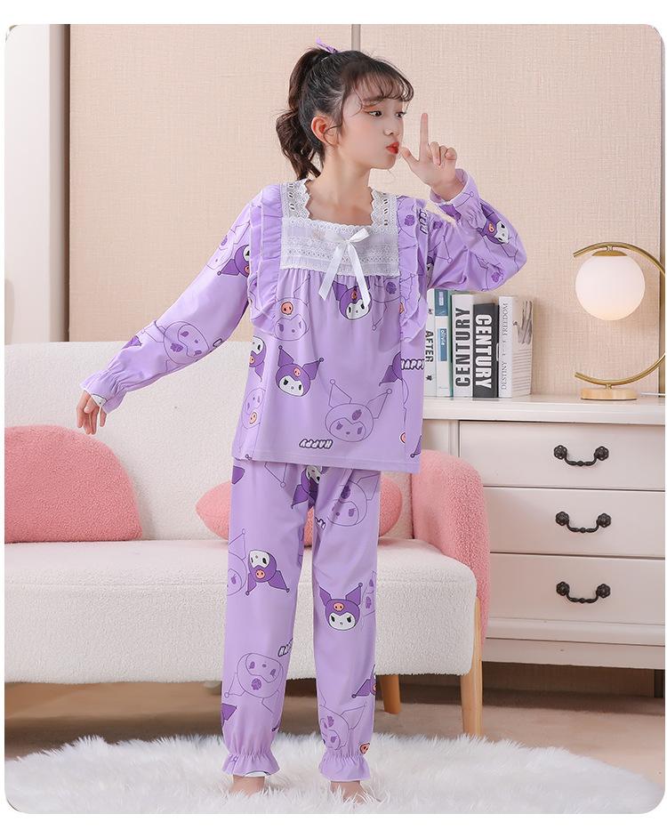 Pijamas de otoño para niños, traje de manga larga con encaje de seda de leche para niñas, bonito traje de ropa de casa de dibujos animados, exportación al por mayor