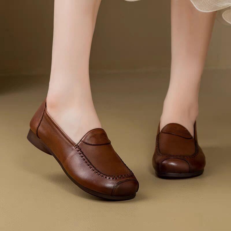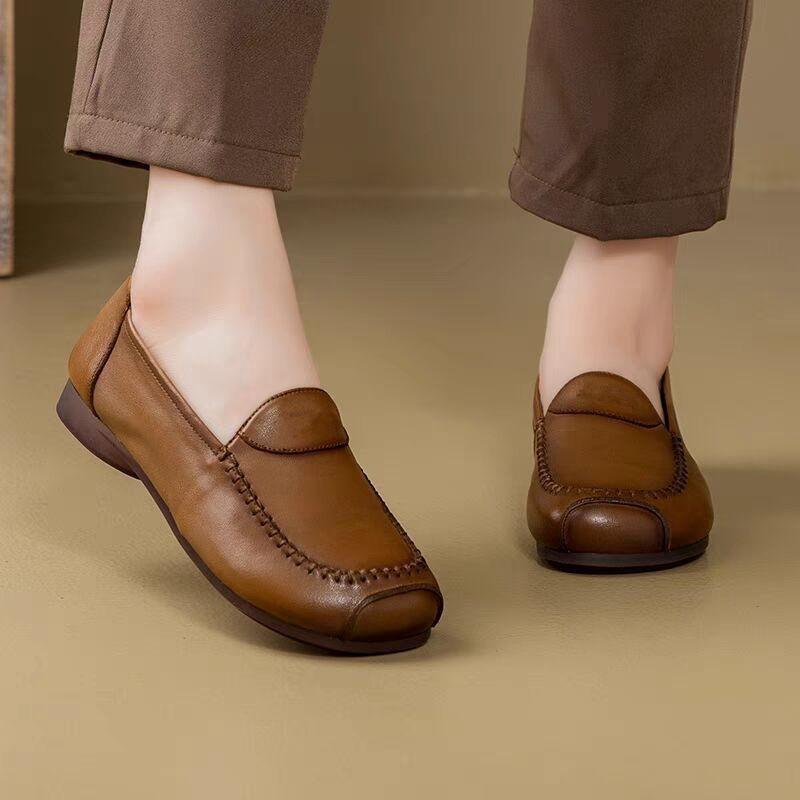 Zapatos de madre primavera y otoño 2025 nuevos zapatos de cuero suave con suela suave y superficie suave, zapatos de cuero cómodos, zapatos sin cordones para mujeres de mediana edad y mayores.