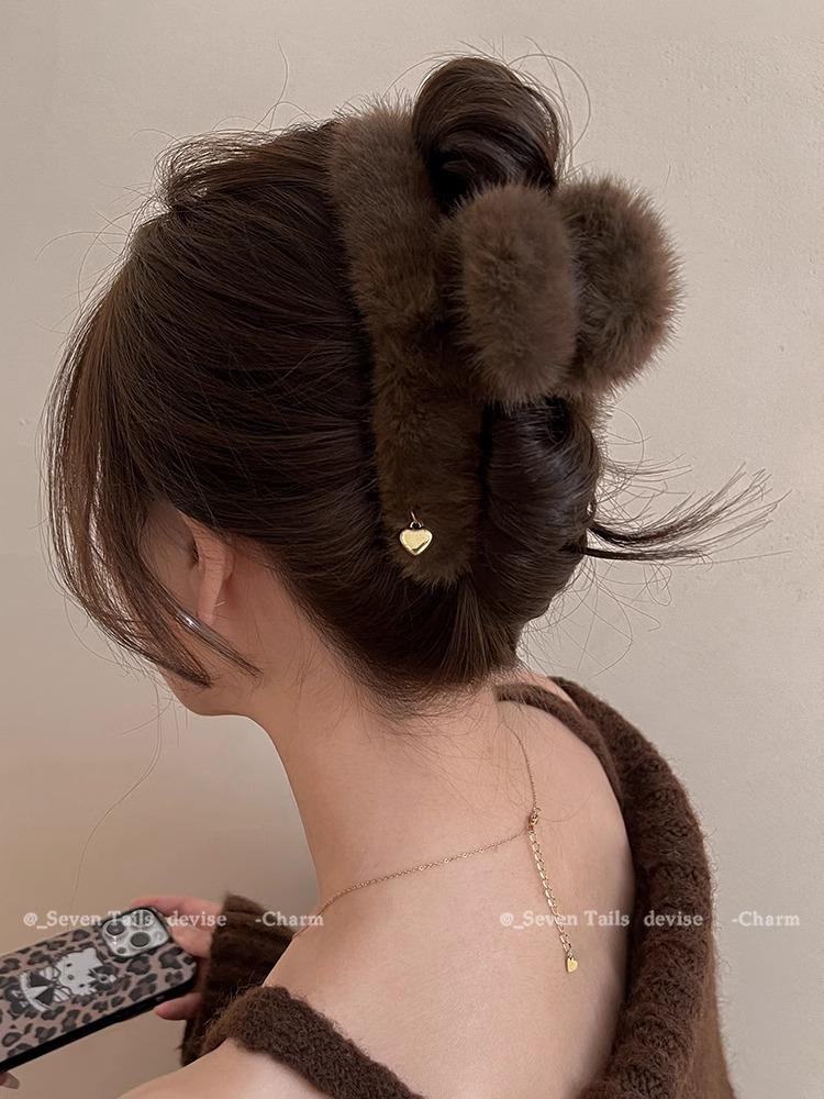Clip de agarre Mao Mao de otoño e invierno Advanced Sense para mujer 2024, nuevo clip de tiburón para la cabeza trasera, horquilla de felpa, accesorios para el cabello, clip para la cabeza