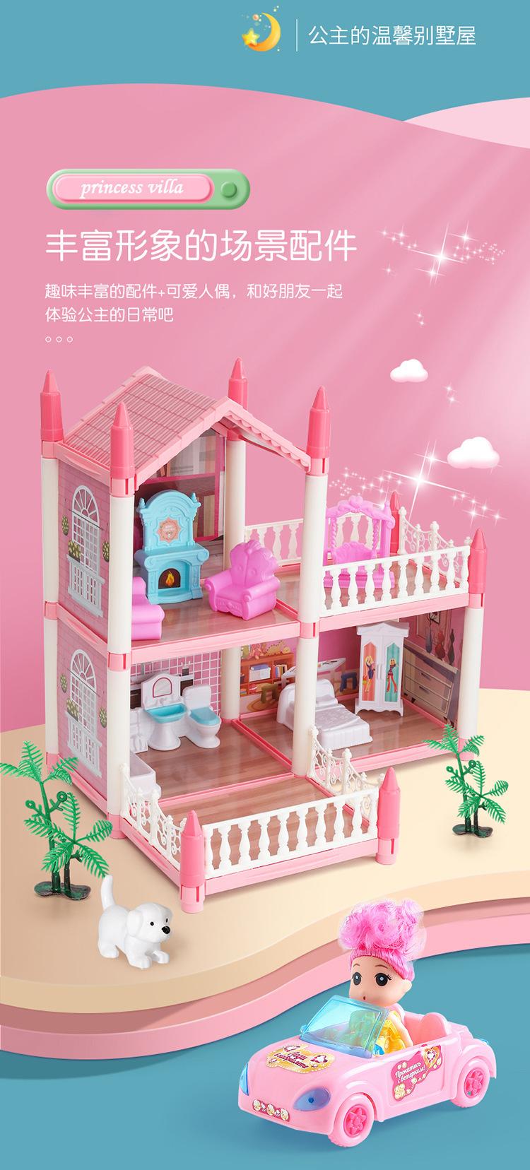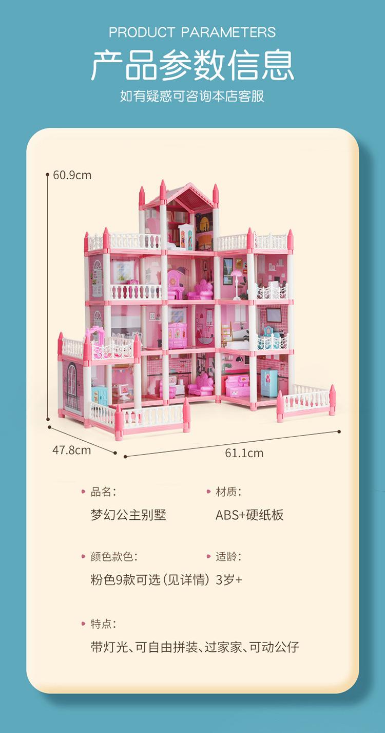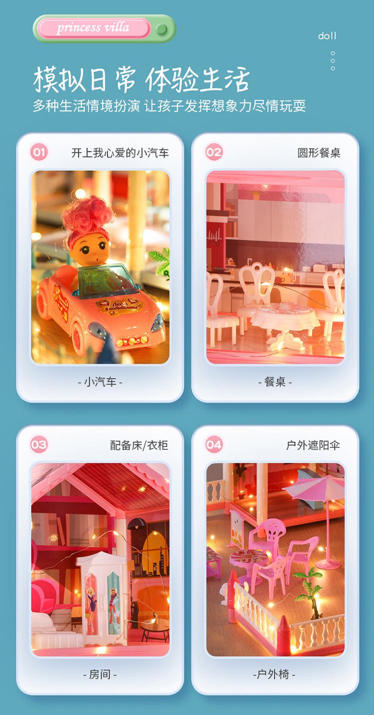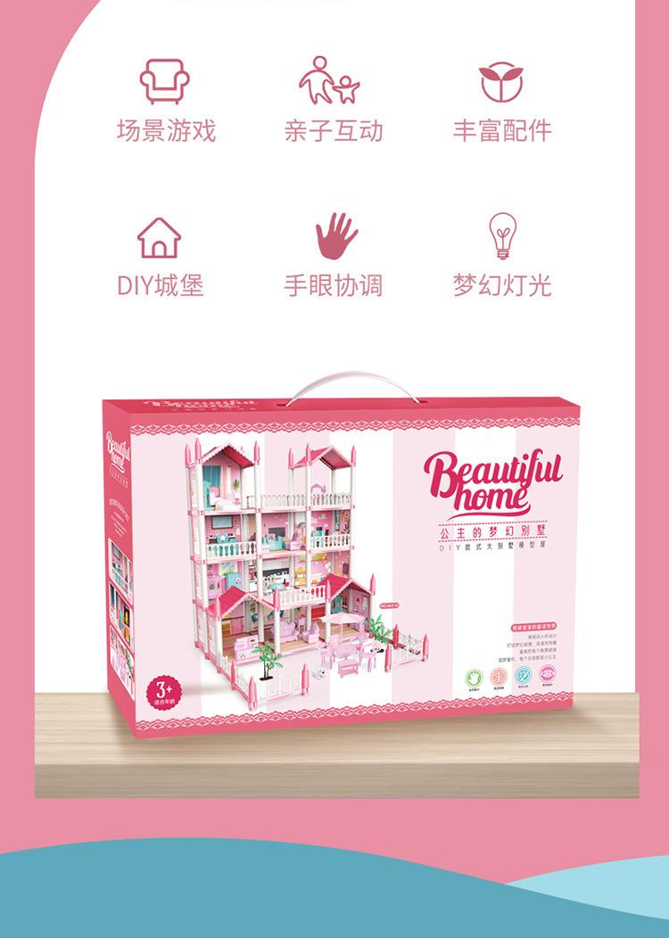 Pink 2-story 2-room +2-doll 1 light mail order box