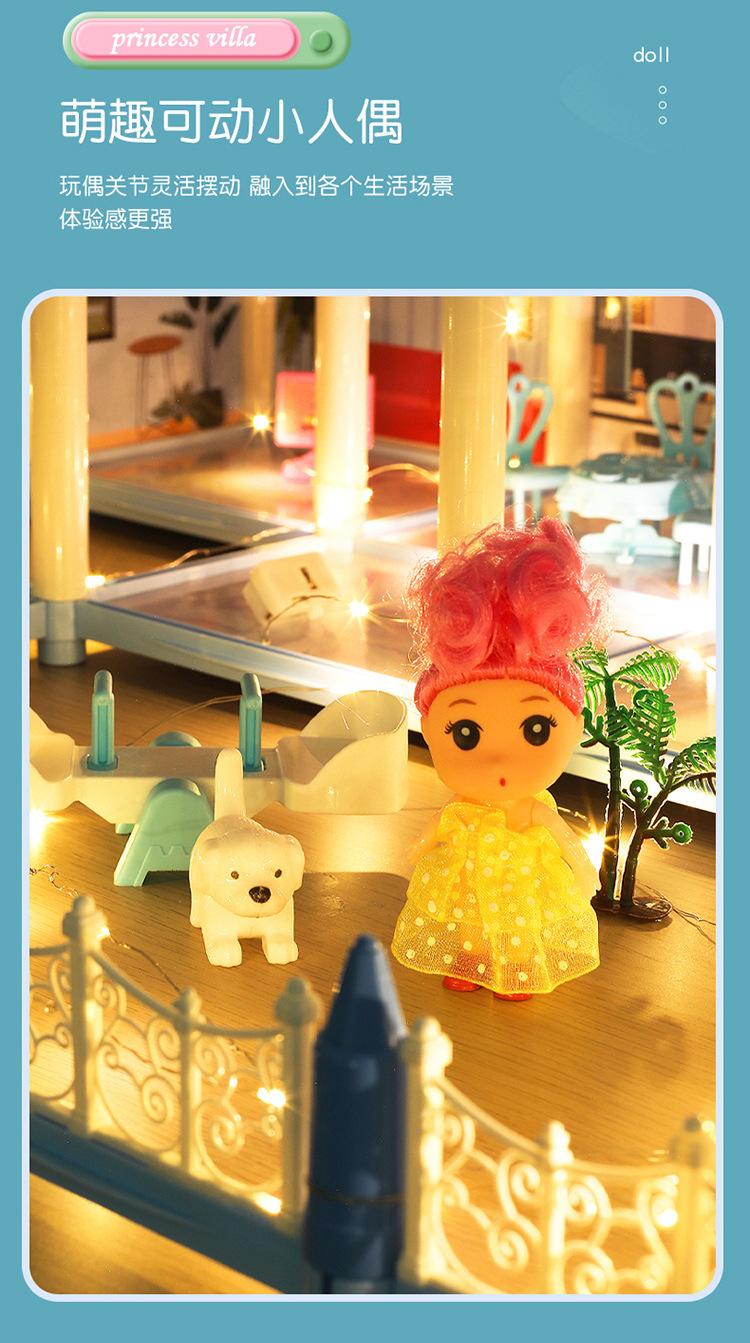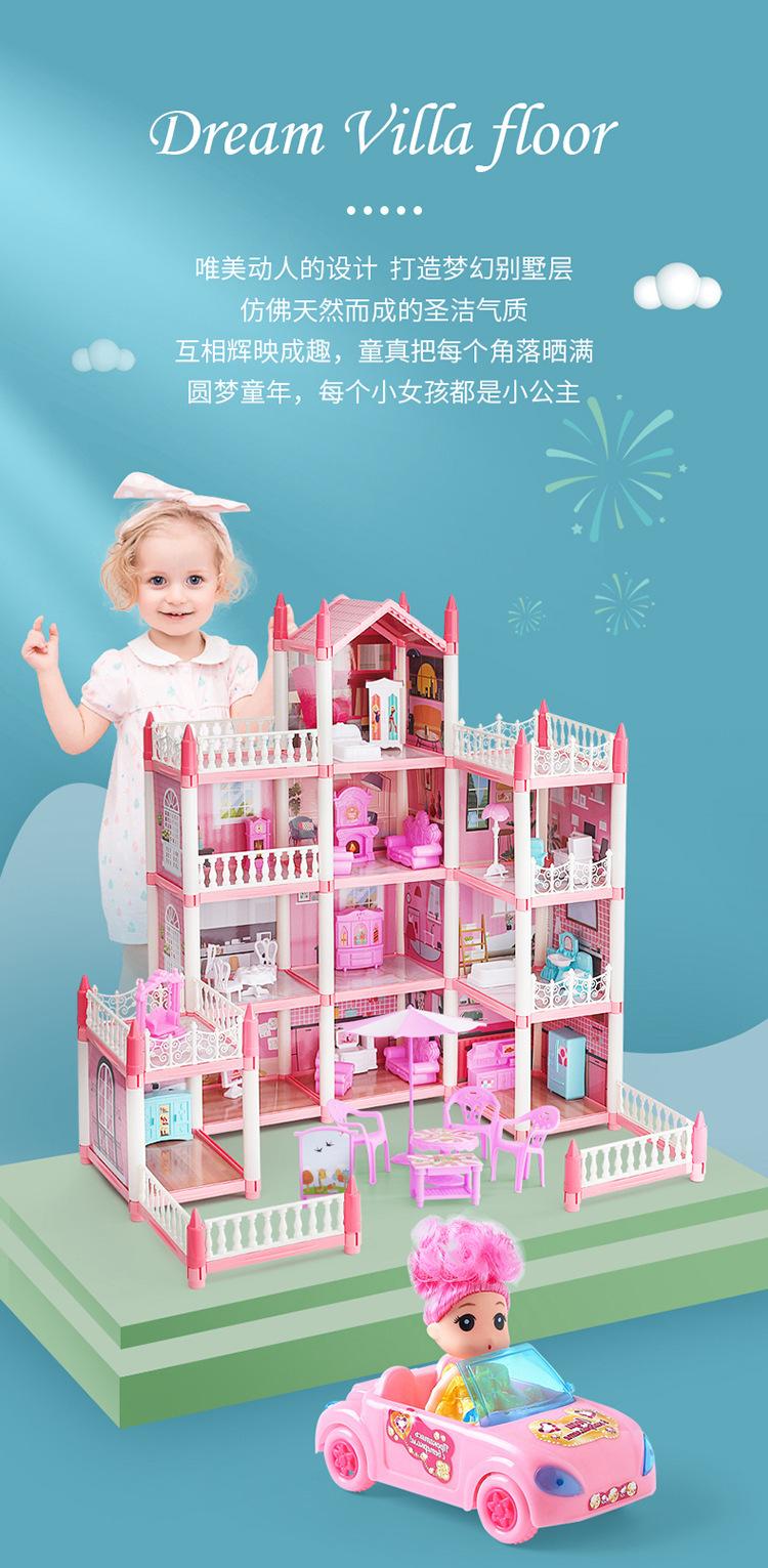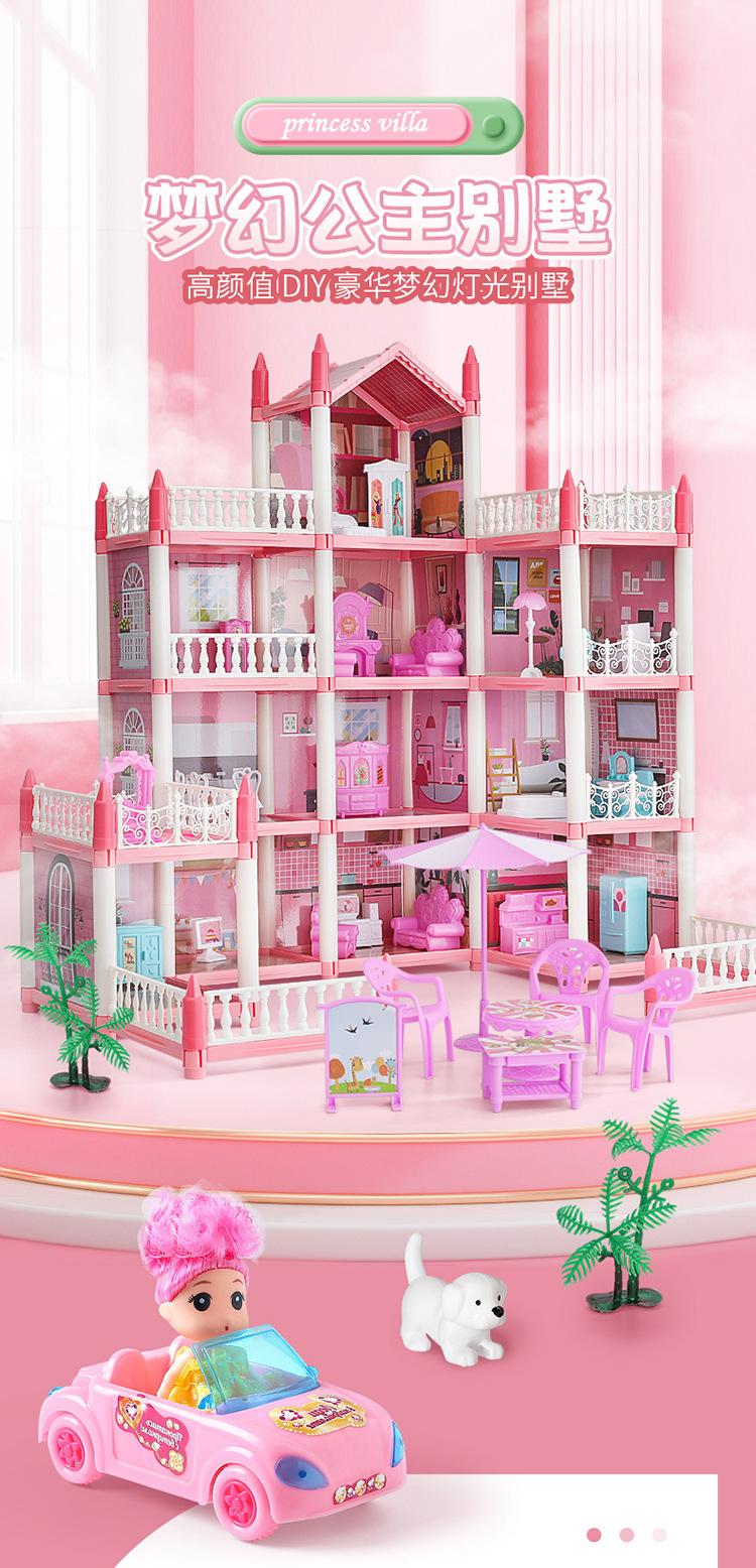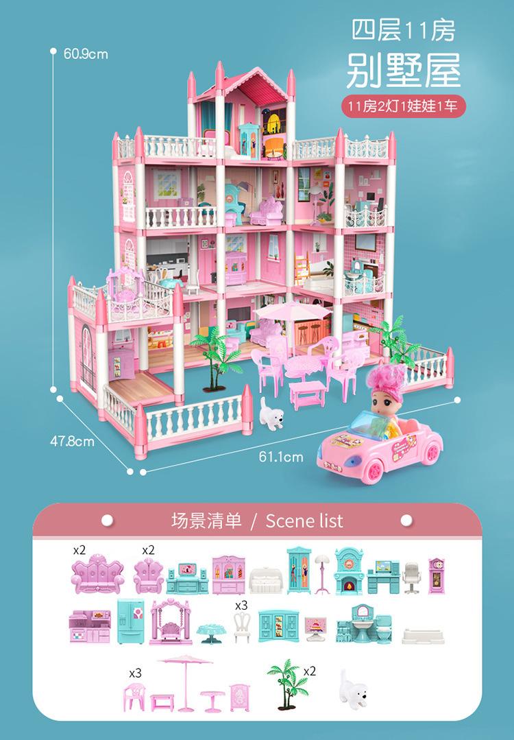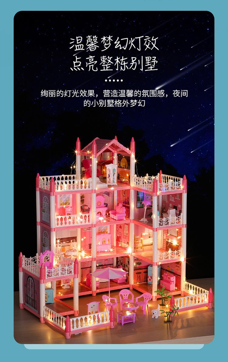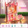 Pink 3-story 6-room +2 dolls 1 light gift box