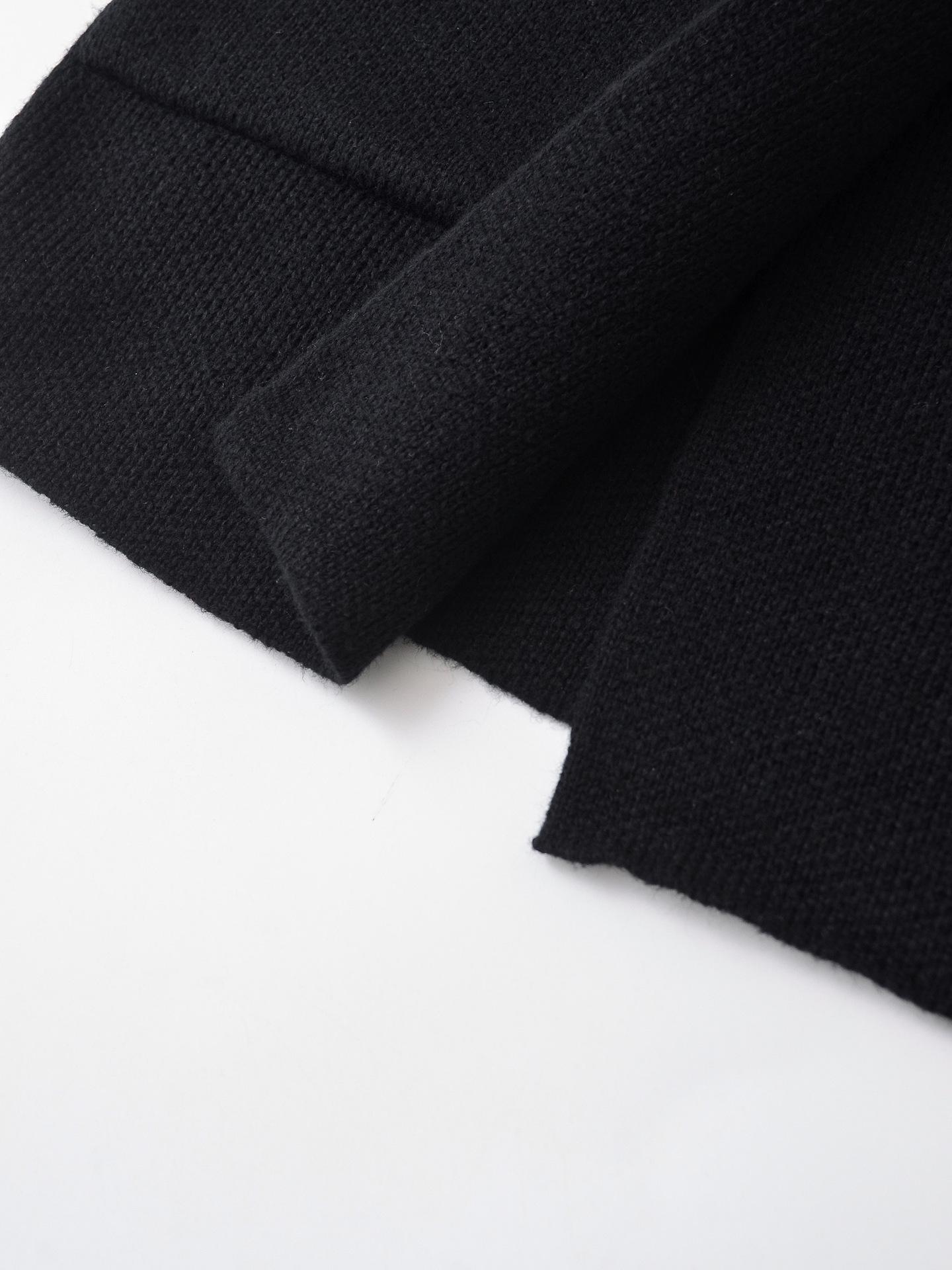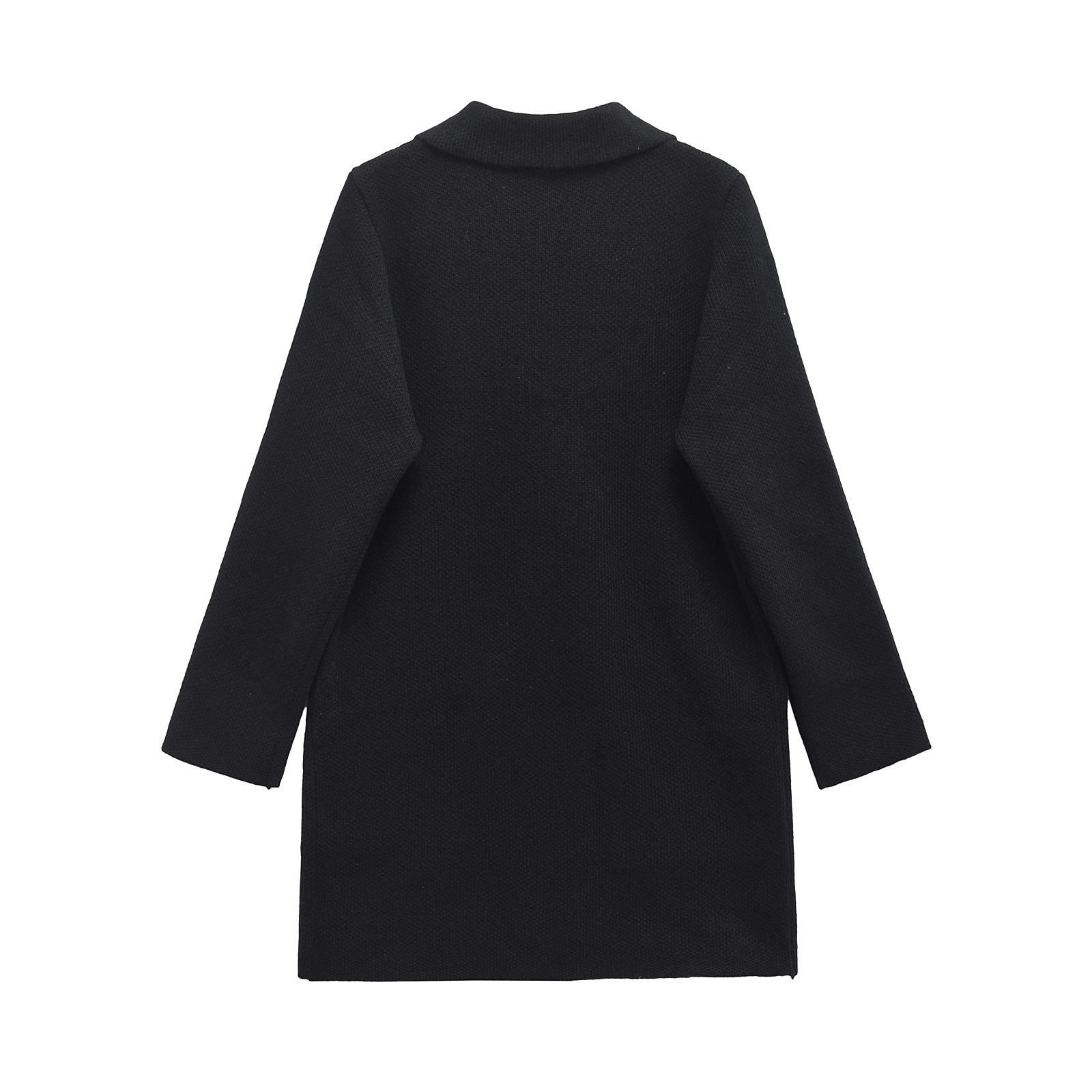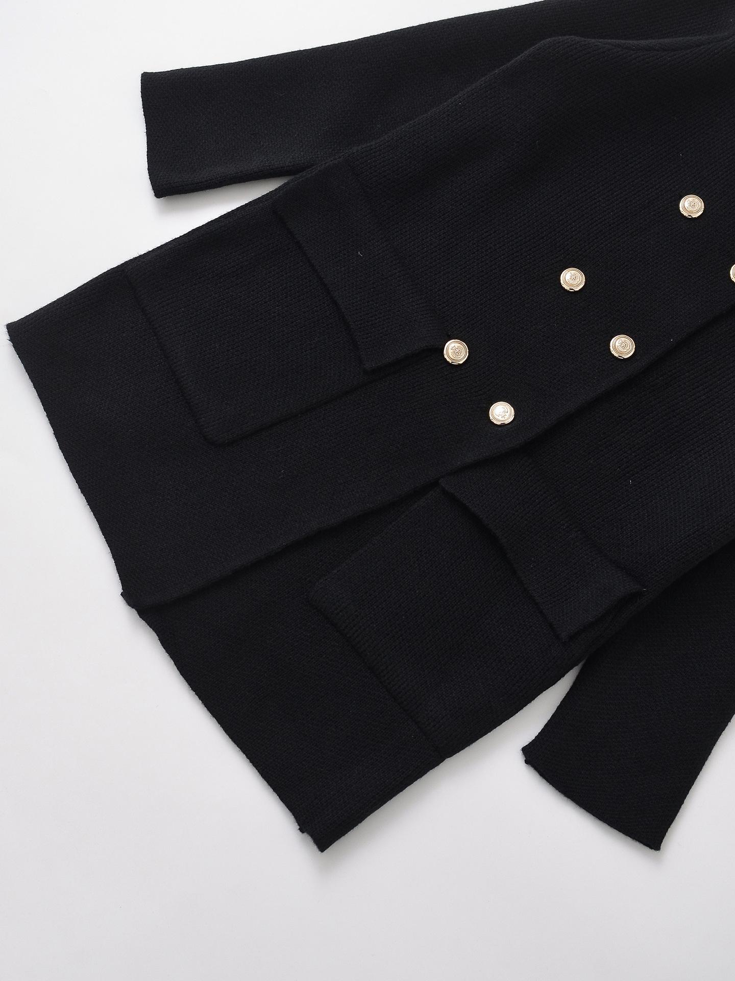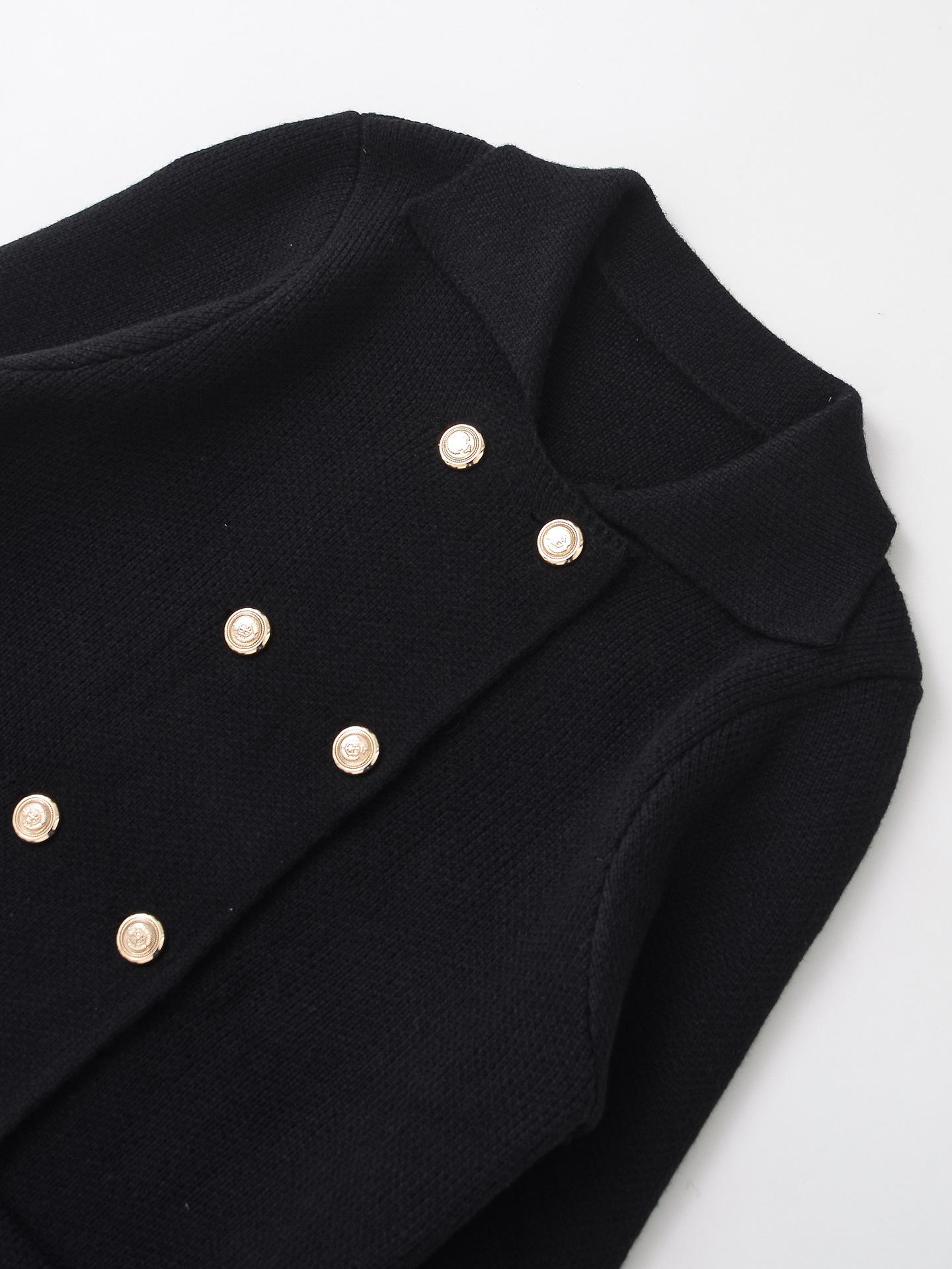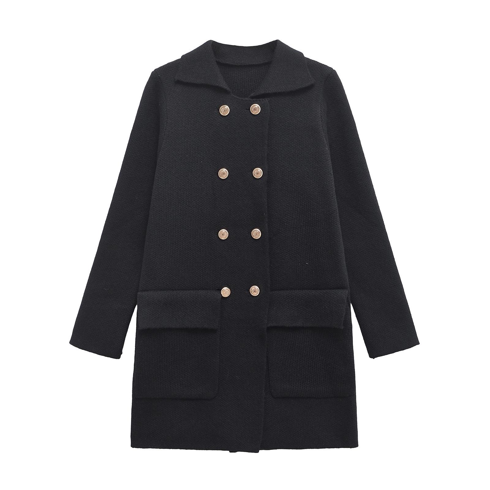 Abrigo suéter de punto negro de doble botonadura con cuello polo de invierno de largo medio para mujer, estilo europeo y americano 2024