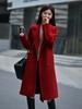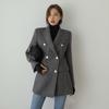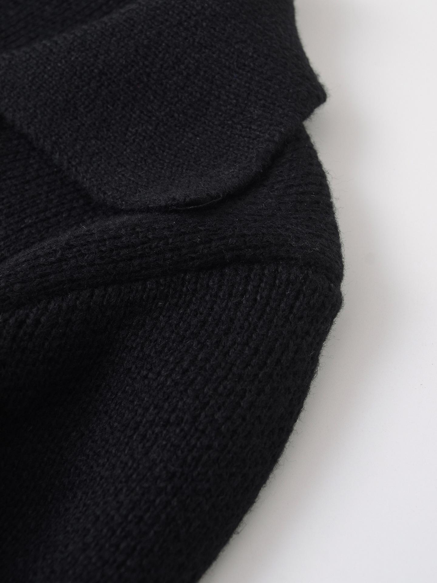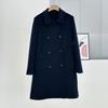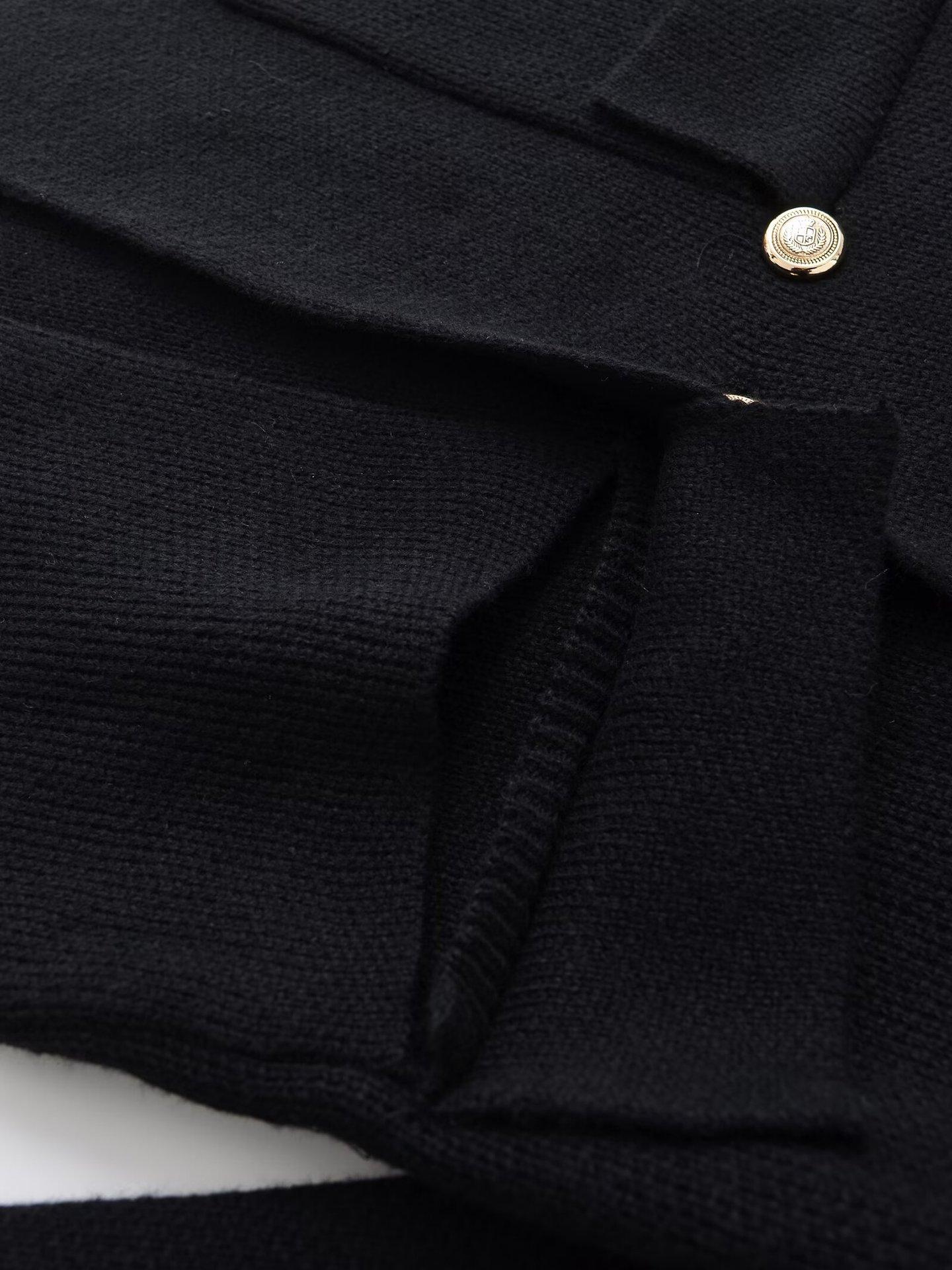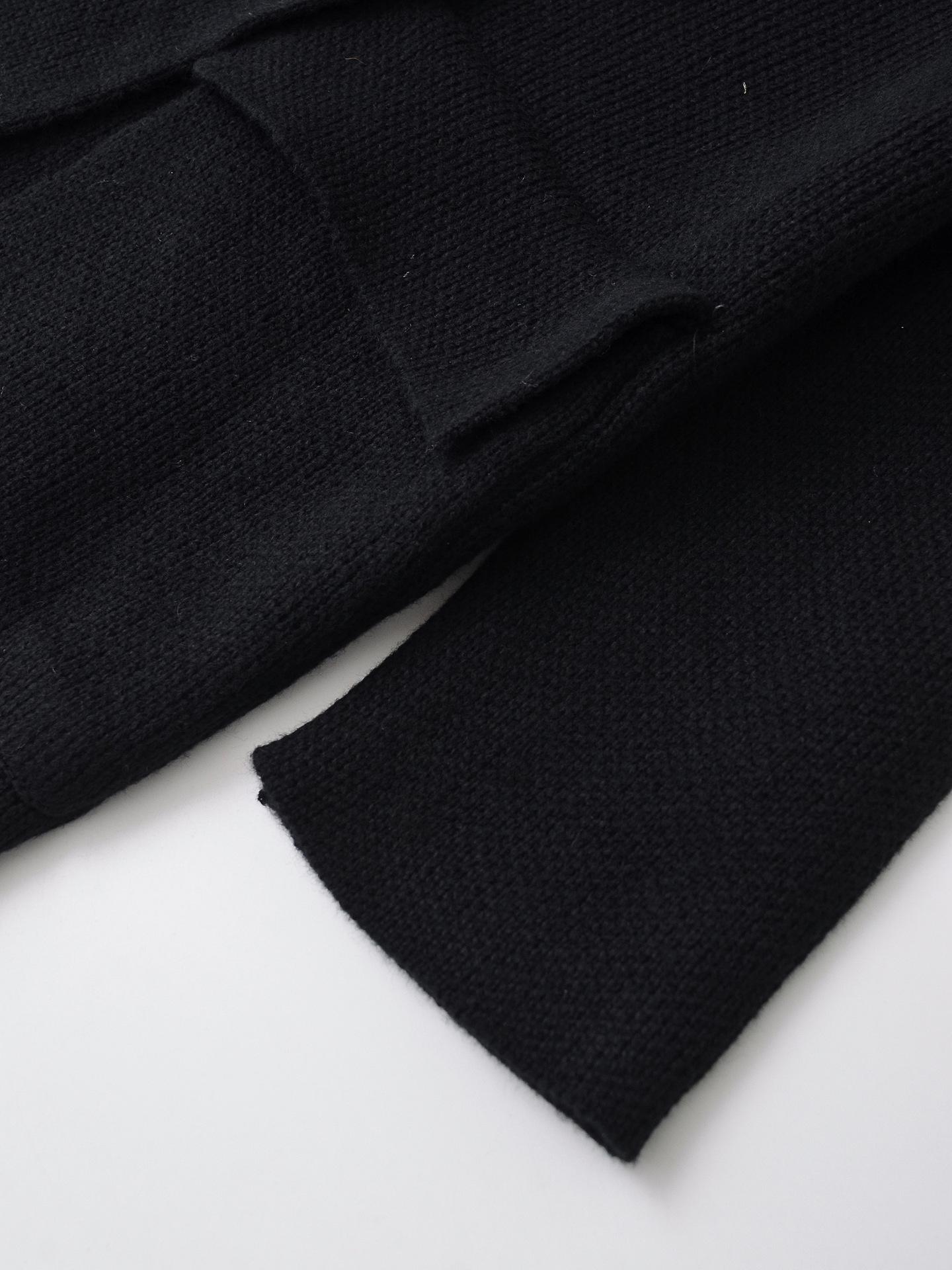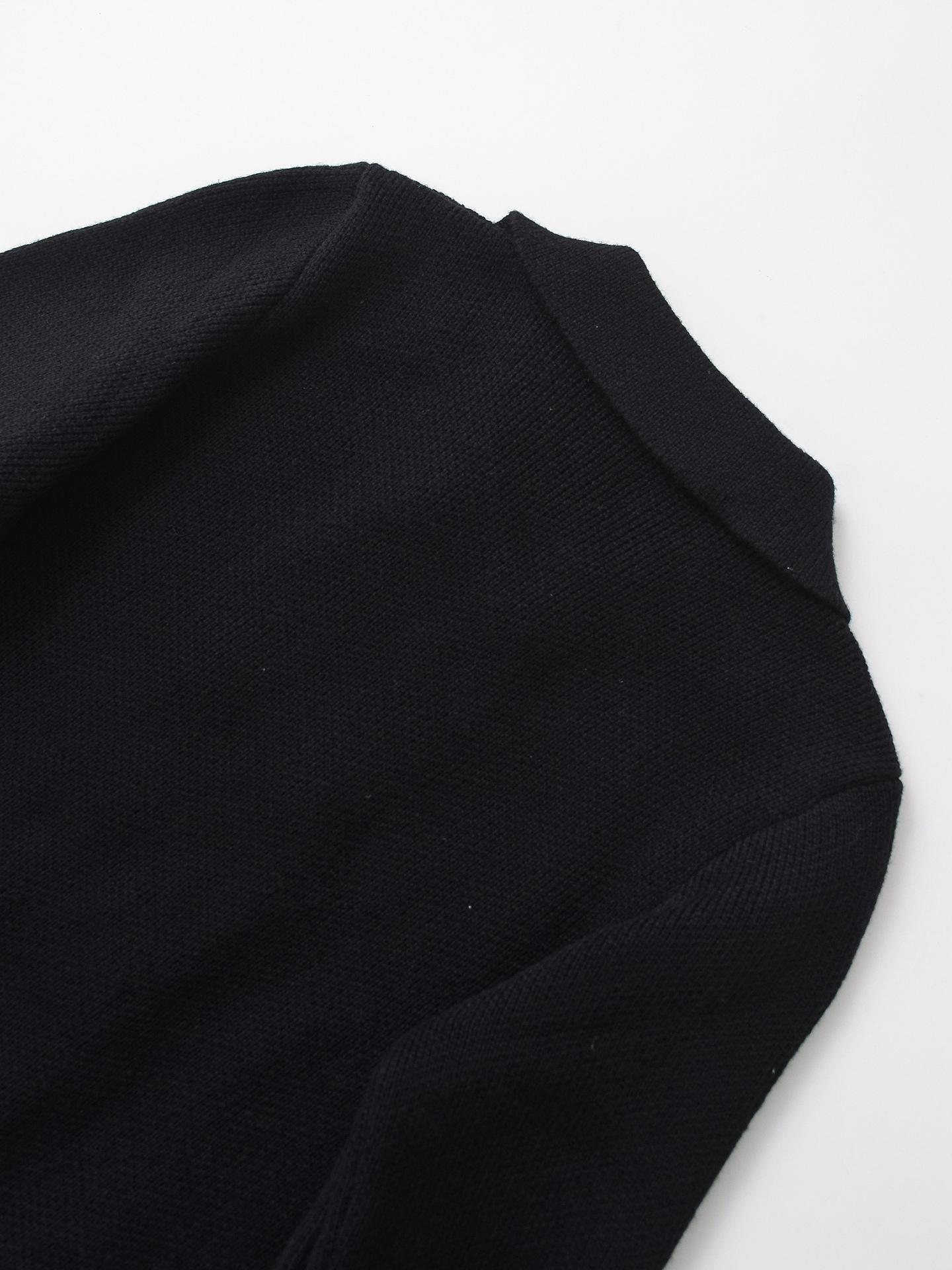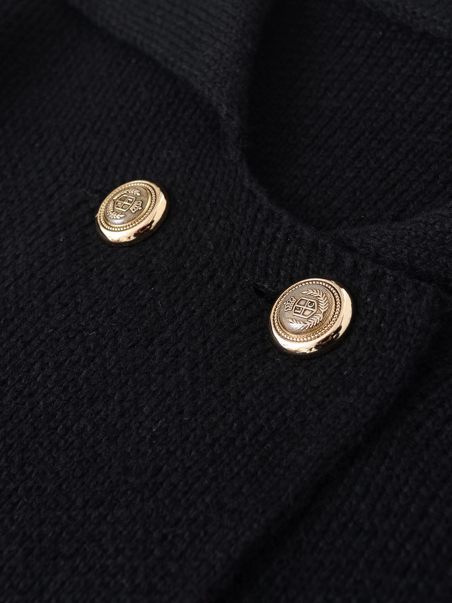 Abrigo suéter de punto negro de doble botonadura con cuello polo de invierno de largo medio para mujer, estilo europeo y americano 2024