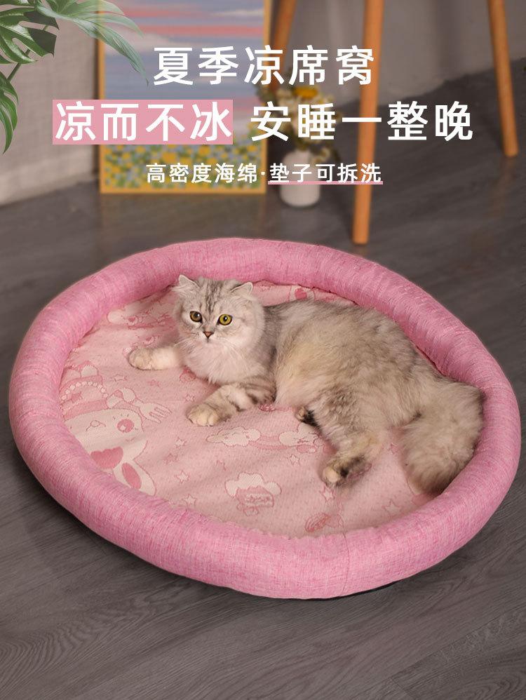Nido de gato de verano, tapete de verano extraíble y lavable, tapete de verano para cuatro estaciones, suministros universales para gatos, tapete refrescante de verano para gatos, nido para mascotas de interior