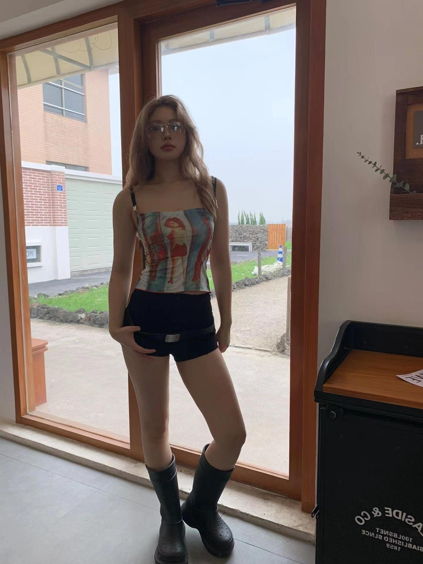 Camisola con estampado de chica sexy estilo americano vintage para mujer, top corto ajustado de verano