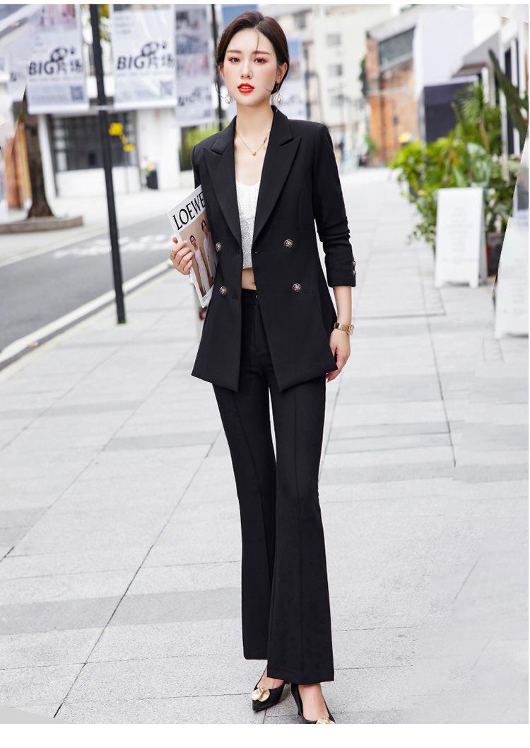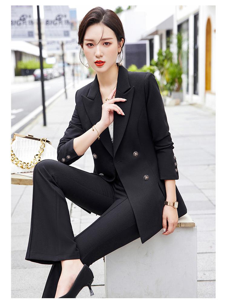 Traje profesional negro para mujer, otoño e invierno, vestido de entrevista de alta gama, ropa de trabajo con temperamento, chaqueta y pantalones ligeros.