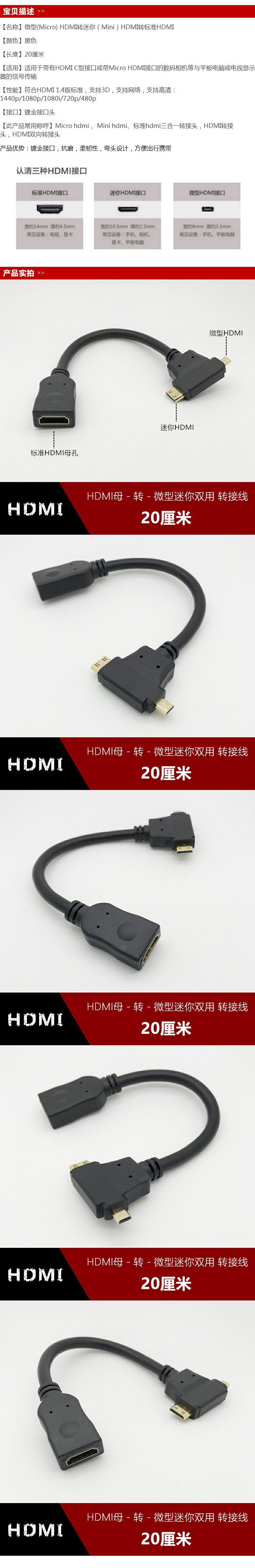 Cable adaptador mini/micro HDMI a HDMI hembra, dos en uno, en forma de T, para tableta, cámara, TV, HD