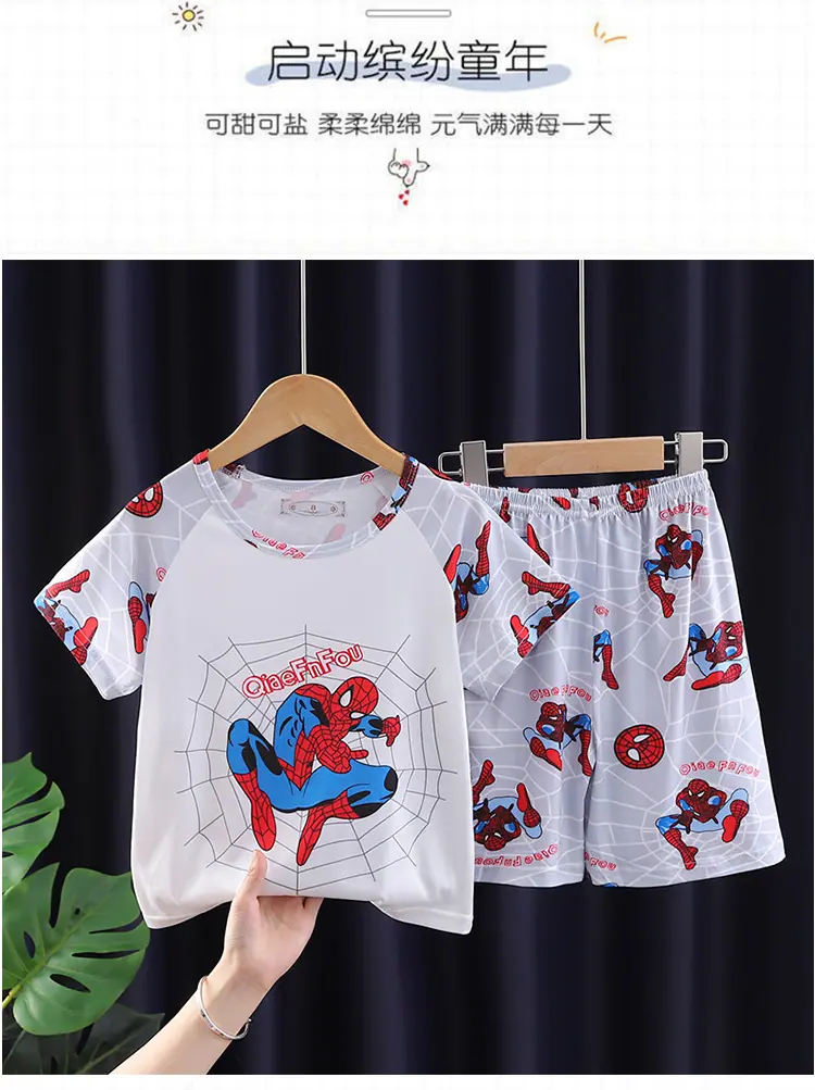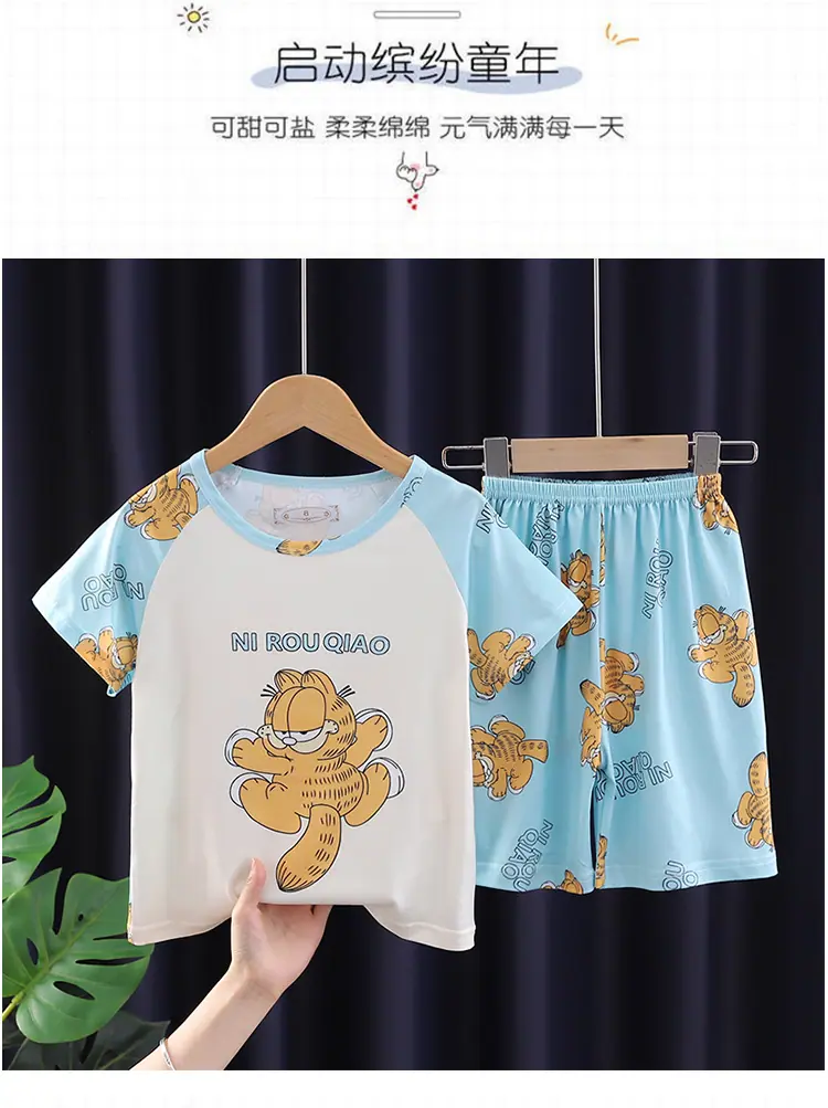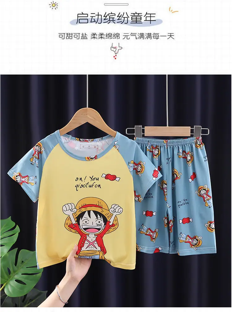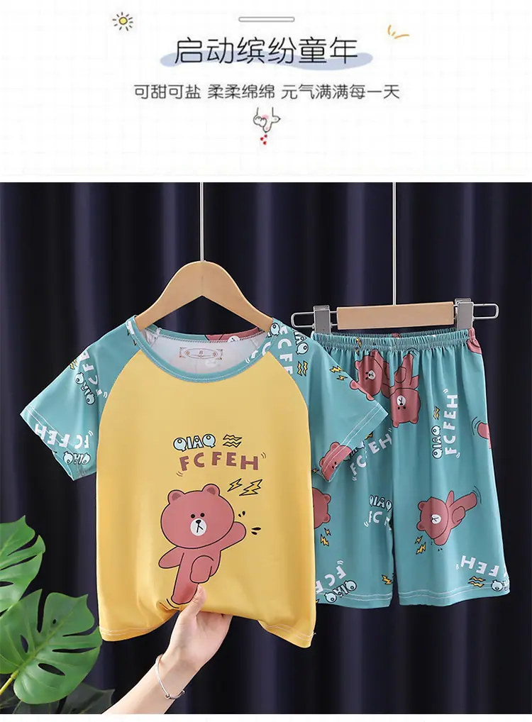 Pijamas para niños de verano de manga corta delgados traje de ropa para el hogar para niños ropa de aire acondicionado para verano para exteriores
