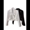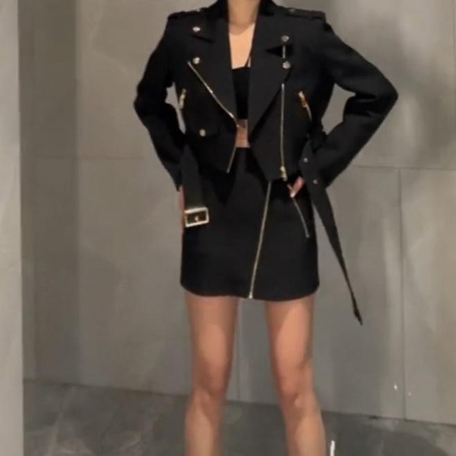 Chaqueta corta combinable con todo, nueva llegada, primavera 2025, abrigo para mujer, estilo coreano, moda, herrajes, cremallera, cuello de traje, ropa de motociclista, tendencia