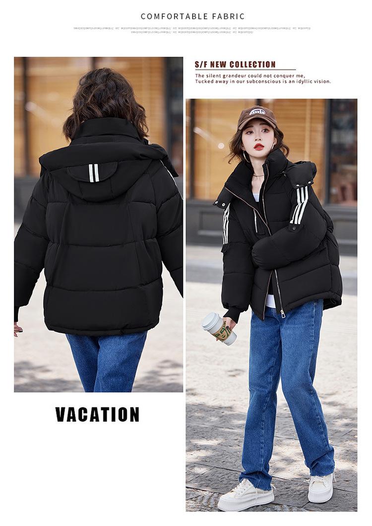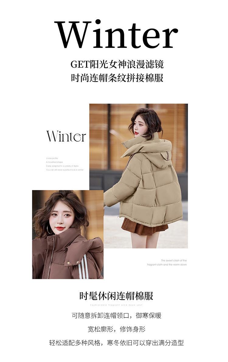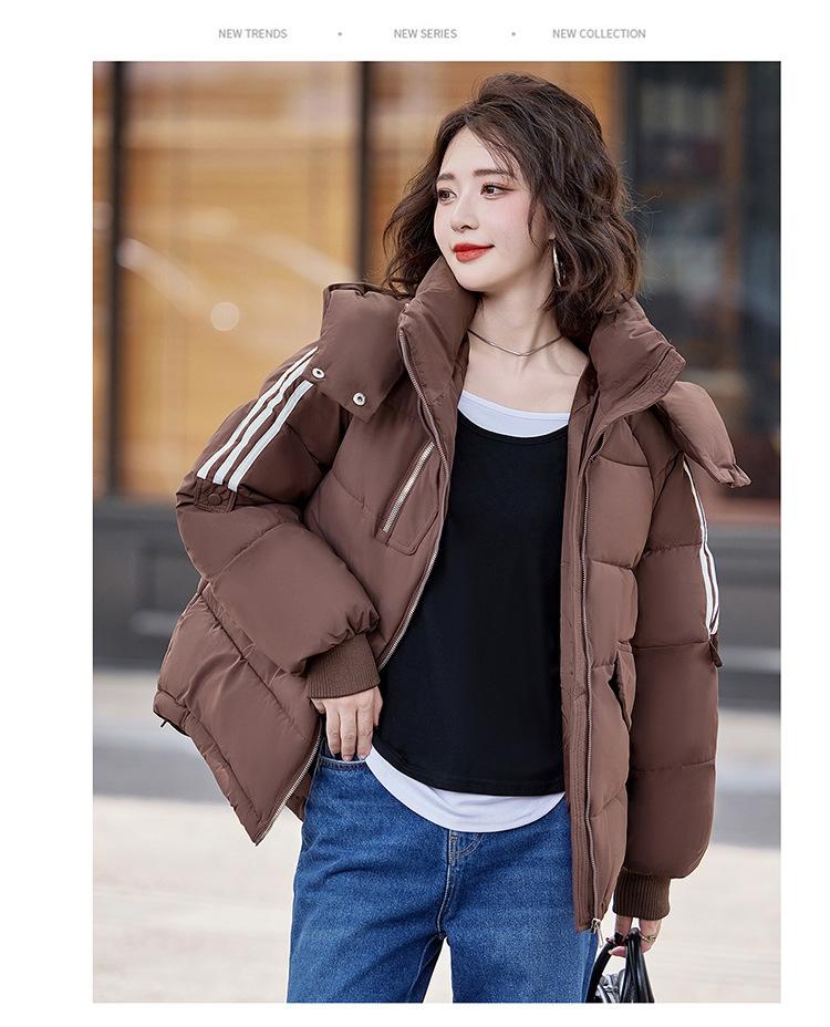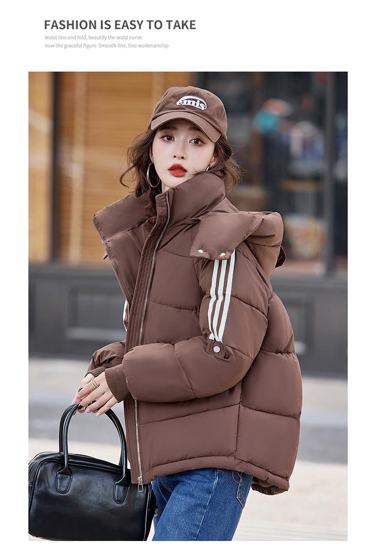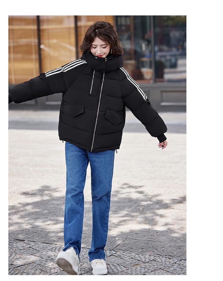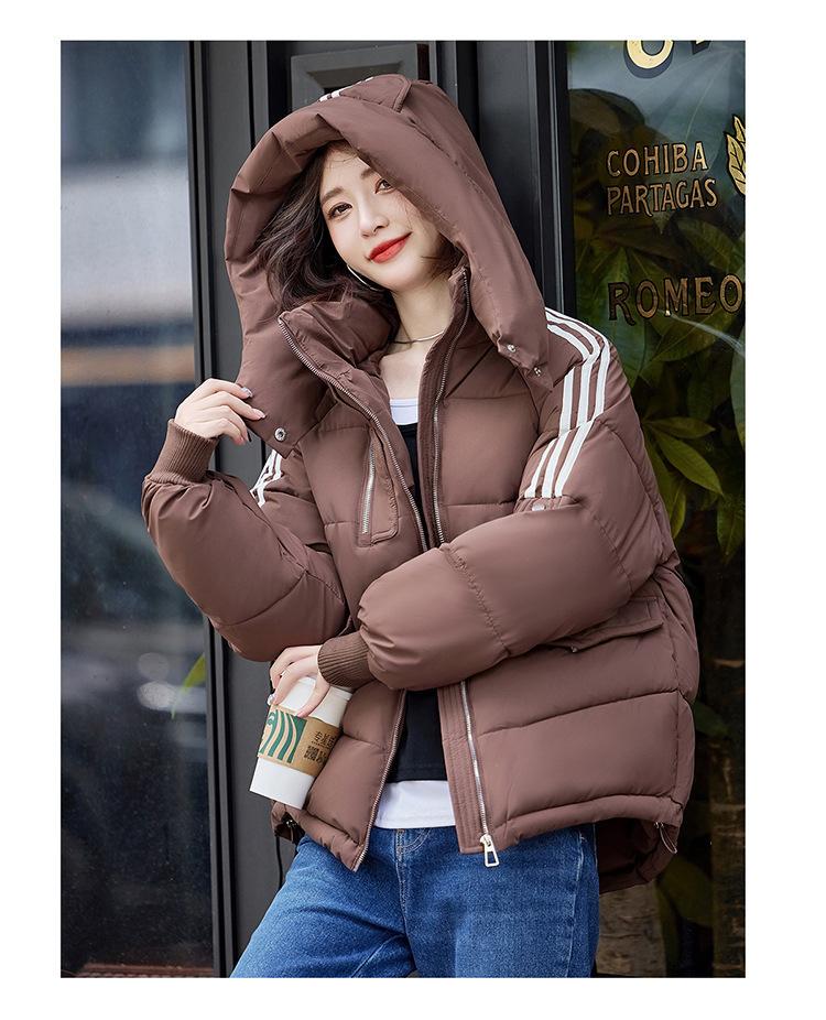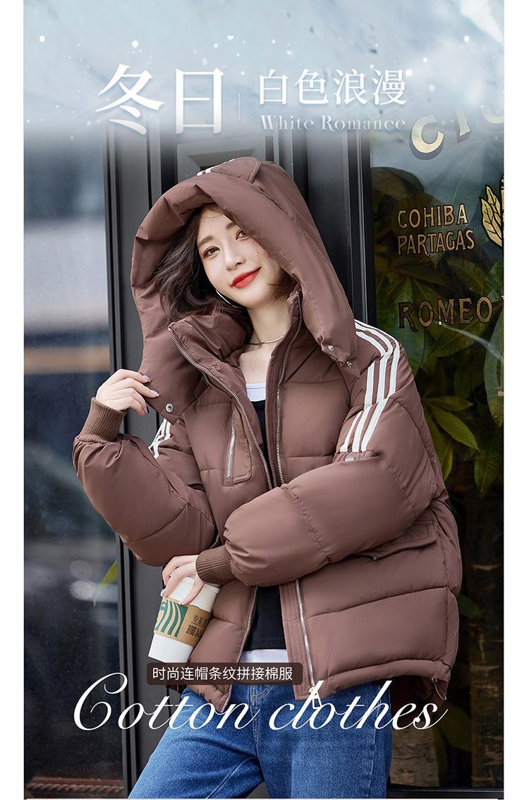 Abrigo acolchado de algodón con contraste a rayas para mujer, abrigo corto grueso e informal de invierno con capucha, 2024