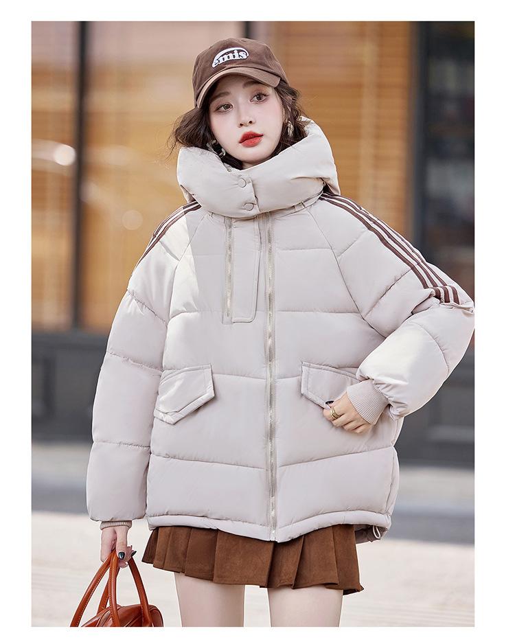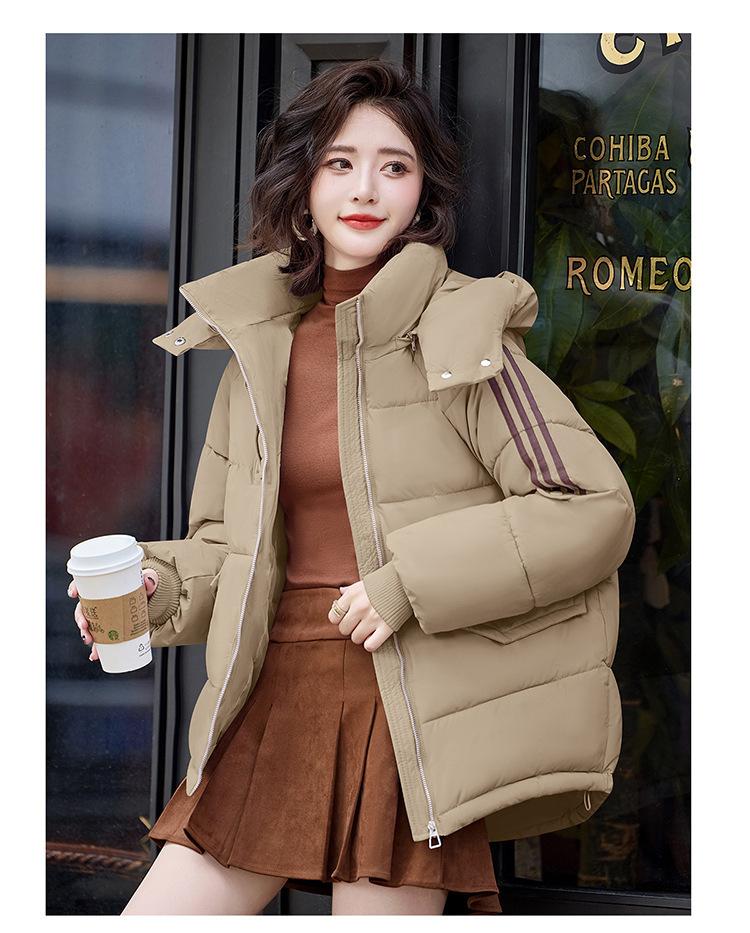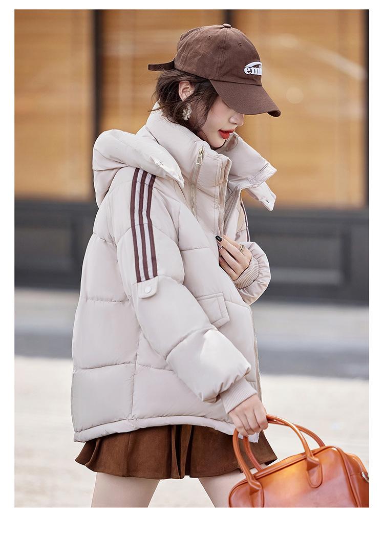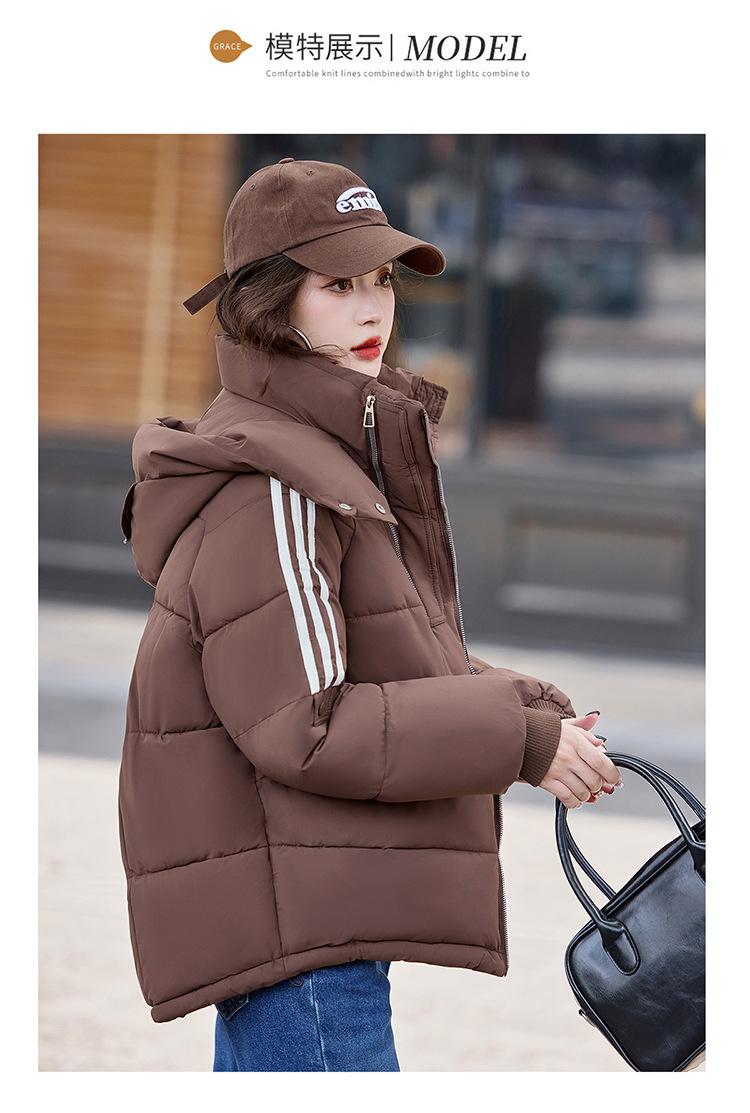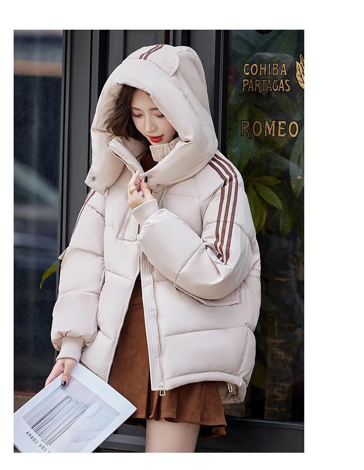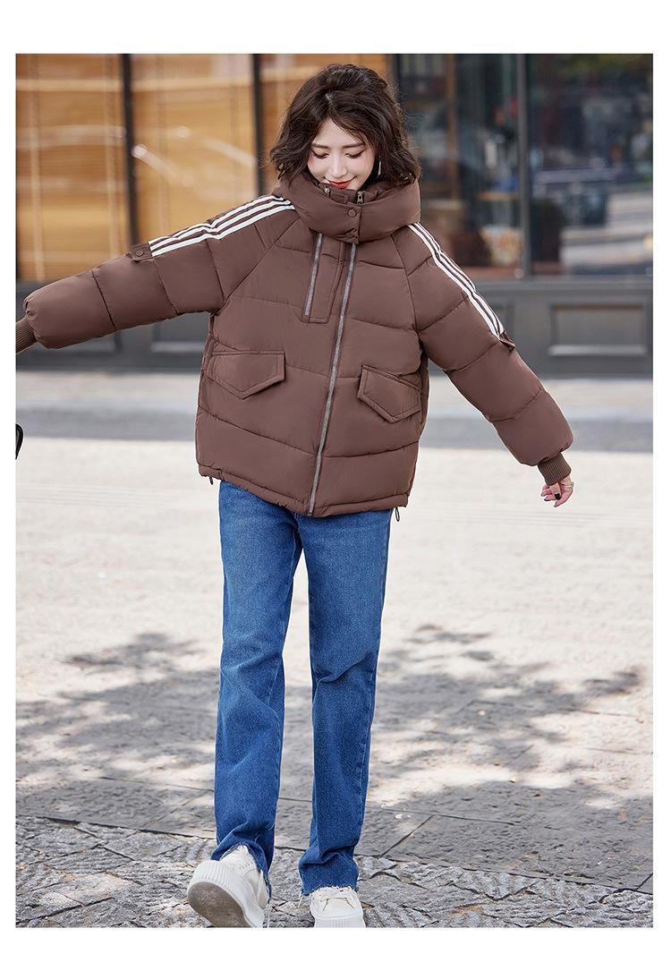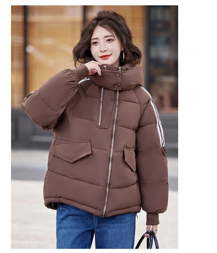 Abrigo acolchado de algodón con contraste a rayas para mujer, abrigo corto grueso e informal de invierno con capucha, 2024