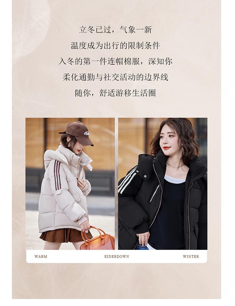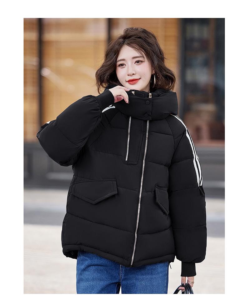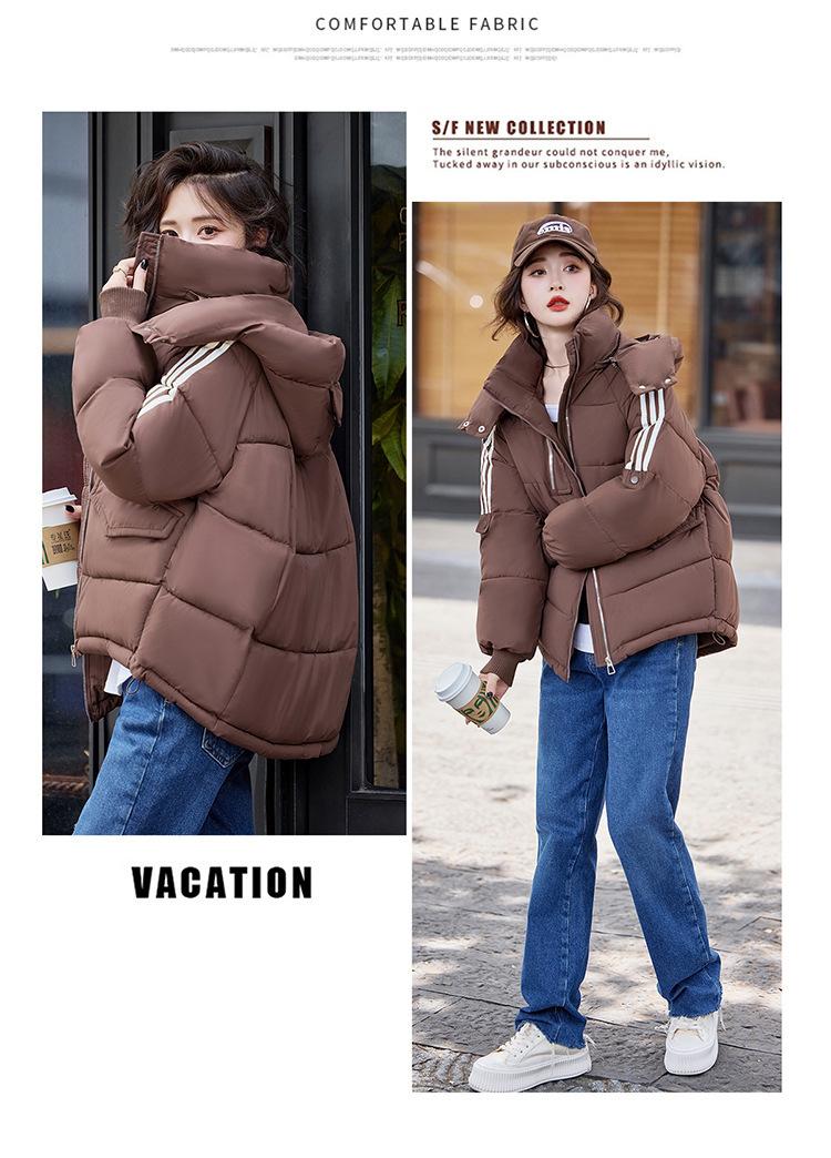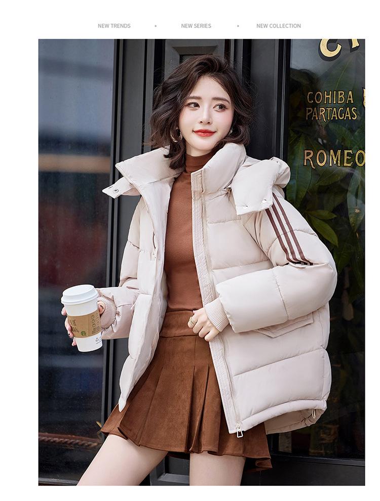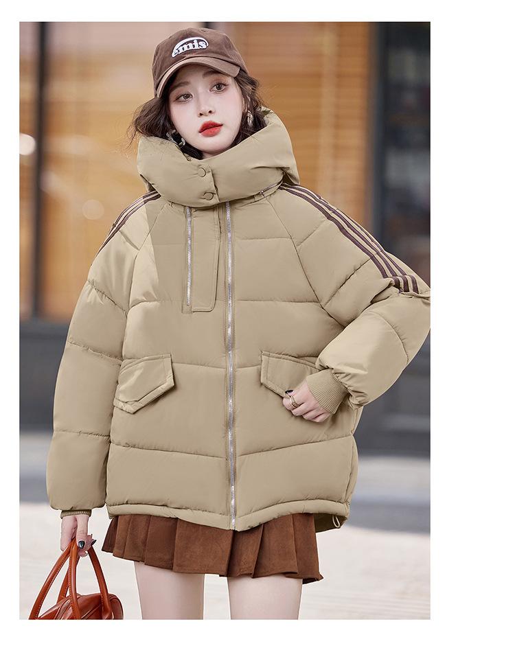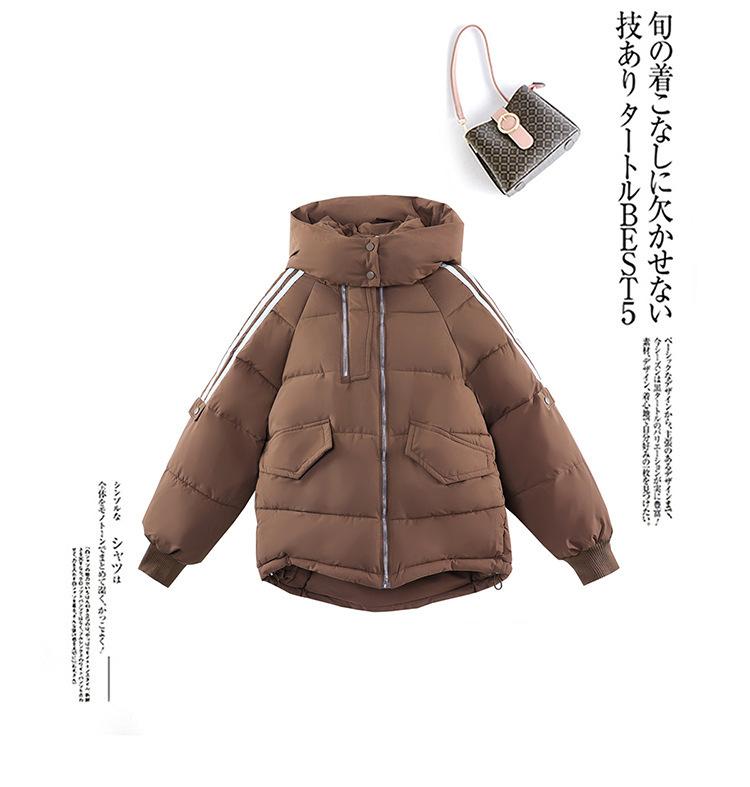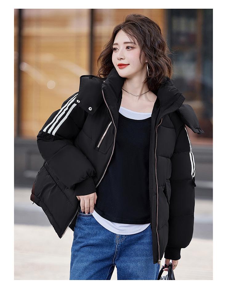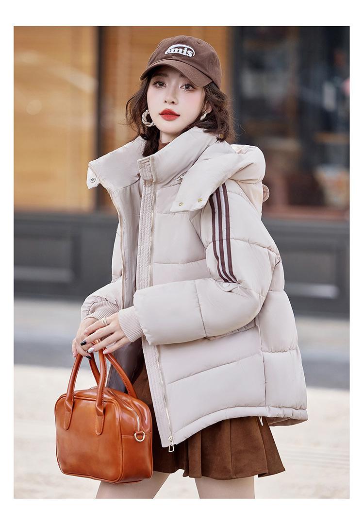 Abrigo acolchado de algodón con contraste a rayas para mujer, abrigo corto grueso e informal de invierno con capucha, 2024