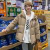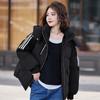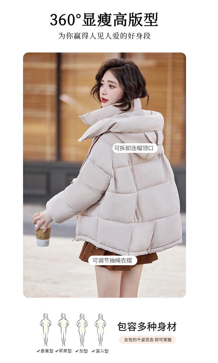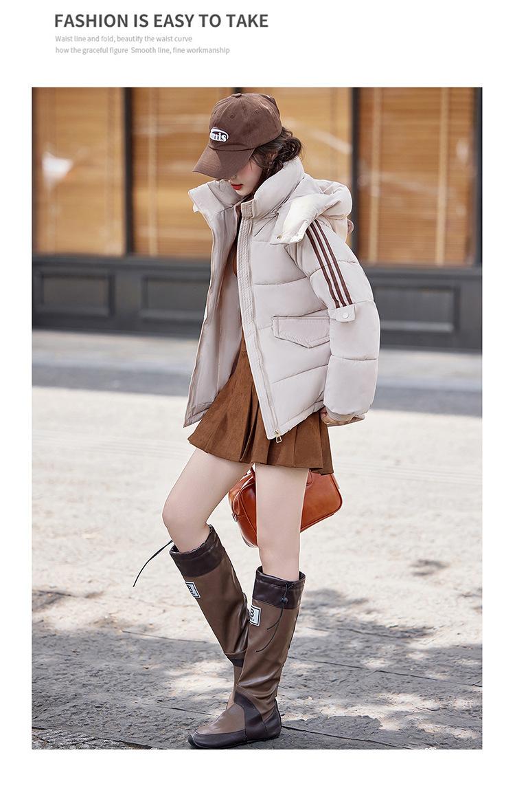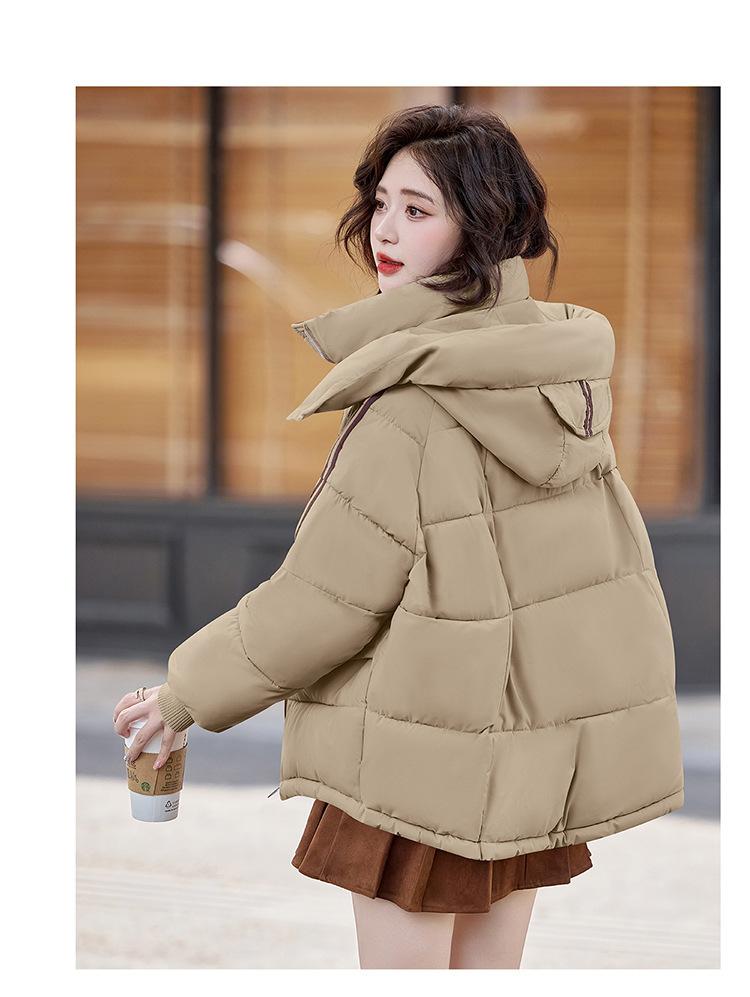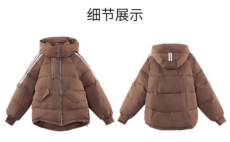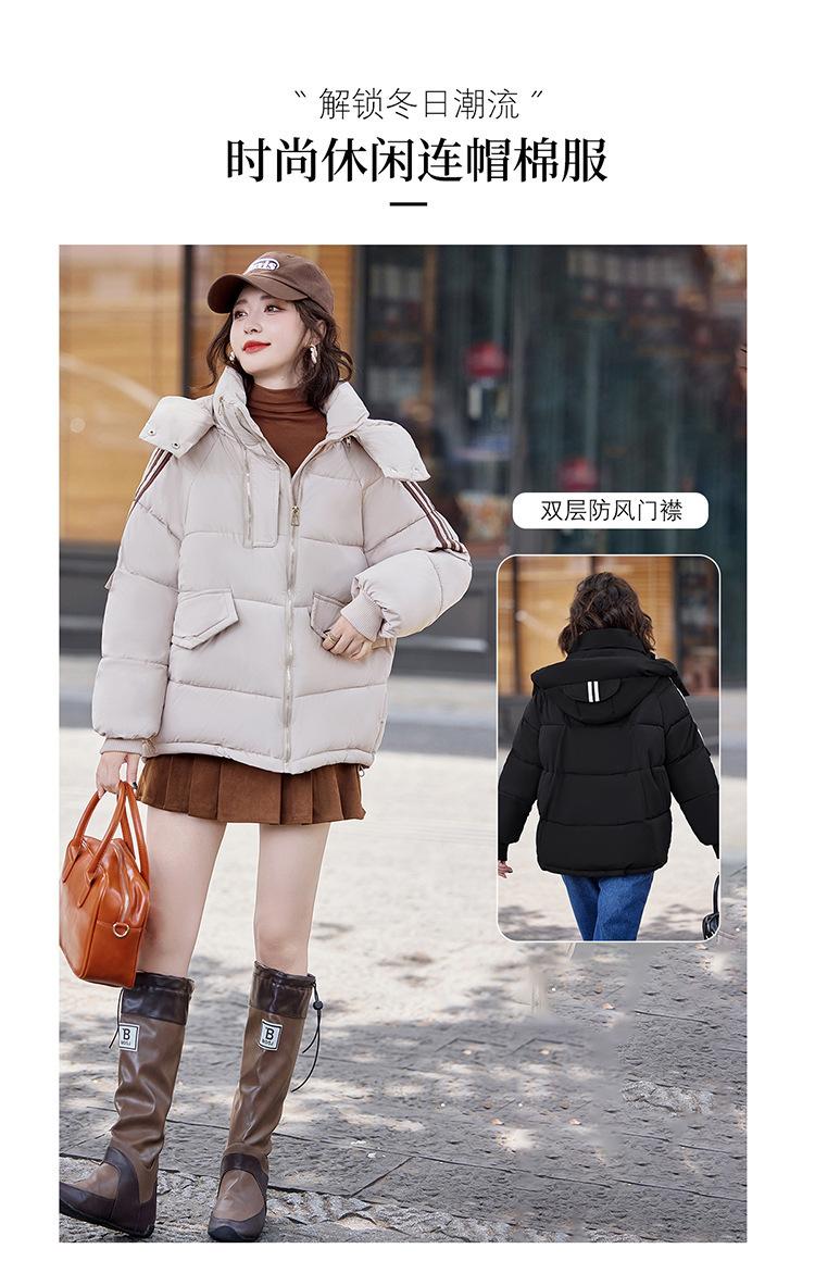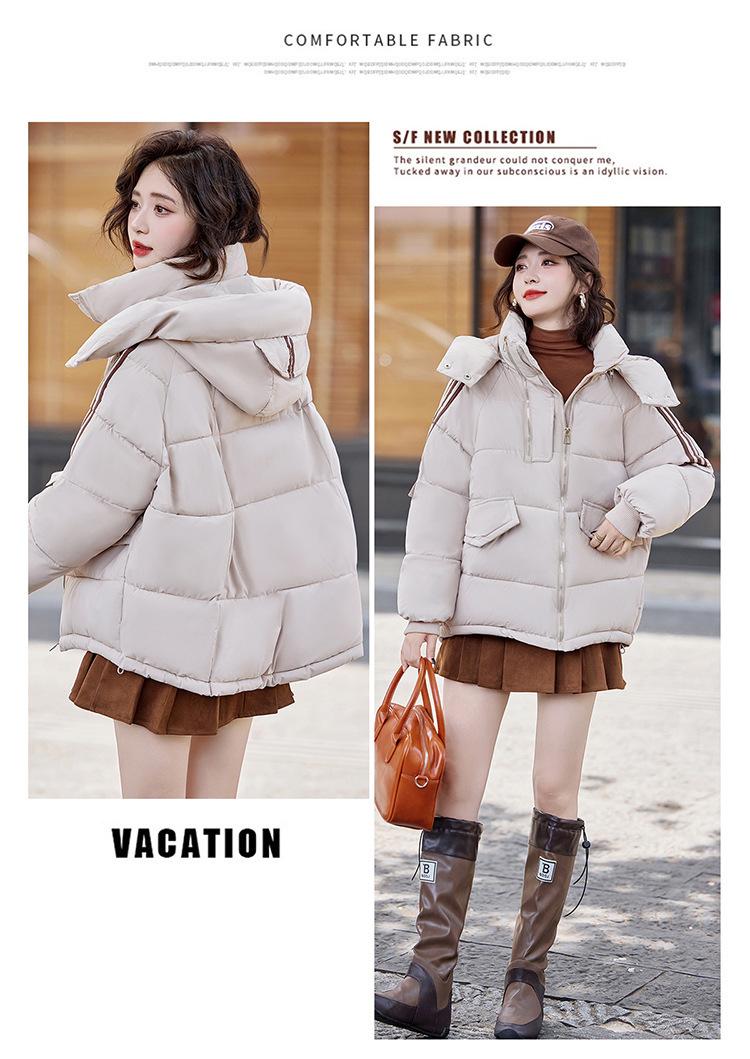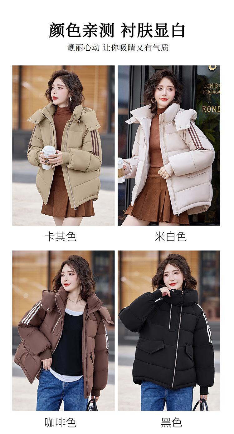 Abrigo acolchado de algodón con contraste a rayas para mujer, abrigo corto grueso e informal de invierno con capucha, 2024