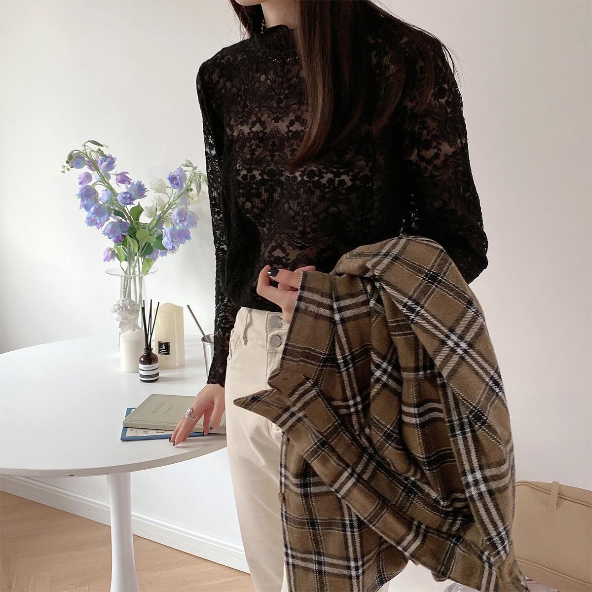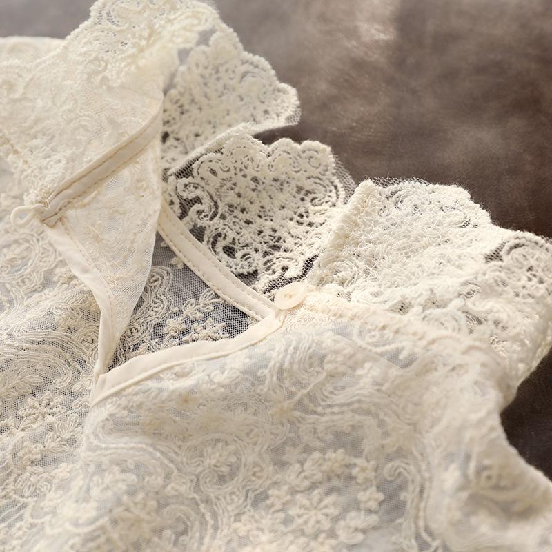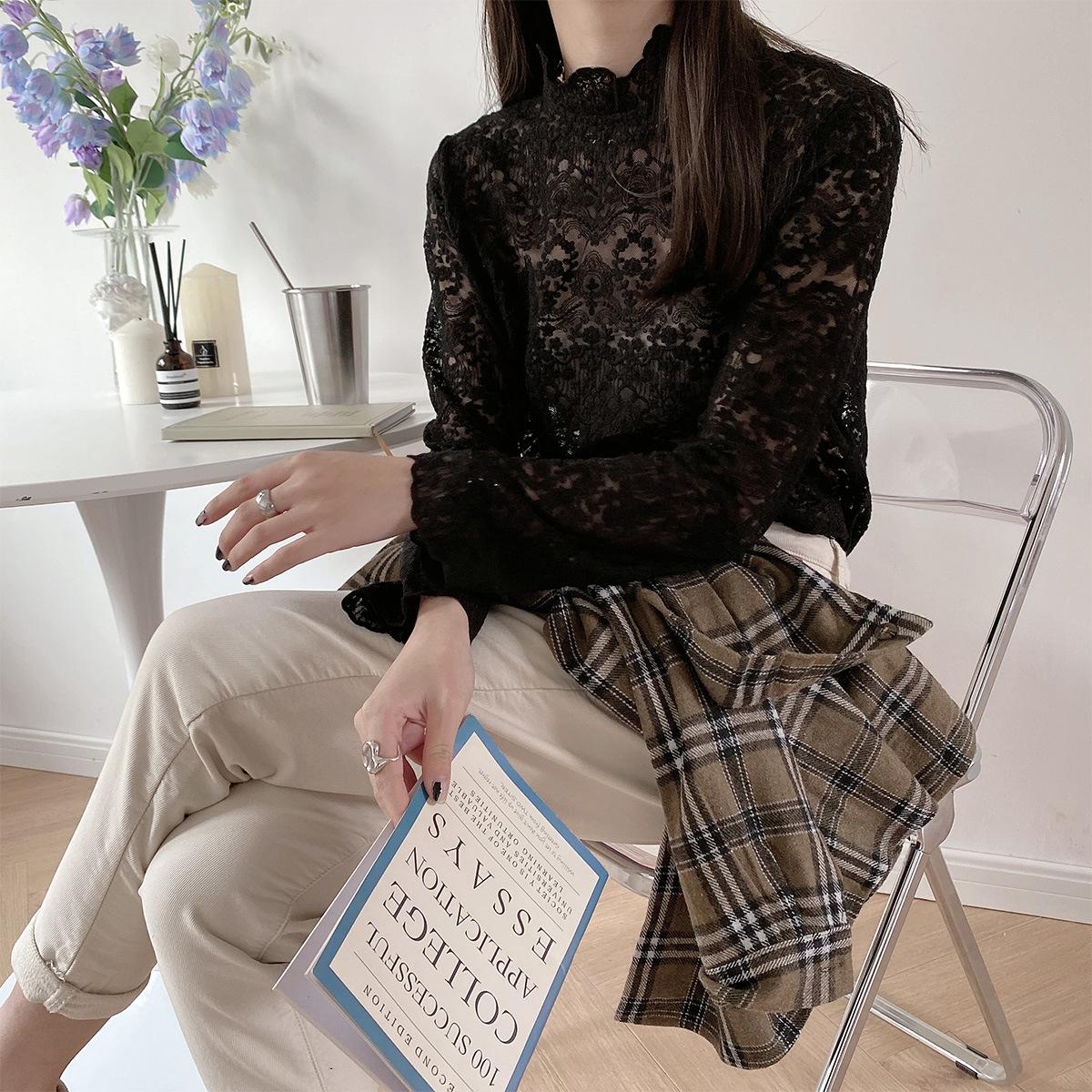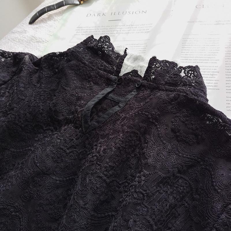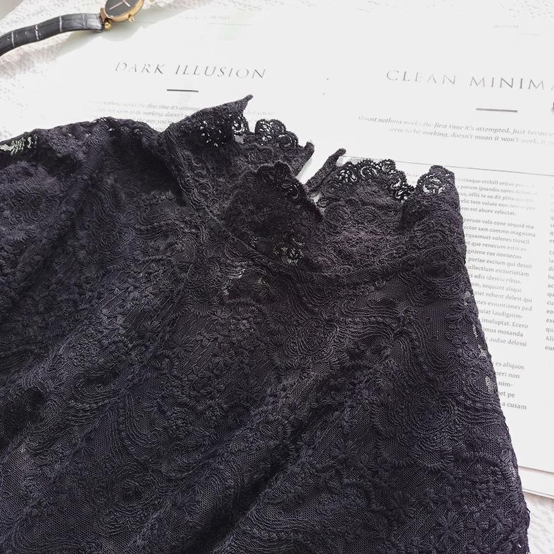 Camisa de encaje para mujer, cuello alto medio, bordado, interior hueco, estilo occidental, malla de hadas, 940188