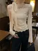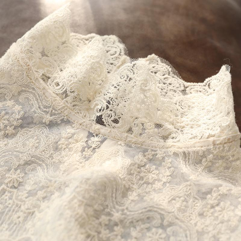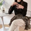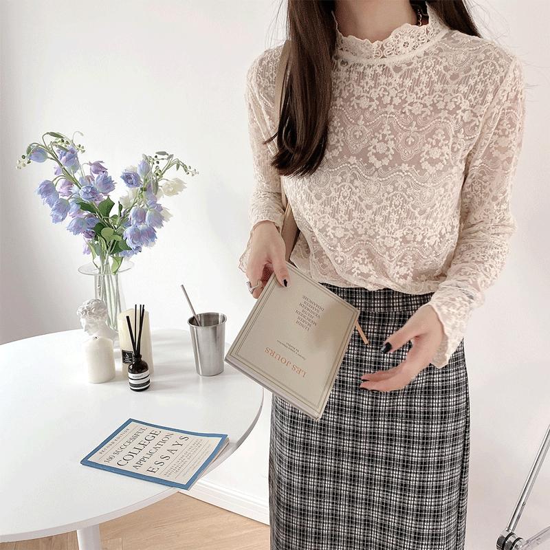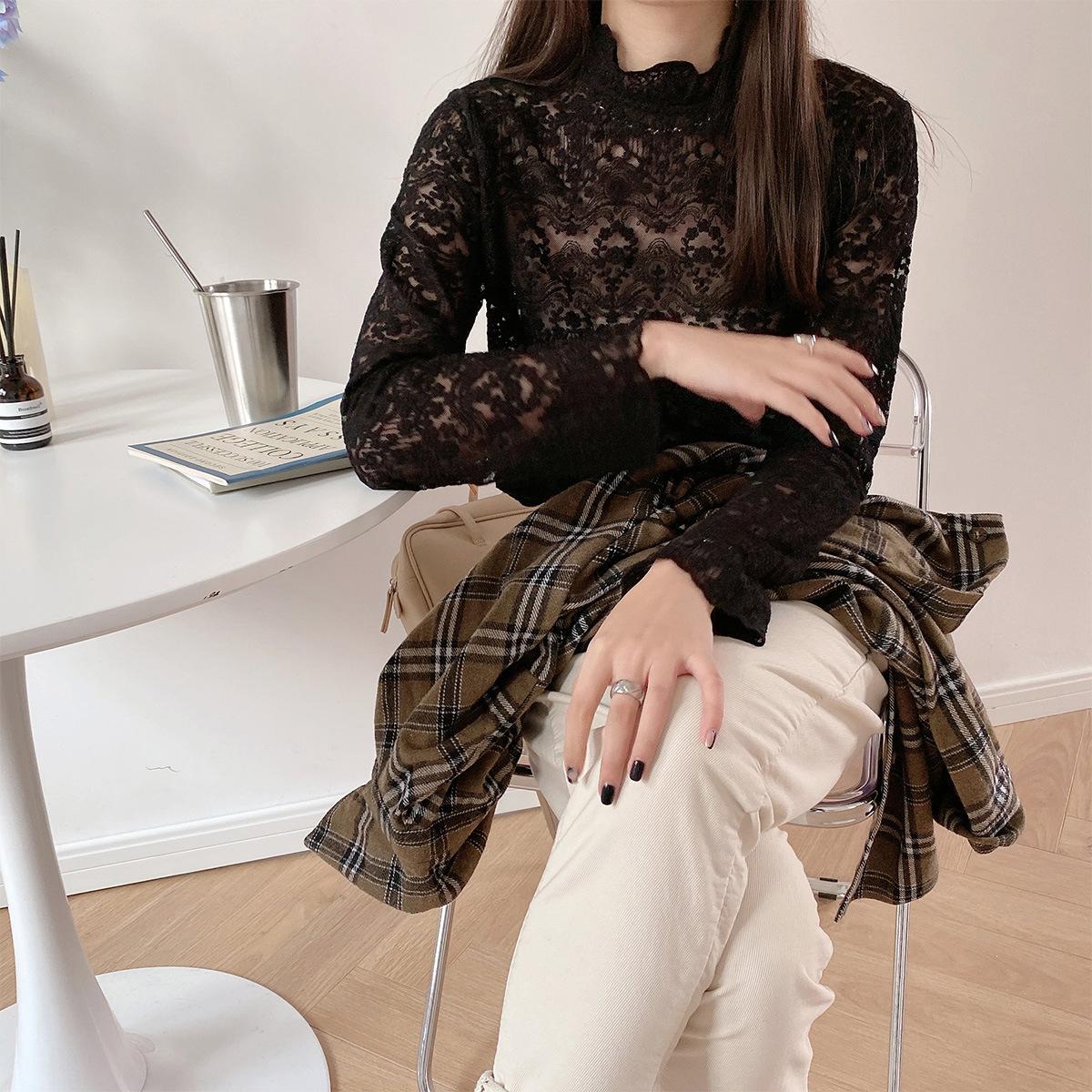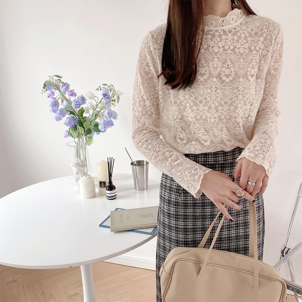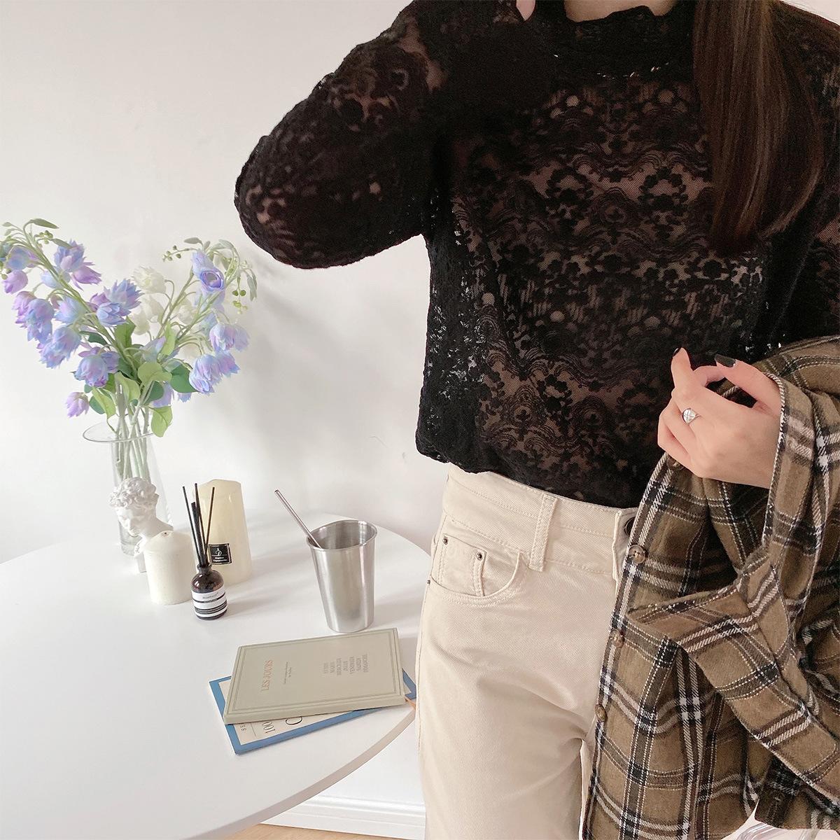 Camisa de encaje para mujer, cuello alto medio, bordado, interior hueco, estilo occidental, malla de hadas, 940188