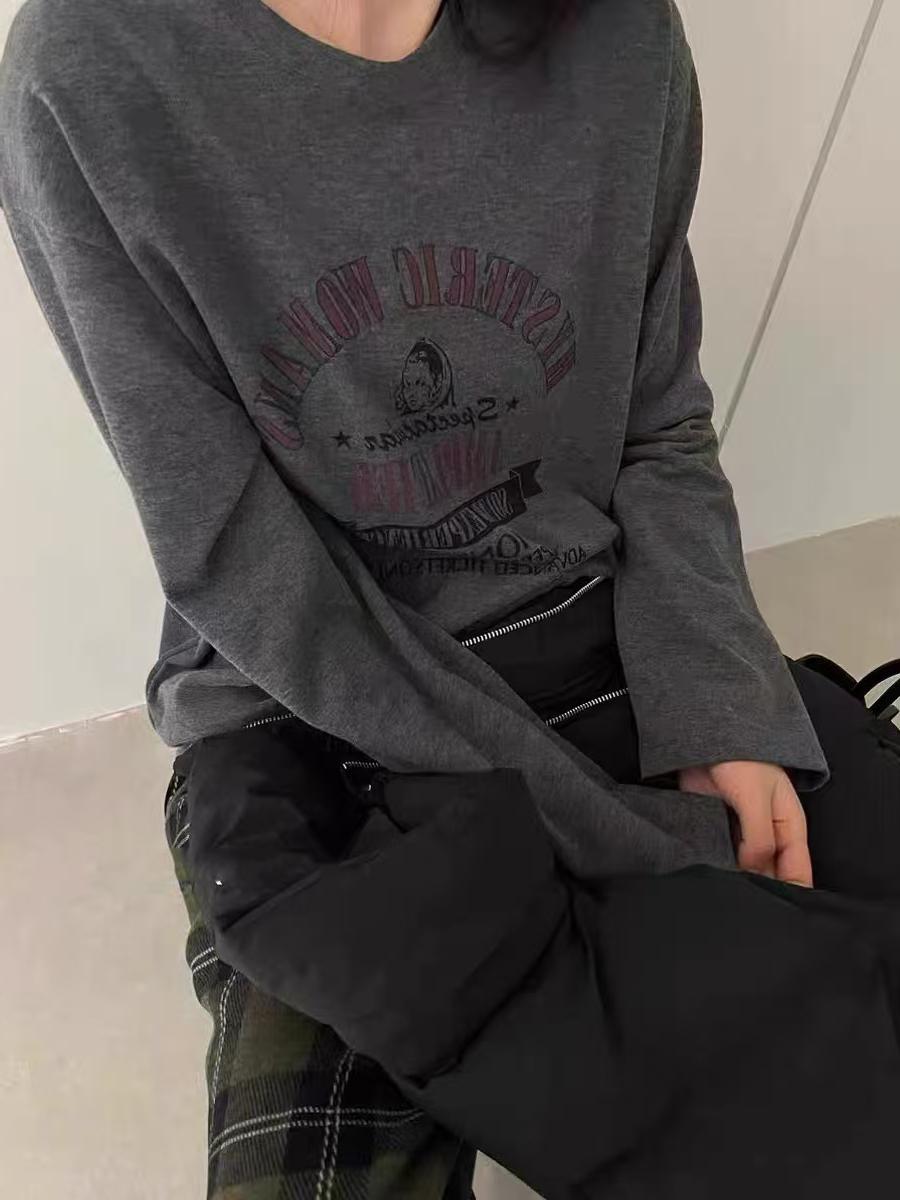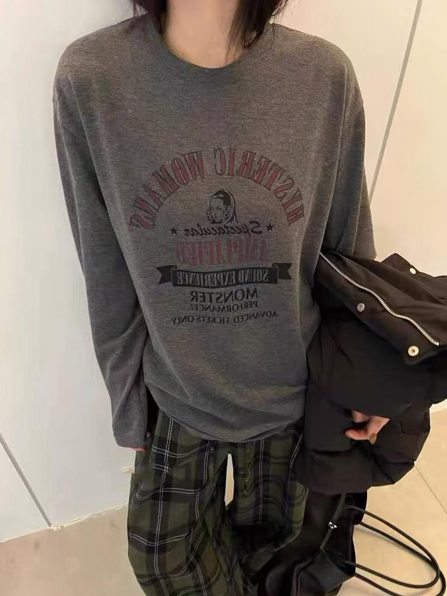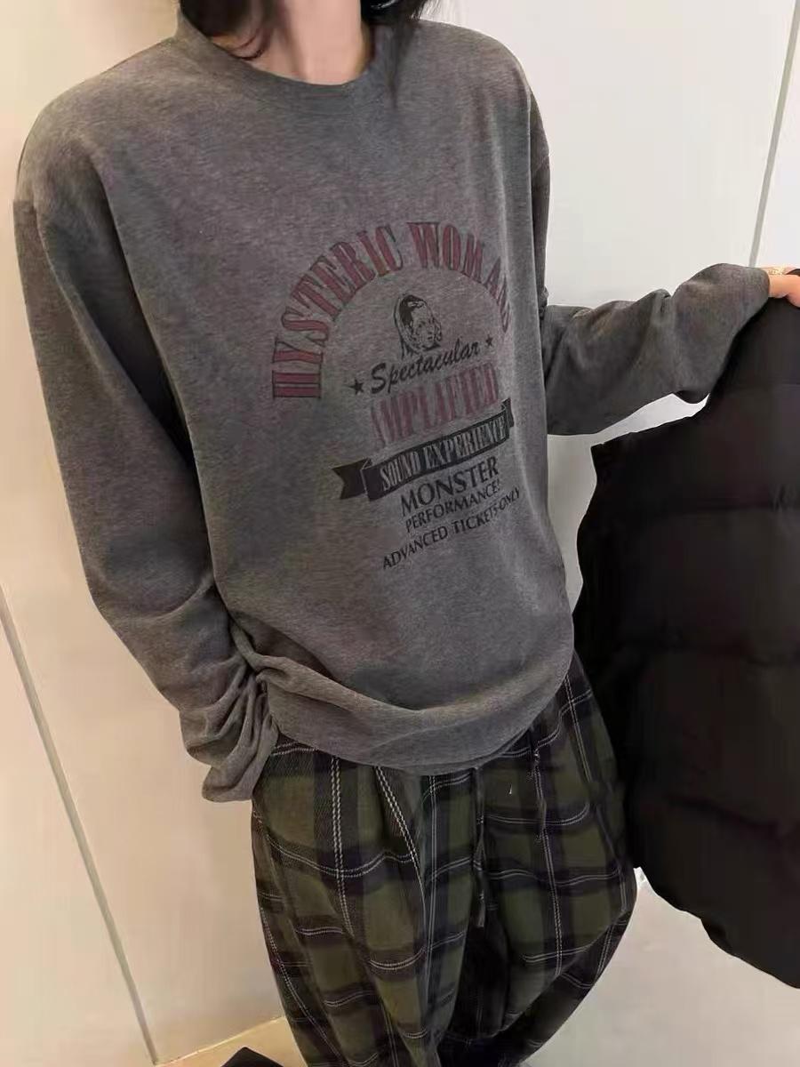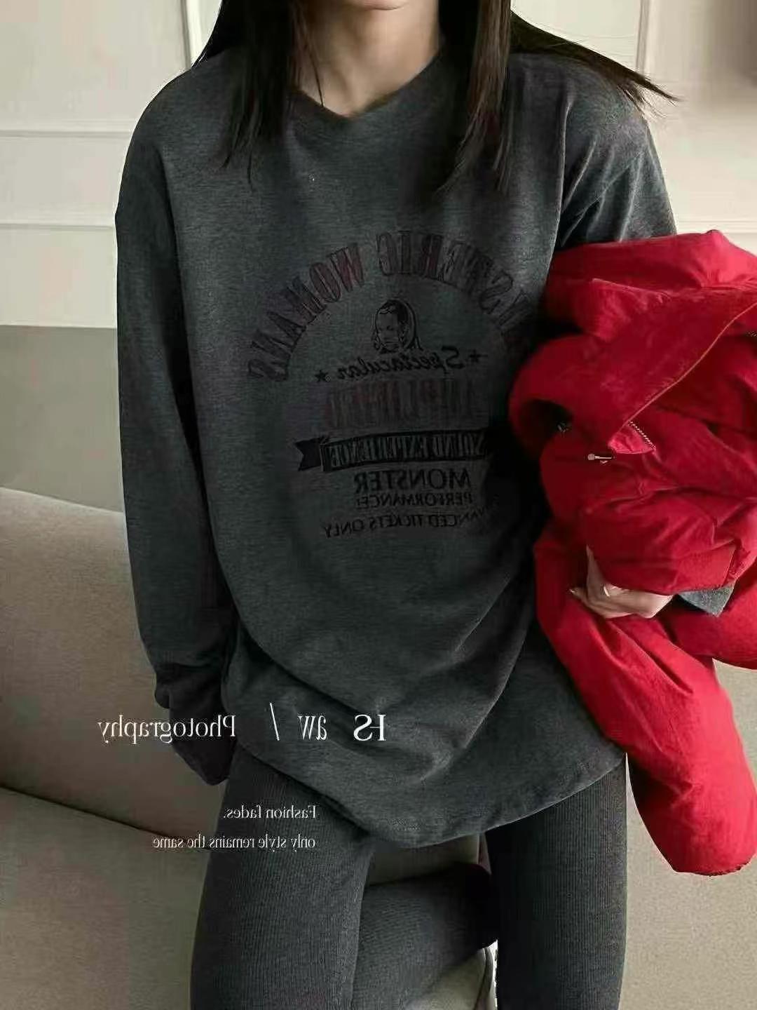 2025 Otoño/Invierno Estilo Europeo Casual para Mujer Cuello Redondo Versátil Grueso Camiseta Top, Felpa Suelta Casual