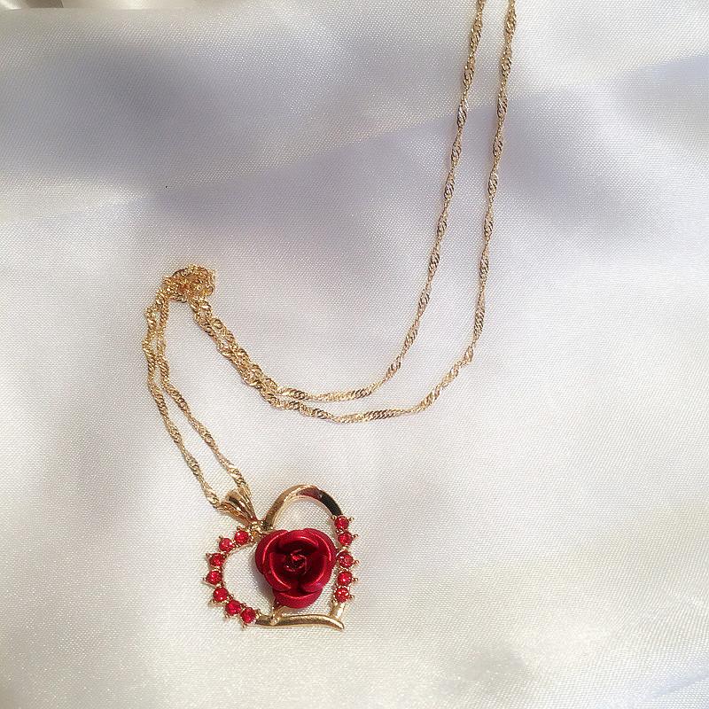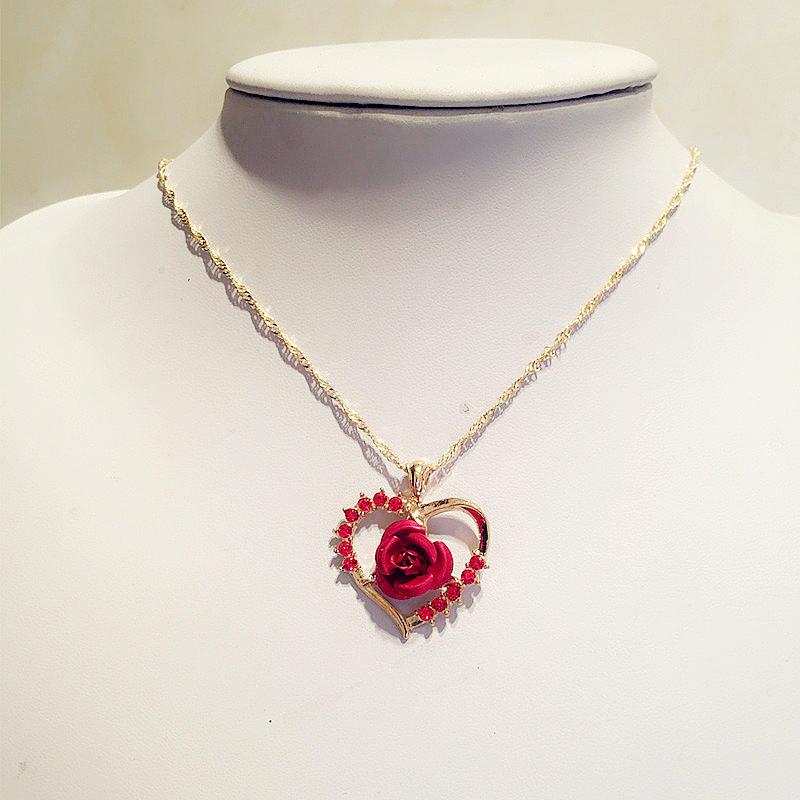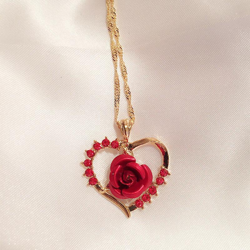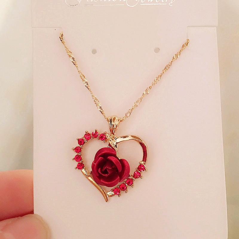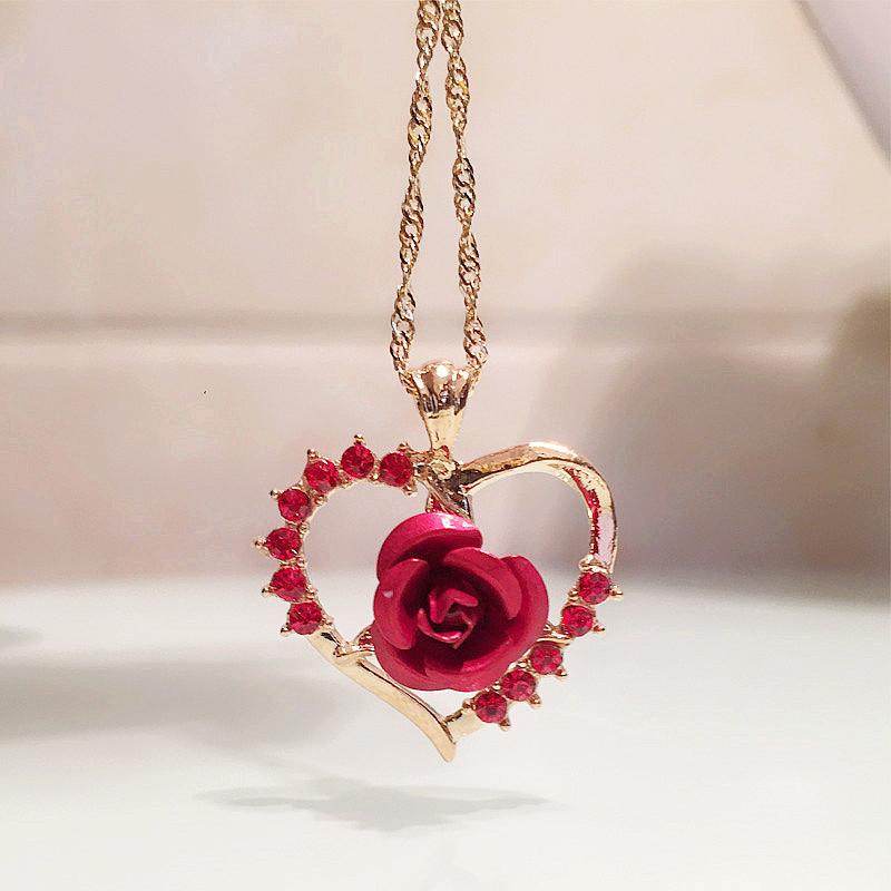 Collar con forma de rosa transfronterizo de Europa y Estados Unidos, collar de flor con forma de corazón, cadena de clavícula de viento frío ins, suministro de transmisión en vivo con mercancías