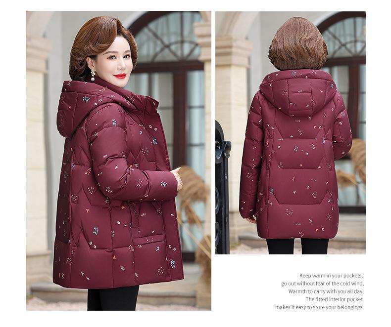 Chamarra de plumón para mamá Chaqueta de invierno 2023 Nueva Chaqueta de algodón engrosada de otoño e invierno para mujeres de mediana edad Ropa exterior de algodón de invierno para personas de mediana edad y mayores