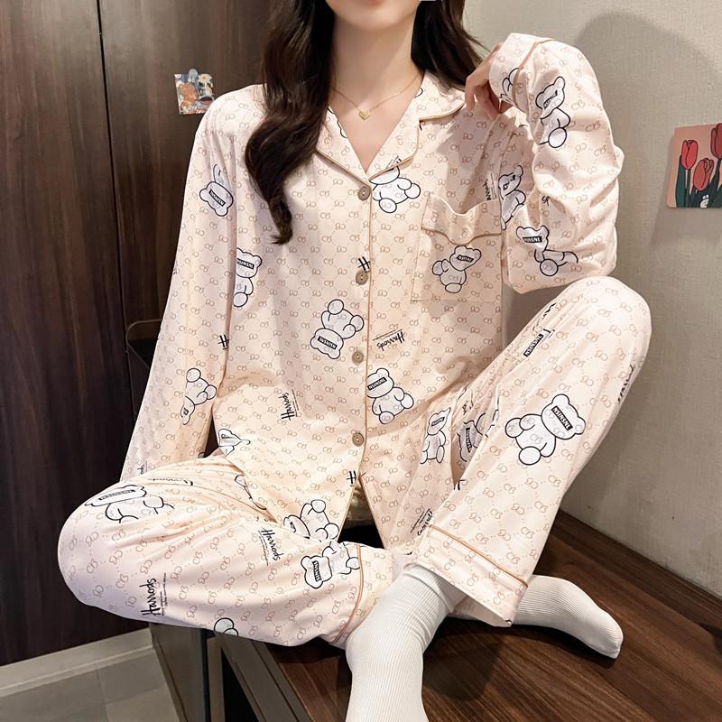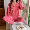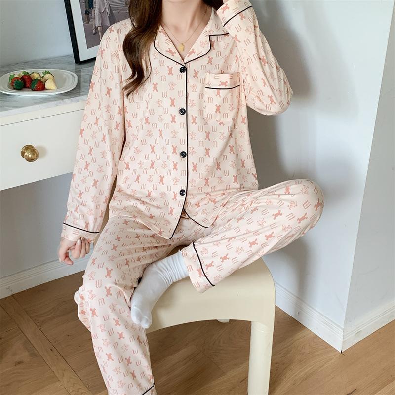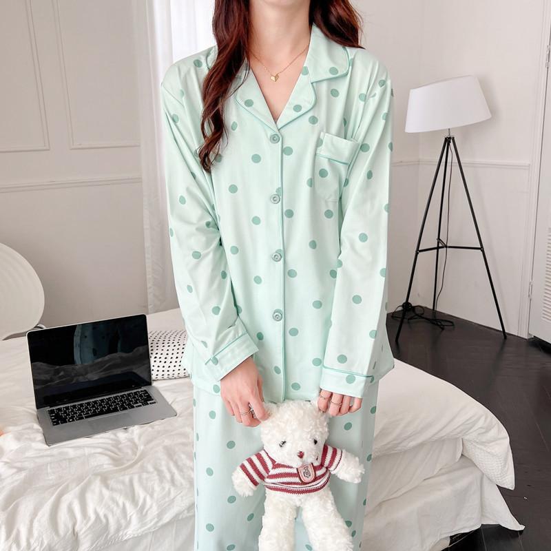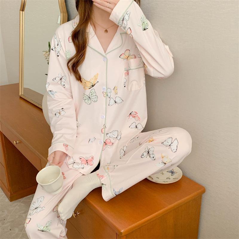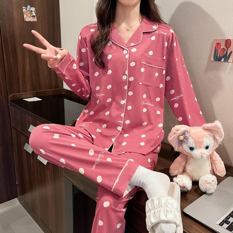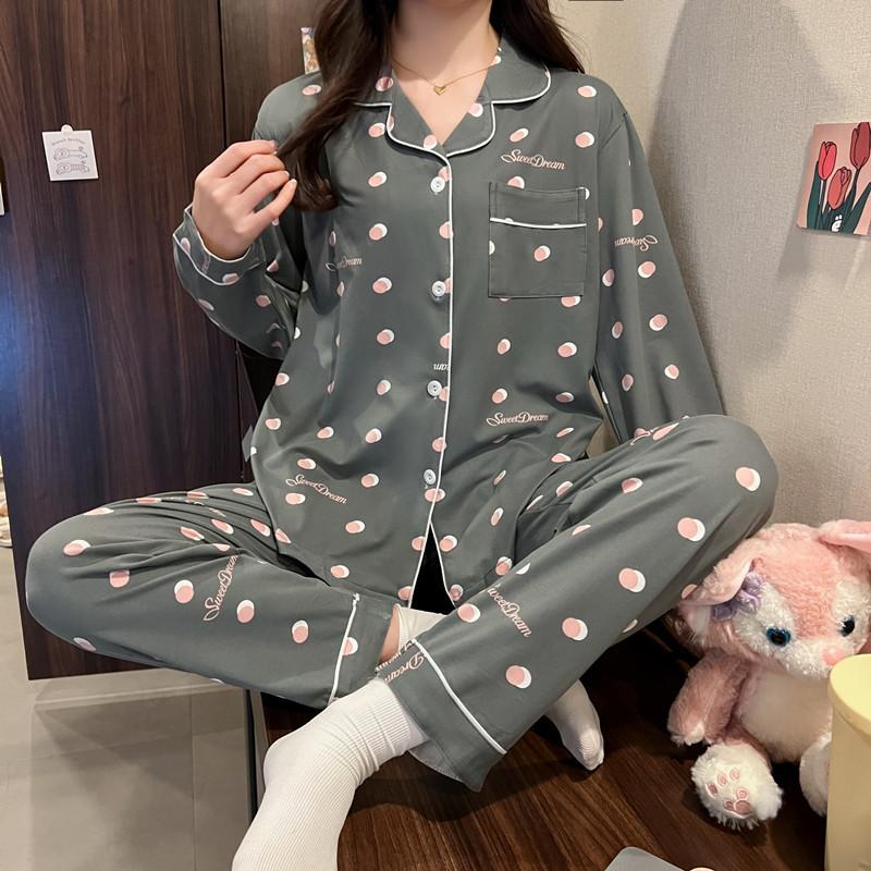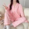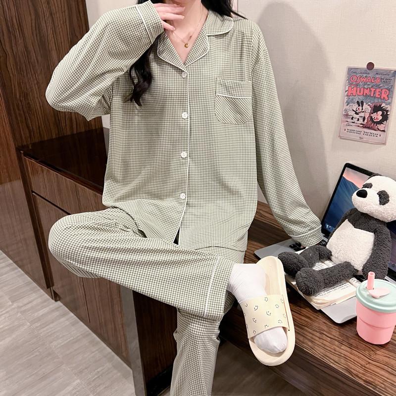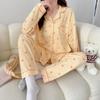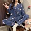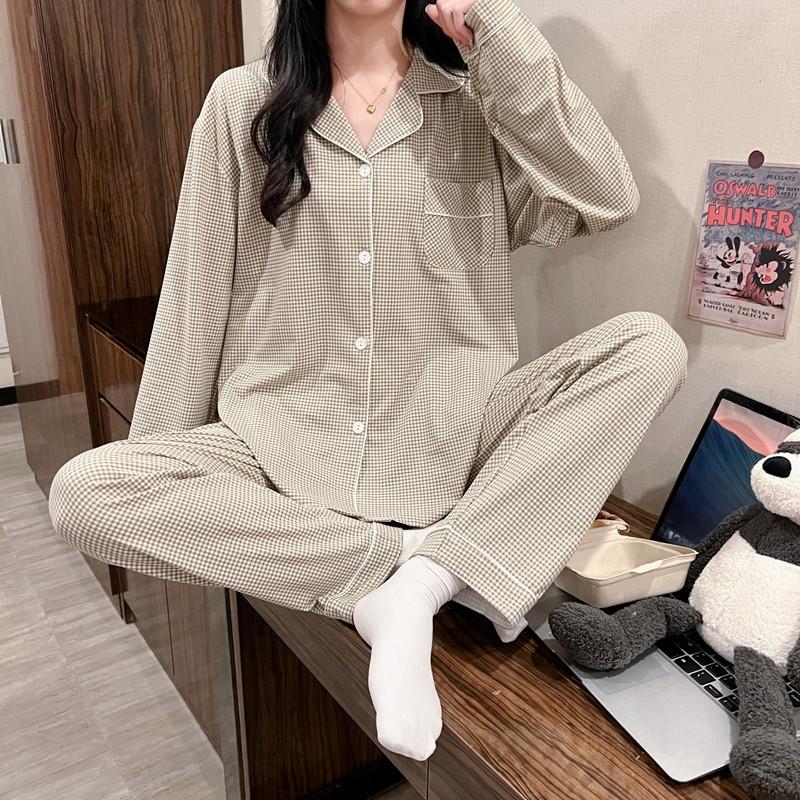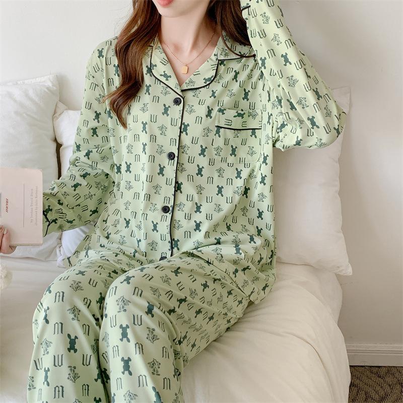 Pijama para Mujer Primavera y Otoño Imitación Algodón Cárdigan Manga Larga Largo 2025 Nuevo Traje de Ropa de Casa Casual Suelto para Damas