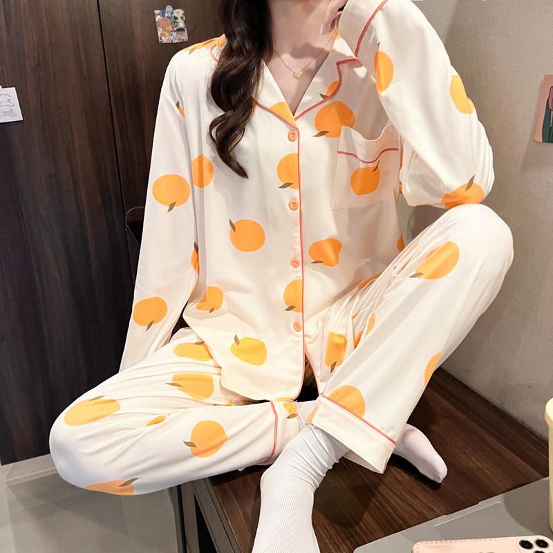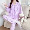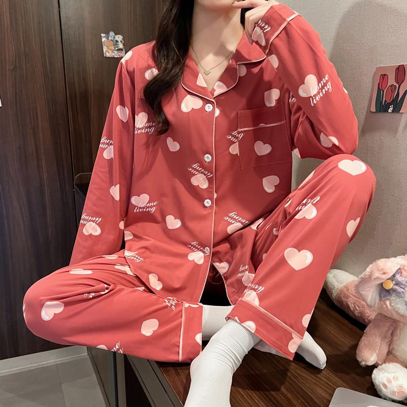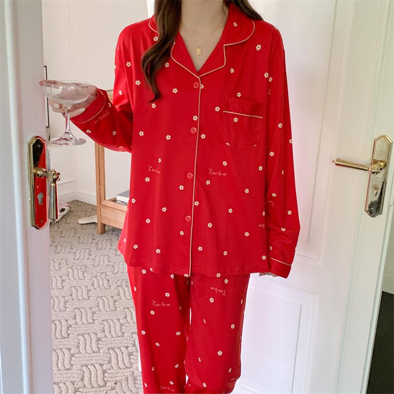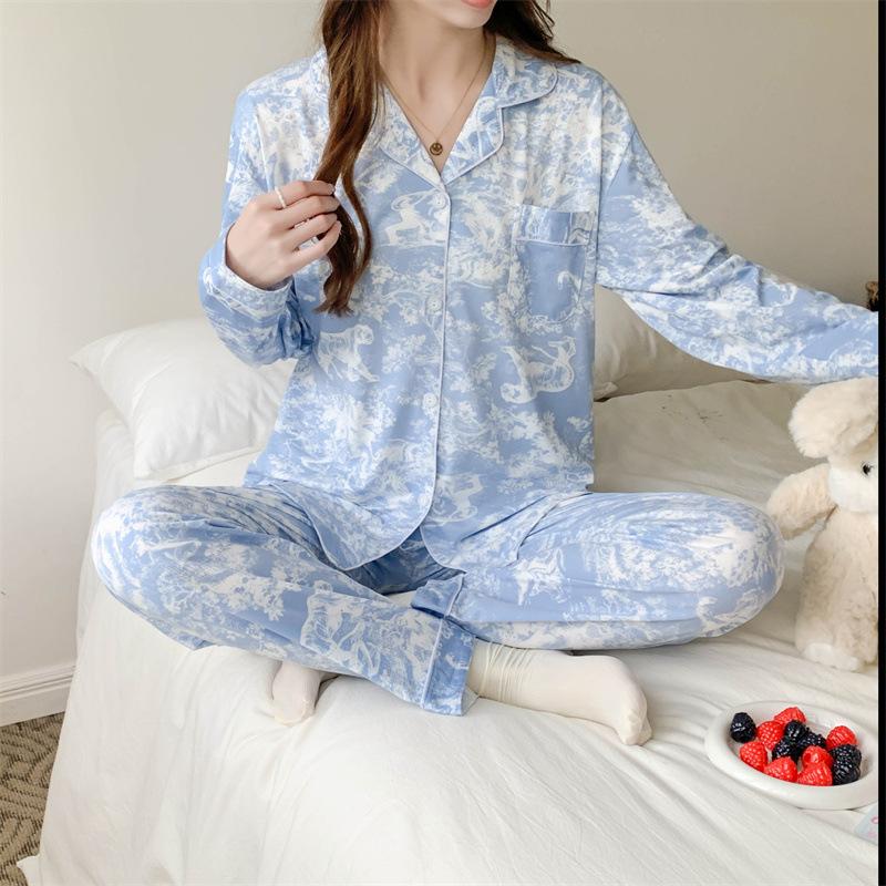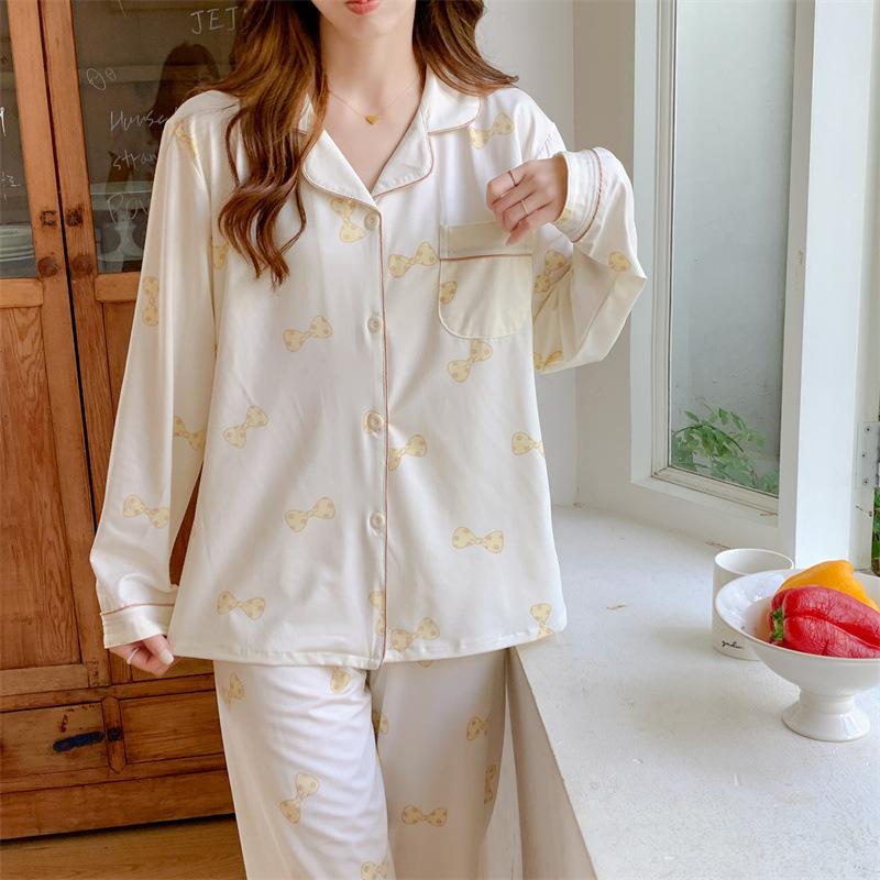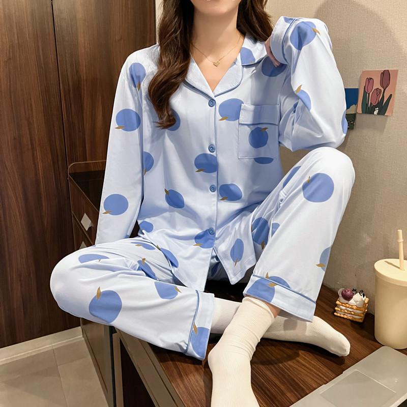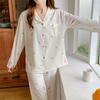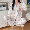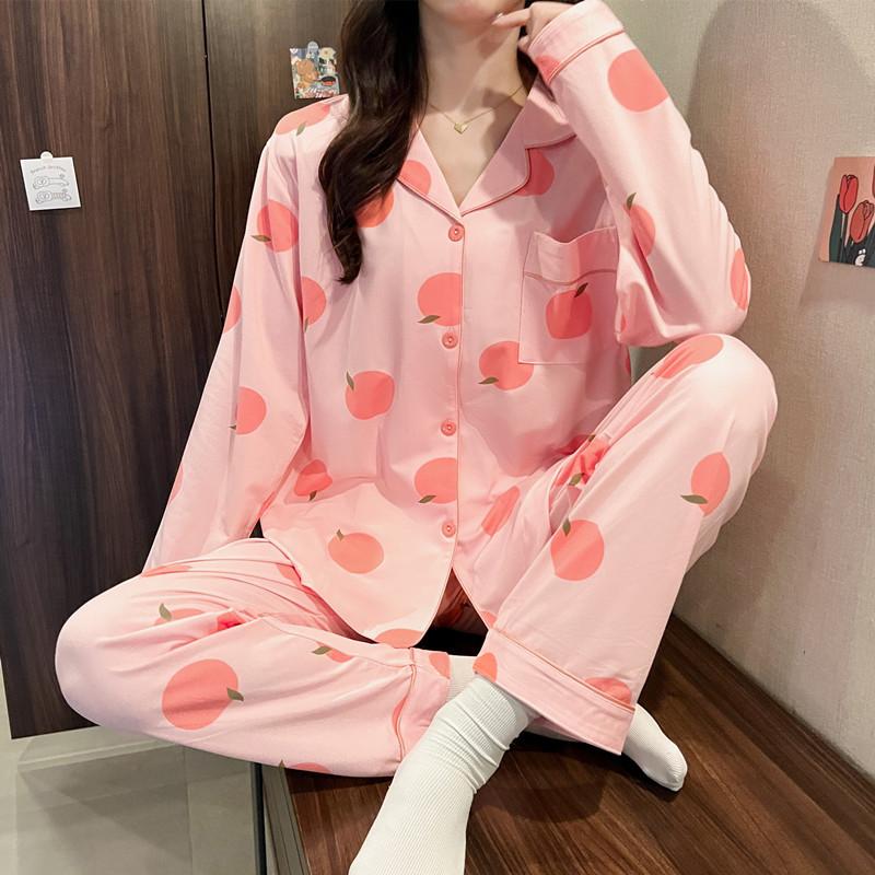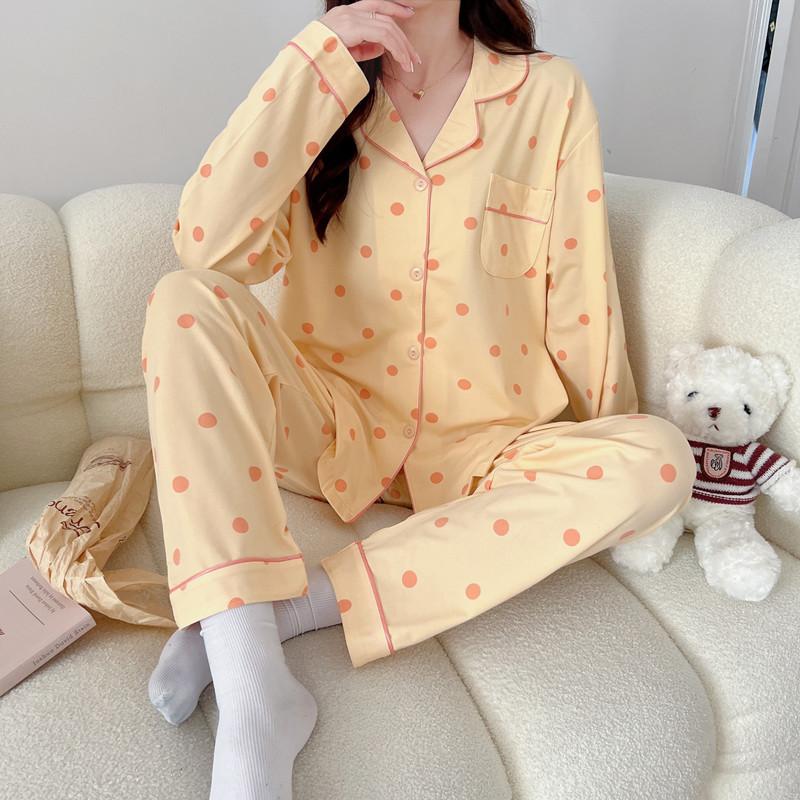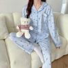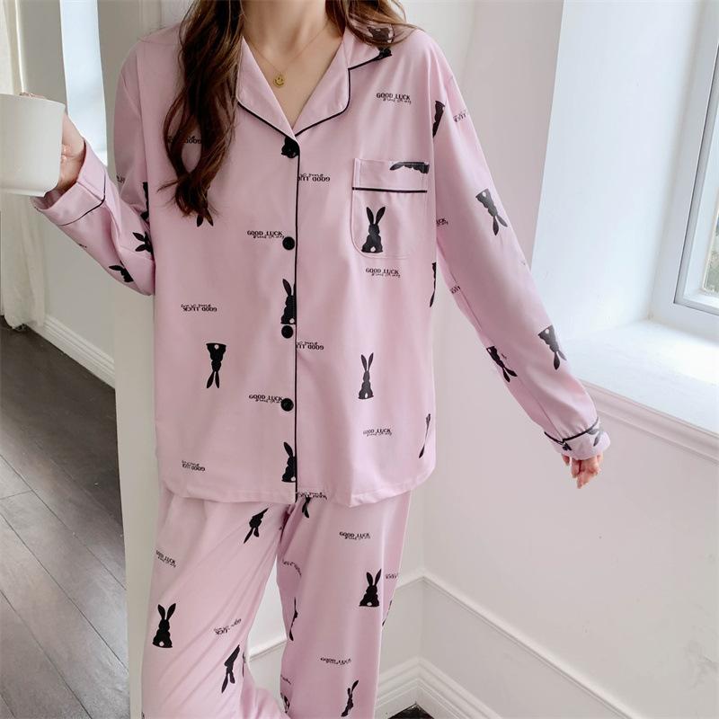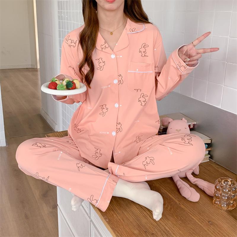 Pijama para Mujer Primavera y Otoño Imitación Algodón Cárdigan Manga Larga Largo 2025 Nuevo Traje de Ropa de Casa Casual Suelto para Damas