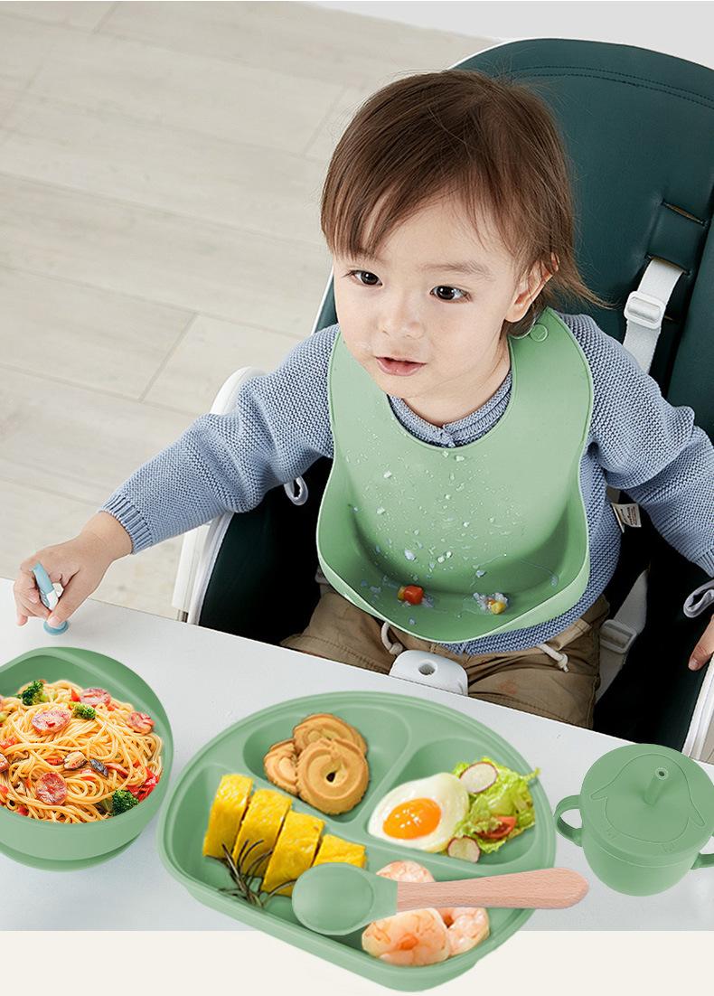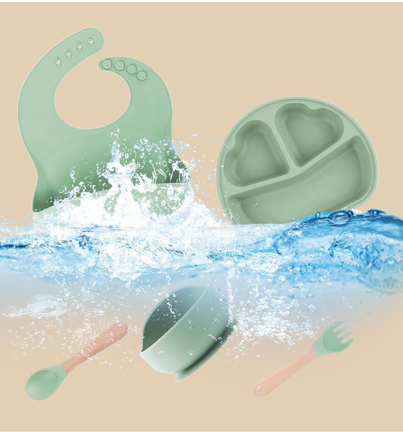 Juego de vajilla infantil de gran venta transfronteriza, cuenco suplementario para bebé, plato de cena de amor, juego de cinco piezas, plato de cena de silicona de grado alimenticio