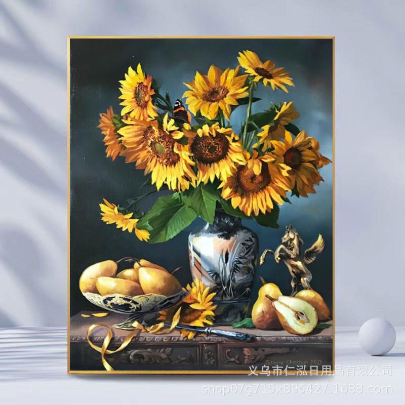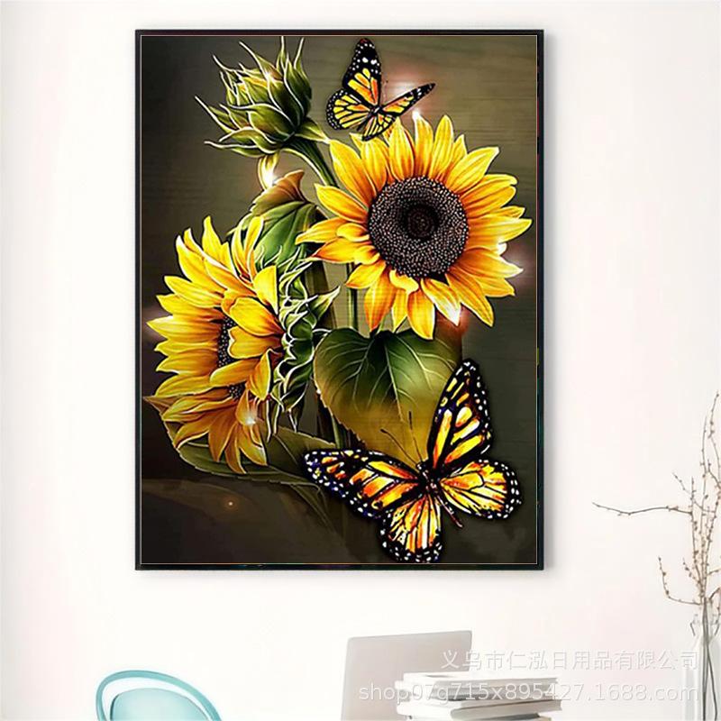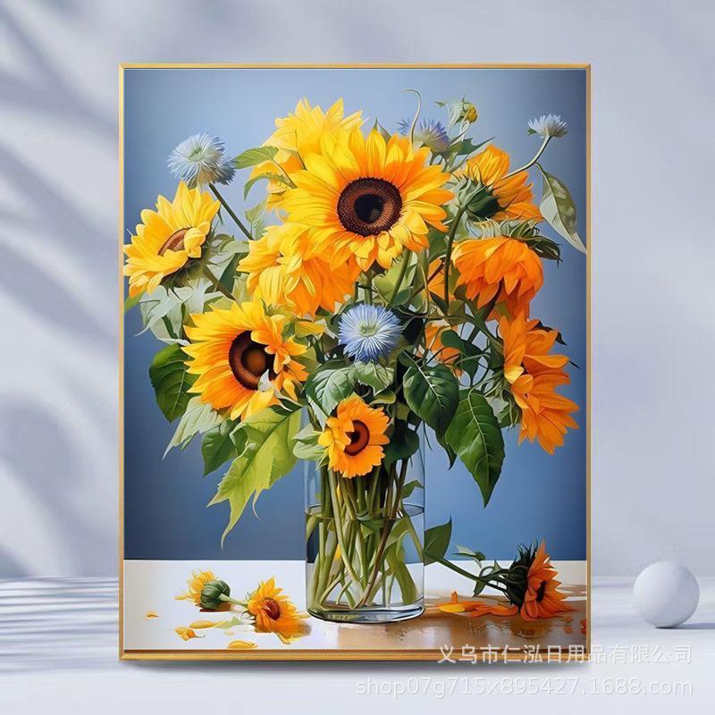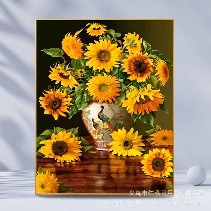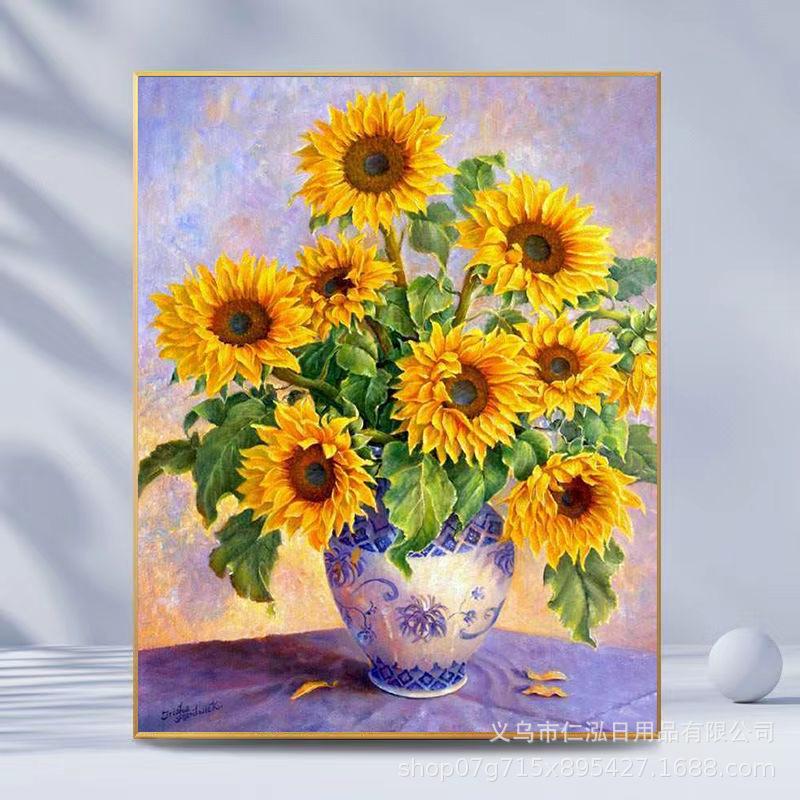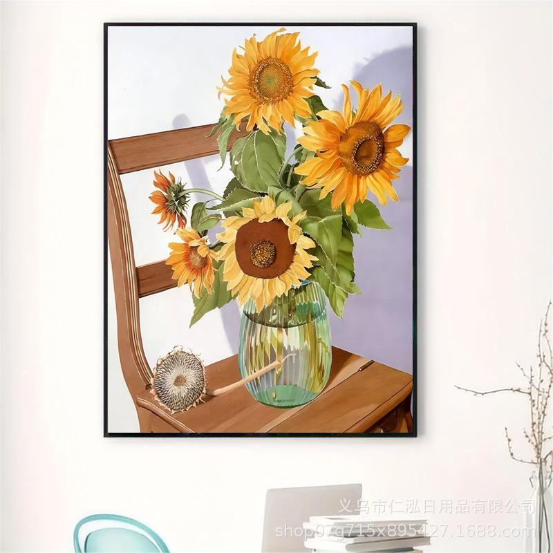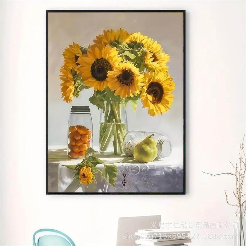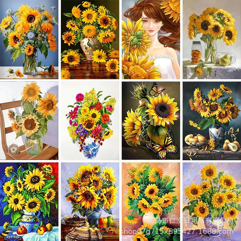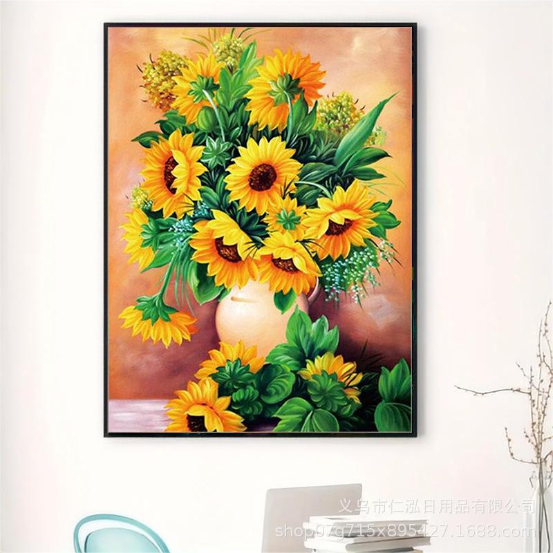 Nueva pintura de diamante 5DDIY de Amazon, diamante redondo, diamante completo, girasol, punto de cruz, pintura decorativa, fabricantes transfronterizos al por mayor