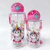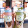 Vaso de paja de verano para niños, bonito vaso de dibujos animados con correa, botella de agua potable portátil resistente a caídas para niños de primaria y jardín de infantes.