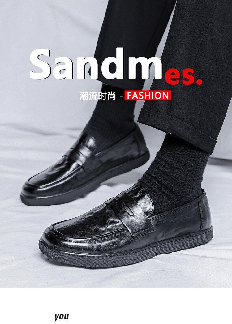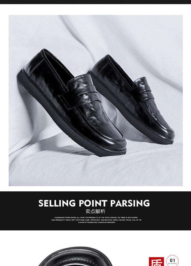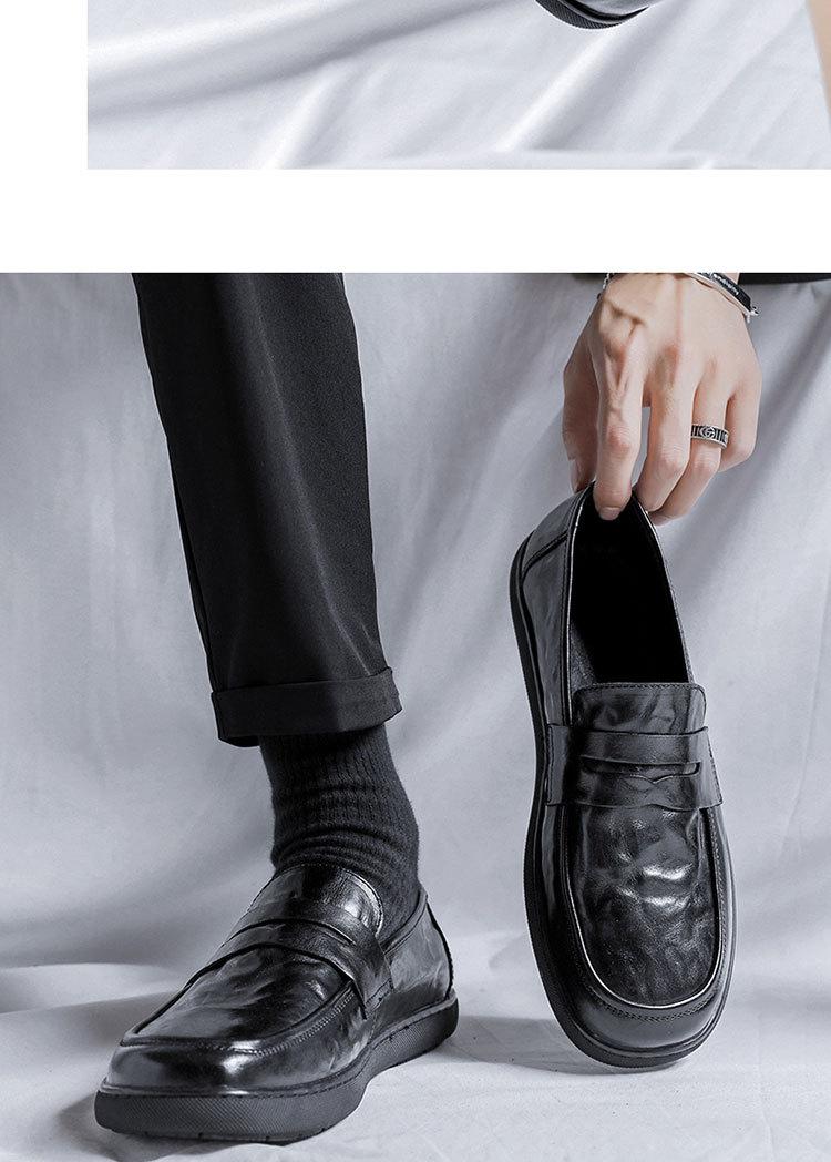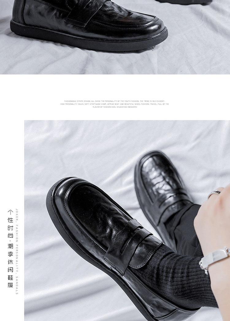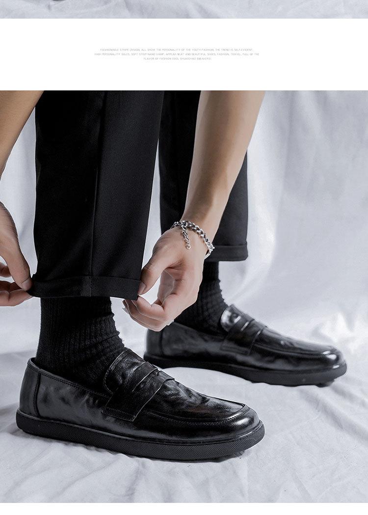 Zapatos de hombre de primavera y otoño, transpirables, sin cordones, negros, con cabeza grande, de moda, de cuero de trabajo para hombre